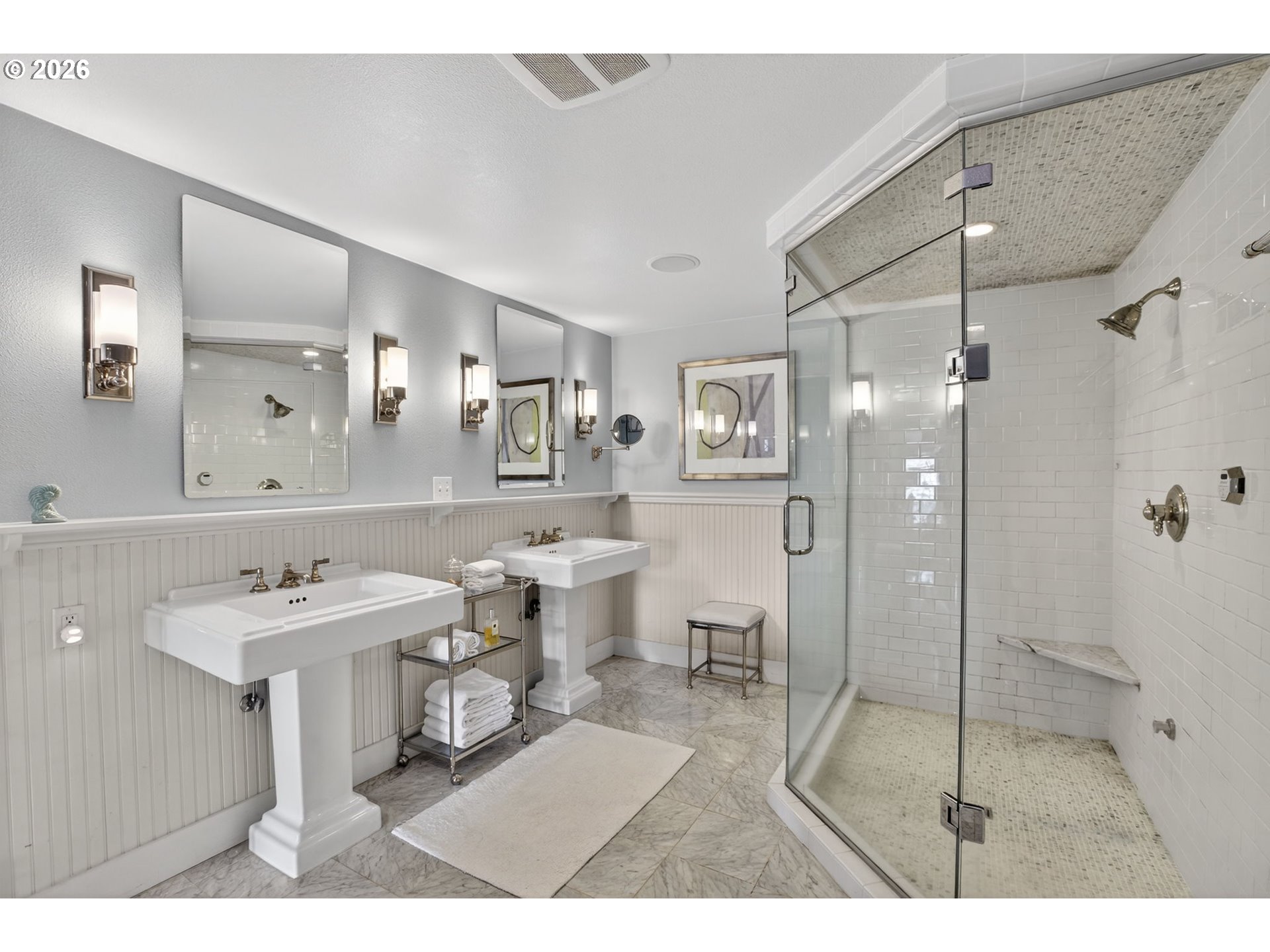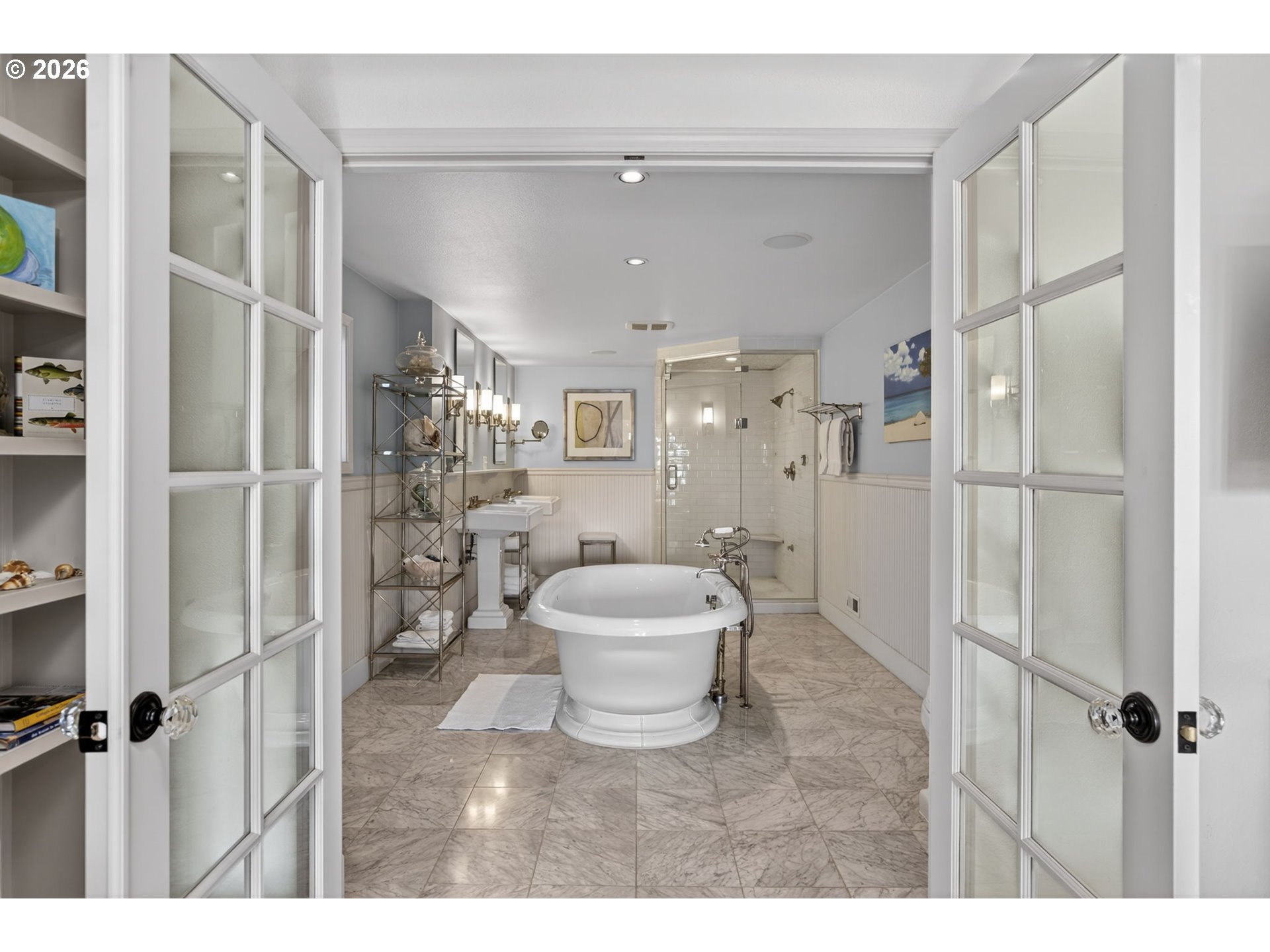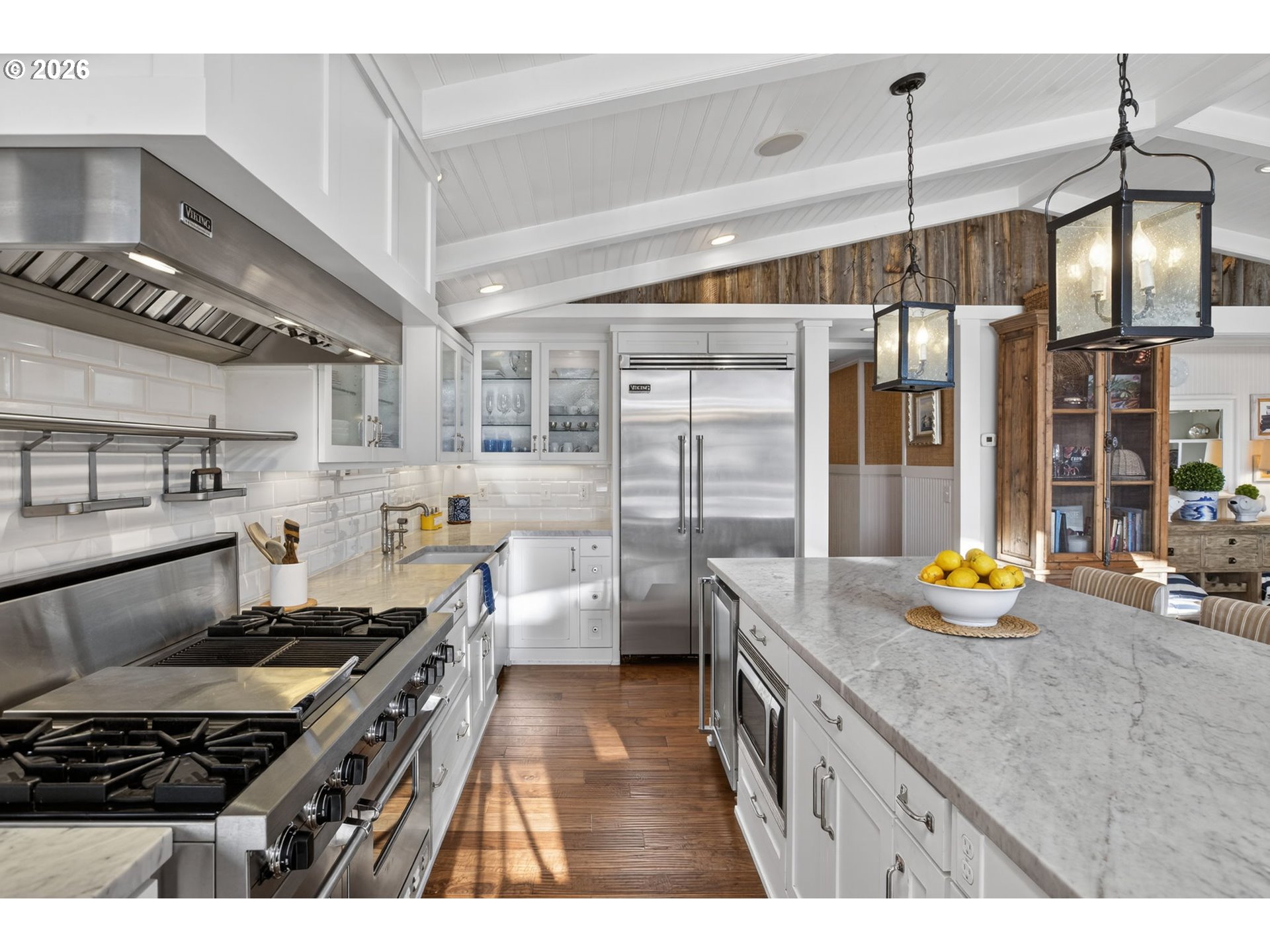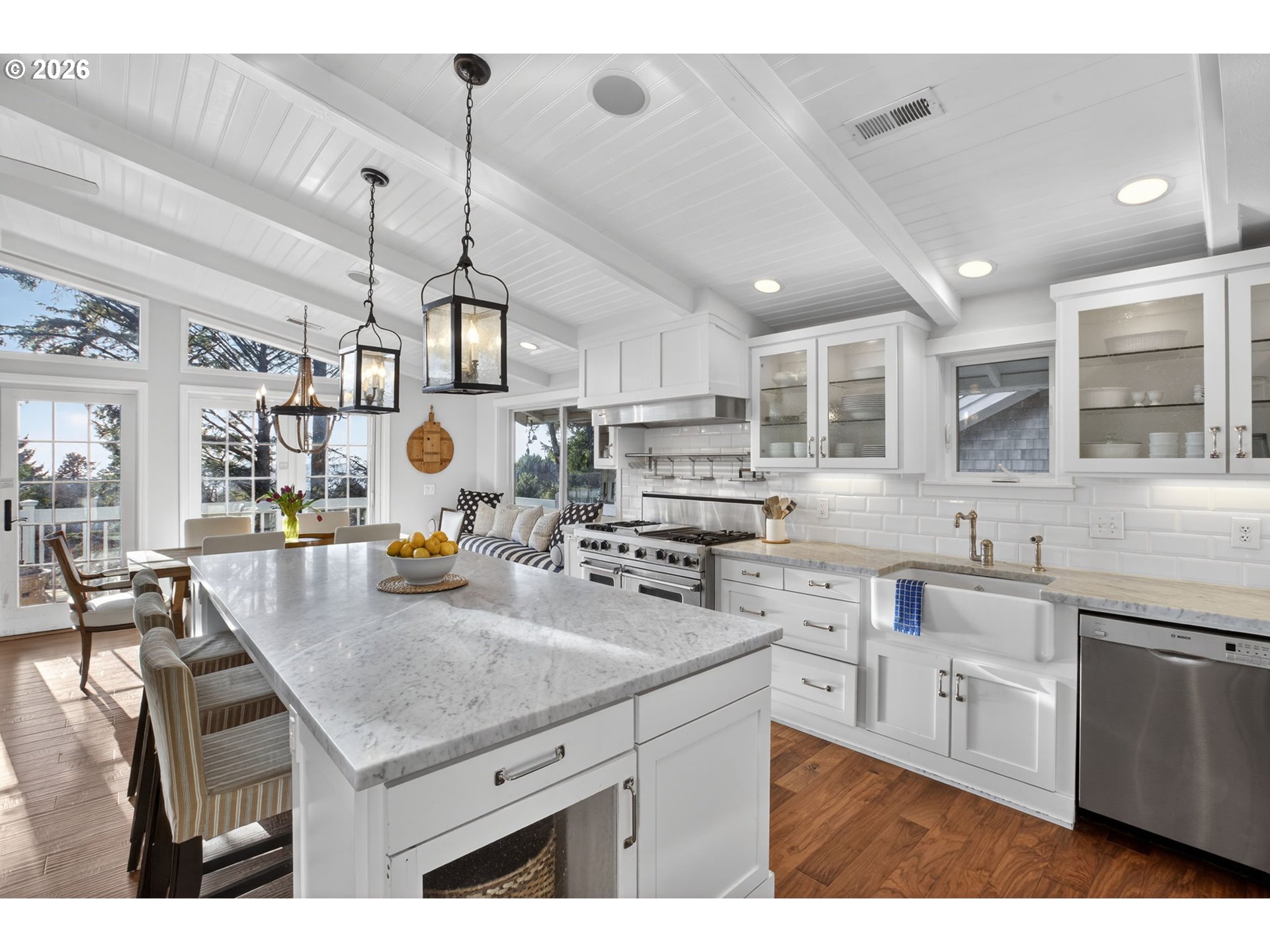 Fully furnished & thoughtfully curated, coastal retreat, blending East Coast elegance with Oregon Coast serenity in Tolovana Beach. Inspired by 'Something's Gotta Give', this 3 level home features vaulted ceilings & expansive west facing windows with distant ocean views. The great room offers a dramatic stone fireplace, custom built-ins, and triple French doors opening to a spacious deck. Gourmet kitchen with industrial gas range, griddle, grill, double ovens, wine cooler, Carrara marble, & custom cabinetry. Luxurious primary suite with fireplace, sitting area, private deck, steam shower, & soaking tub. Three additional bedrooms are thoughtfully designed with custom finishes. Multiple living spaces provide flexibility, including a lower-level game room. Located on a dead-end street, surrounded by forest, the home is approximately half a mile from beach access, minutes to downtown Cannon Beach & Ecola State Park, this property combines privacy, proximity, and lifestyle appeal. Contact your broker to schedule a private showing or to receive the full feature sheet.