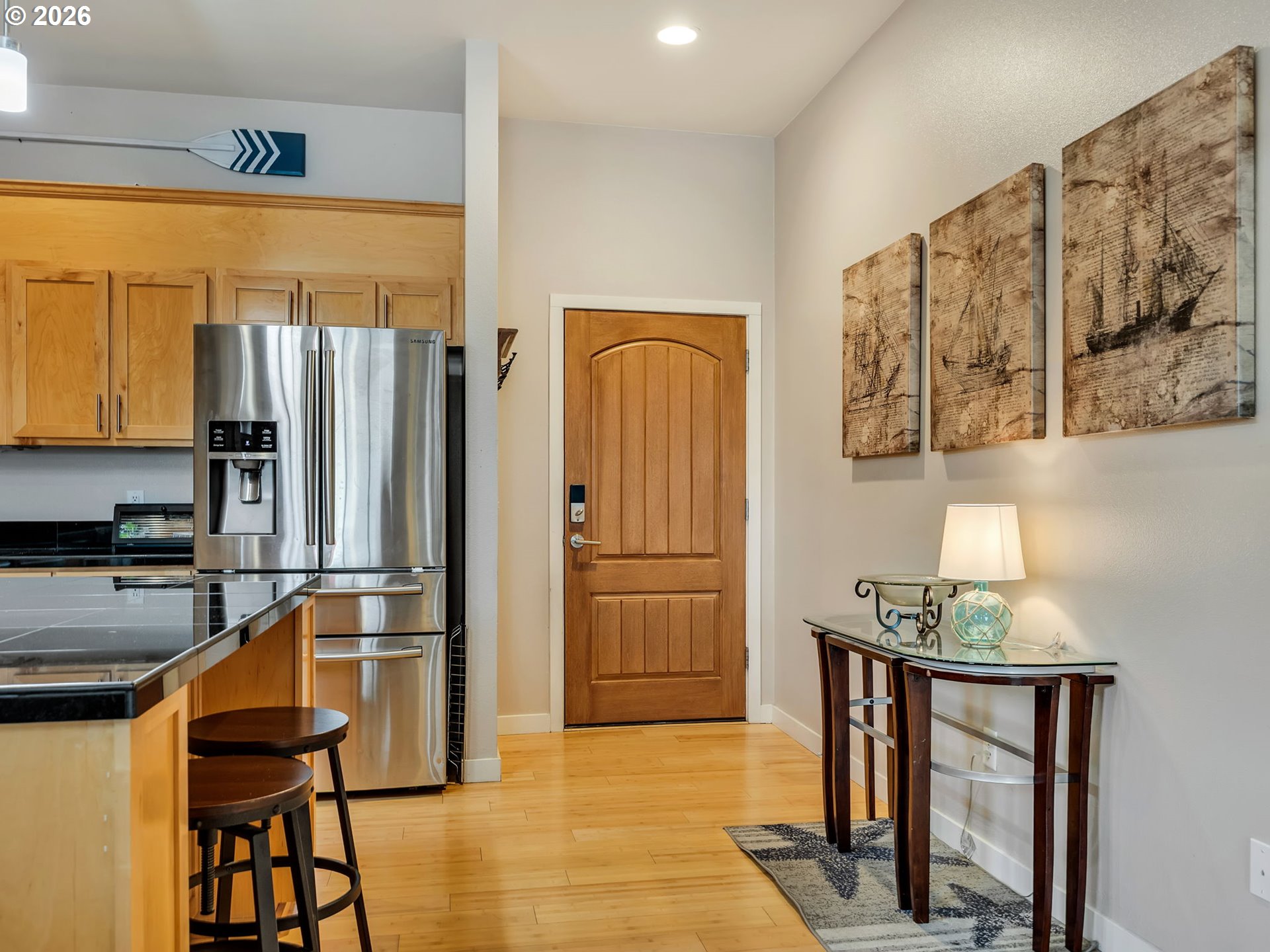 Discover effortless coastal living at The Cannery Loft Condominium's. Flooded with natural light from clerestory windows with southern exposure, this second-floor unit features a chef-inspired kitchen with granite countertops and stainless steel appliances, a custom gas fireplace for cozy evenings, and a brand-new stackable washer and dryer. It comes partially furnished with thoughtful finishes and high ceilings, plus elevator access and off-street parking. Enjoy the view of the Columbia River from your Balcony. Sitting just moments from vibrant downtown Astoria, the Columbia River waterfront, breweries, and outdoor adventures, this low-maintenance gem is perfect as a primary residence, weekend retreat, or income-producing rental.