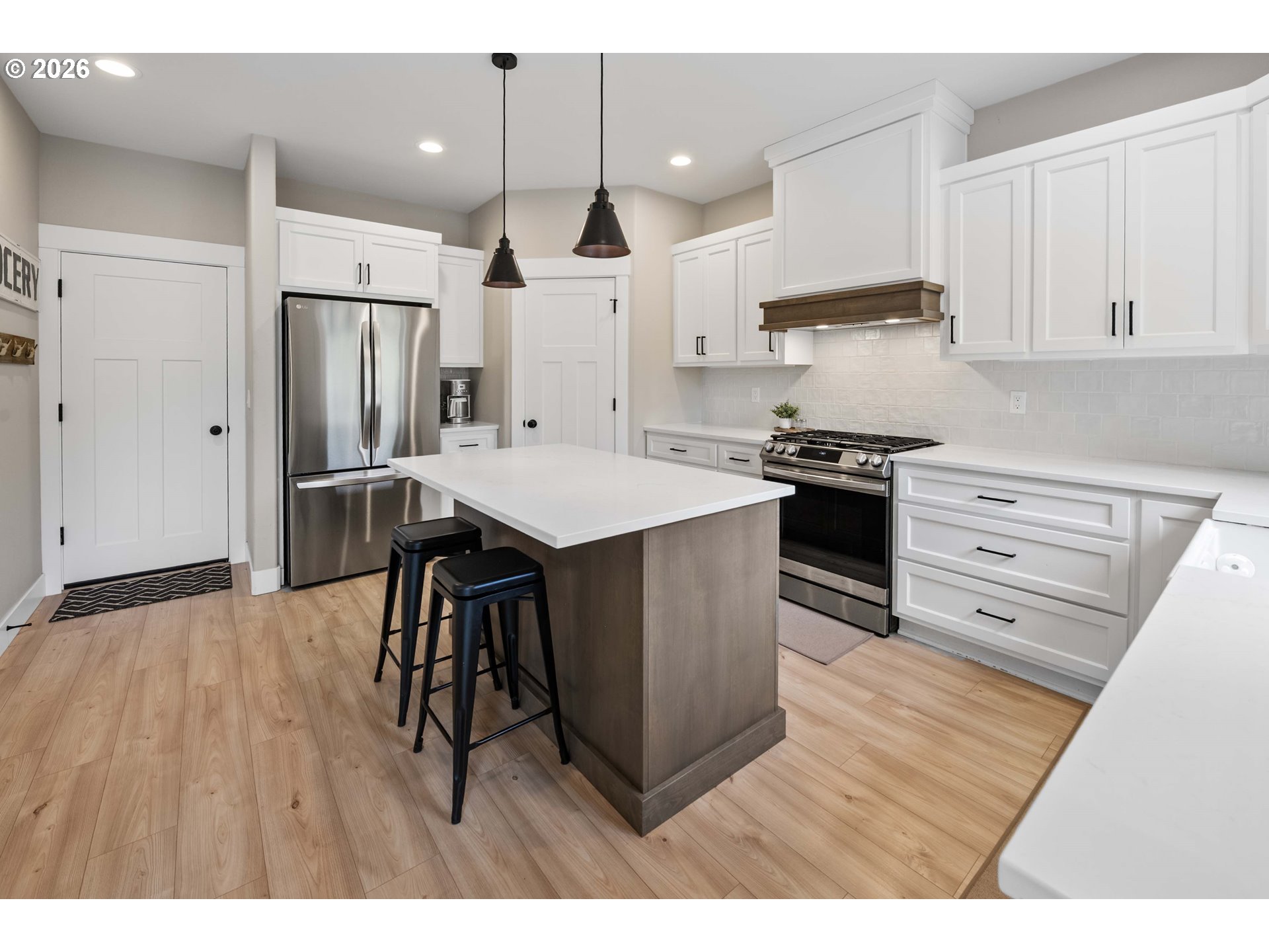 Dishwasher, FreeStandingRange, FreeStandingRefrigerator, Island, Pantry, Quartz, RangeHood, StainlessSteelA