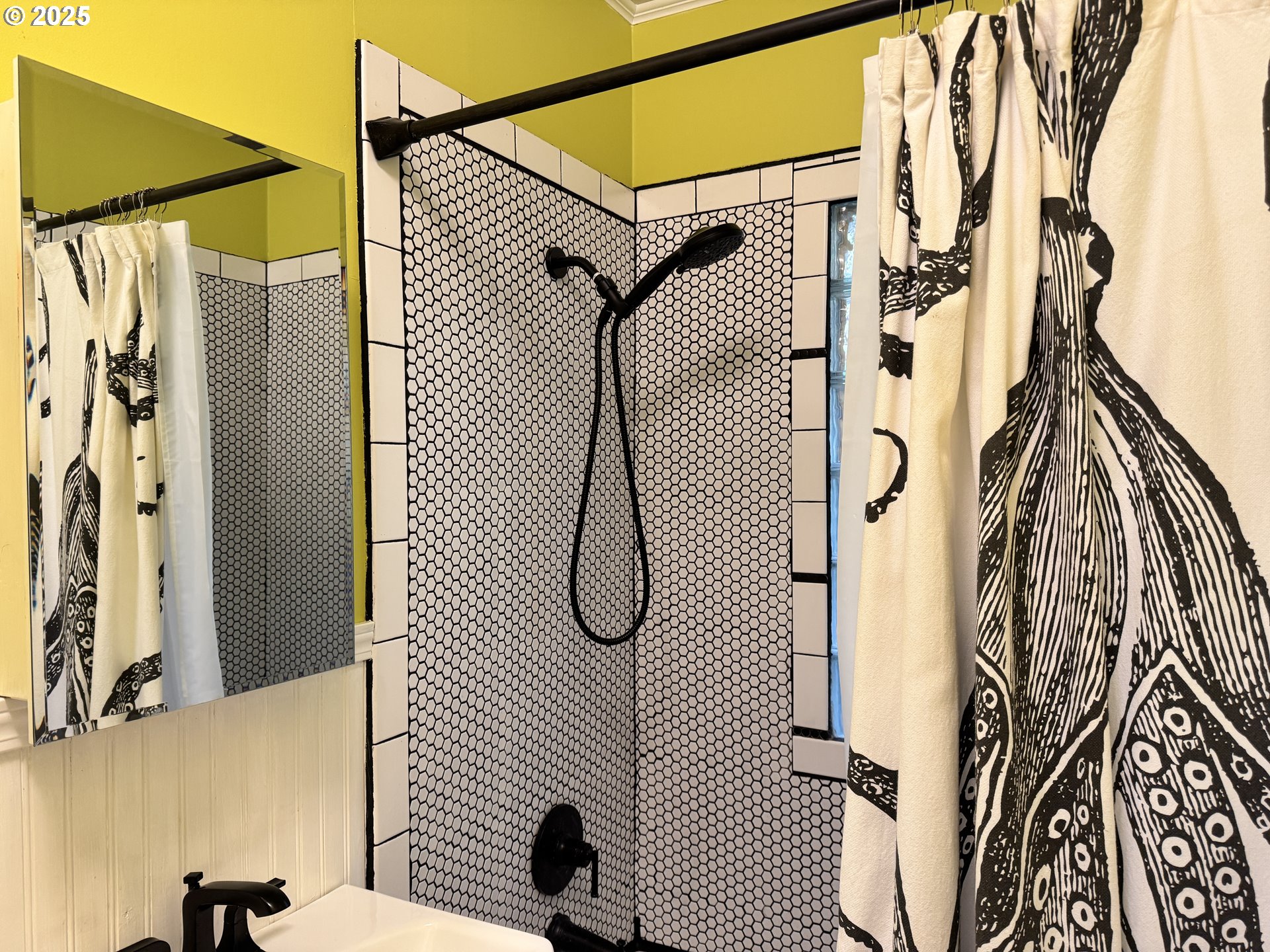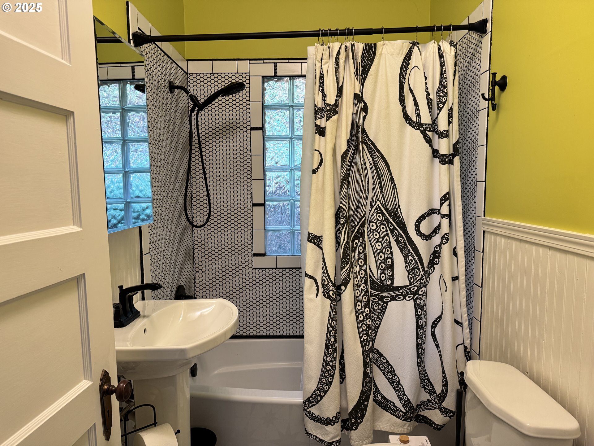 Take in sweeping views of the Columbia River and iconic Megler Bridge from this cheerful 2 bed, 1 bath home in Astoria. Tucked into the hillside and bursting with personality, this home features high ceilings, original ship lap walls, and a vintage-modern blend that’s both welcoming and unique.The light-filled kitchen includes butcher block counters, open shelving, a gas range, and stainless steel appliances. From here, you’ll find access to the basement, perfect for additional storage or workspace.Relax in the cozy living room with wood-accented walls and updated floors, or soak in the hot tub on the enclosed deck, surrounded by mature greenery. Two off-street parking spaces add rare convenience, and the location can’t be beat—just two blocks from the Astoria Riverwalk.Whether you’re looking for a creative retreat, a weekend escape, or a full-time home with character and comfort, this vibrant coastal gem is ready to welcome you.