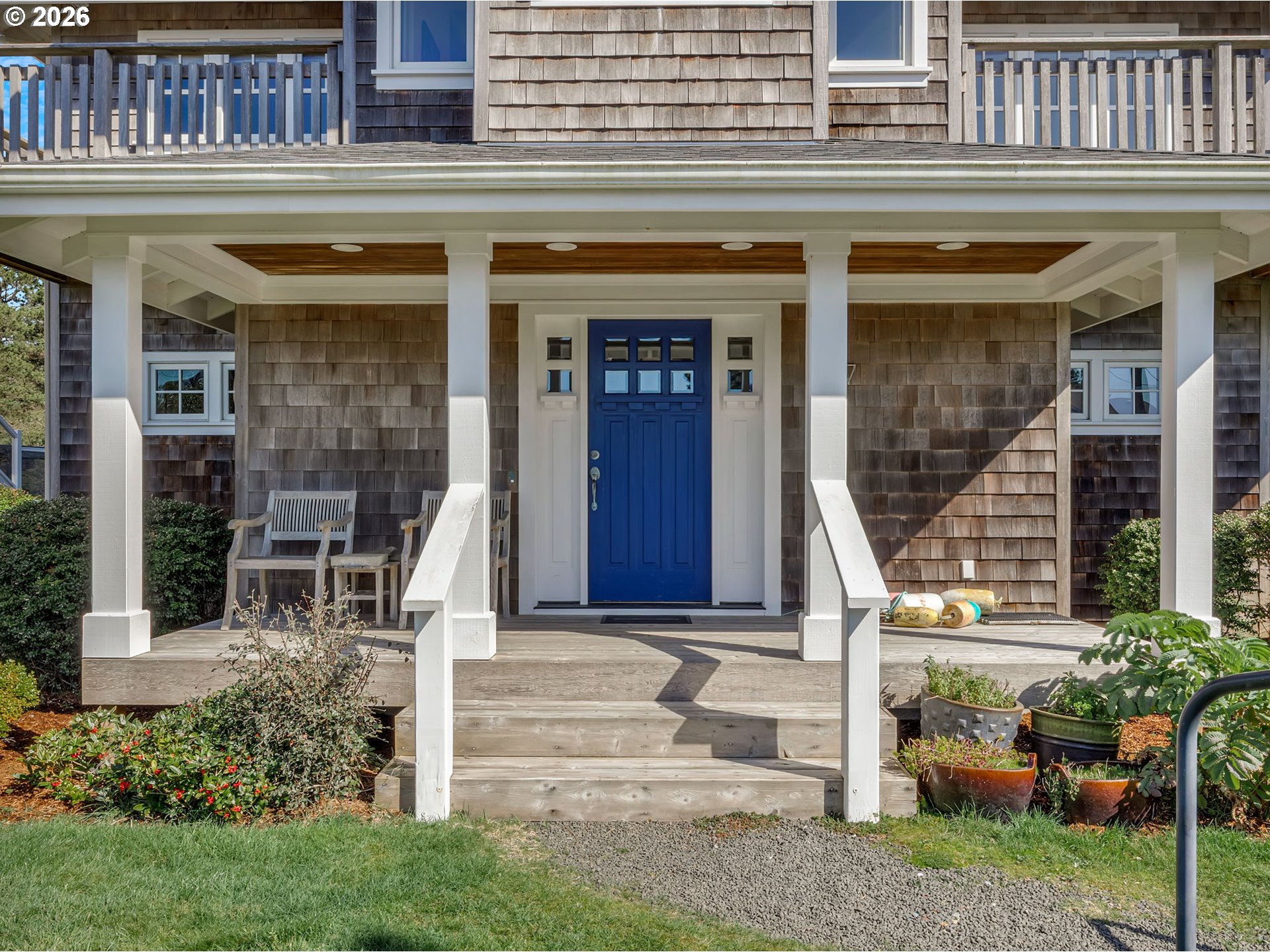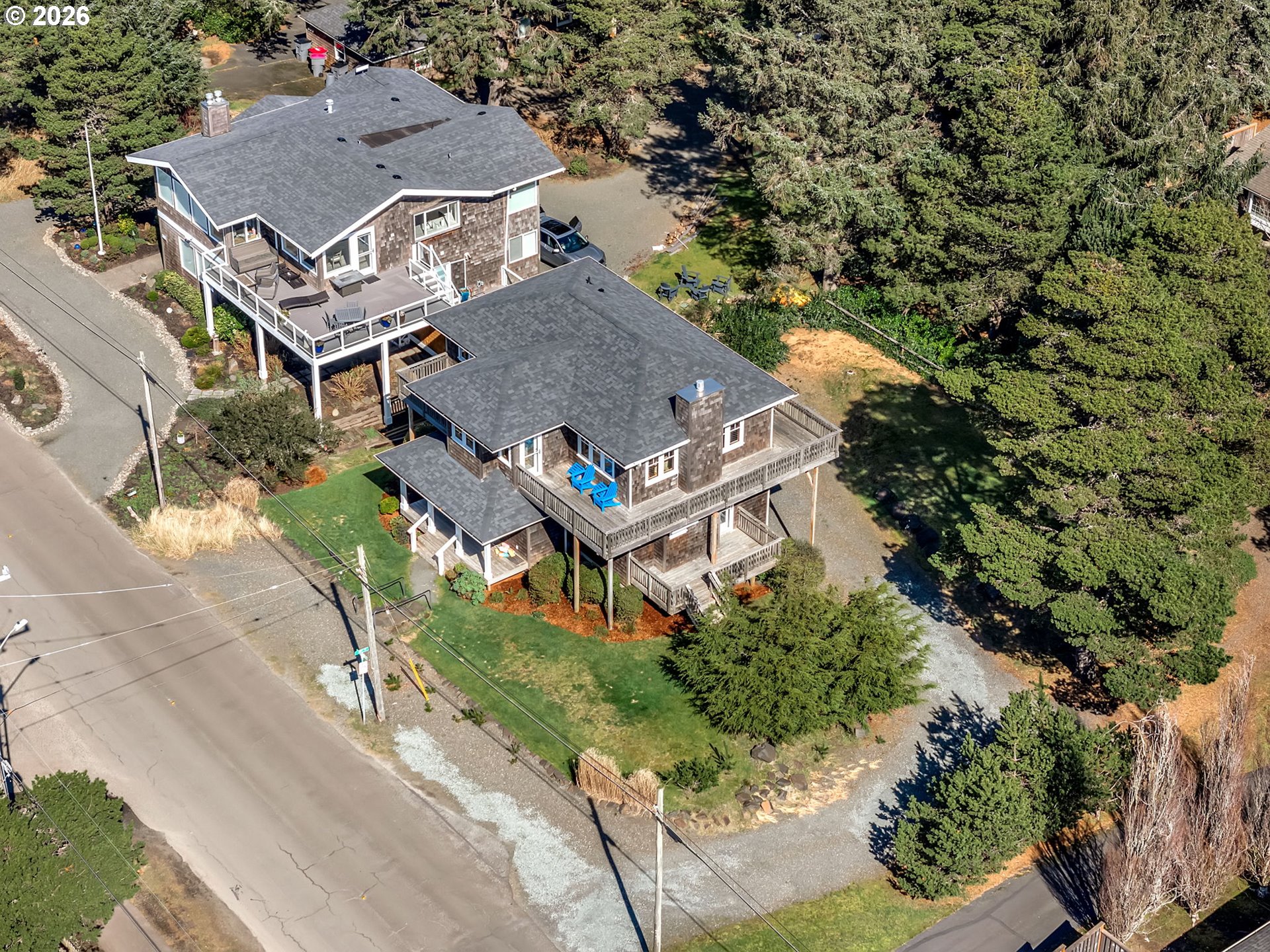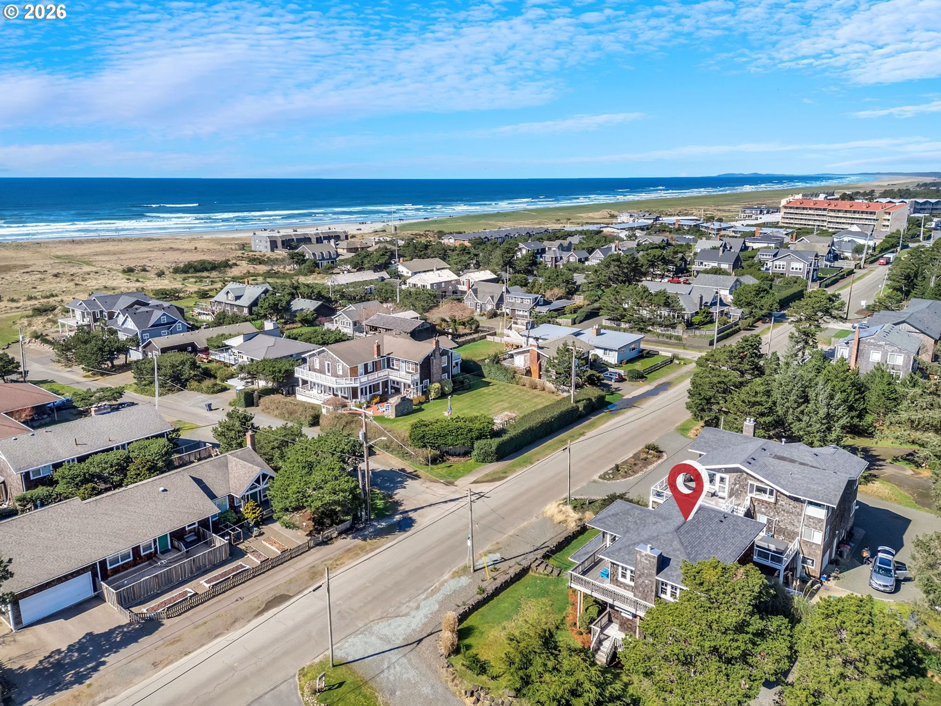 Custom Cape Cod style home built by Paul Carauna exudes charm and warmth throughout. Features rich wood floors, wood trimmed windows, 2 gas fireplaces, and a delightful kitchen with a large butcher-block island - perfect for gathering and conversation. Enjoy ocean and mountain views from the upper main living area. Also featured here is a wrap-around deck with west, south and east exposures for both sun & shade. Enjoy watching the popular Fourth of July Parade from your deck as well. The cozy primary suite includes it's own gas fireplace, reading & library nook and deck access. Downstairs, in the day-light basement is a 400 sq ft, partly-finished, bonus space which would make a great media room, studio, etc. Conveniently located, home is within walking distance to downtown Gearhart, the golf course and local eateries. And 1 block to a beach trail. Updates include a new roof in 2024 & new gas water heater.