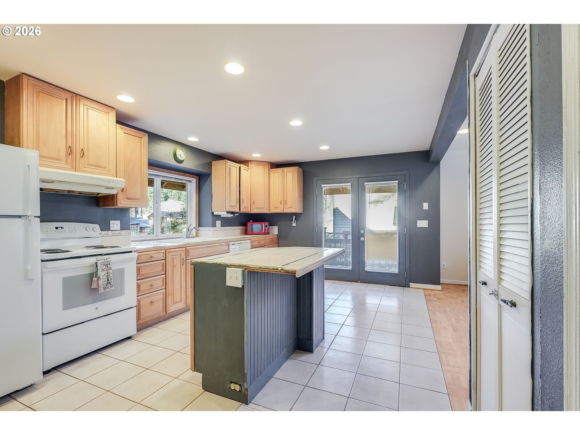 Dishwasher, Disposal, FreeStandingRange, FreeStandingRefrigerator, Island, RangeHood, Tile