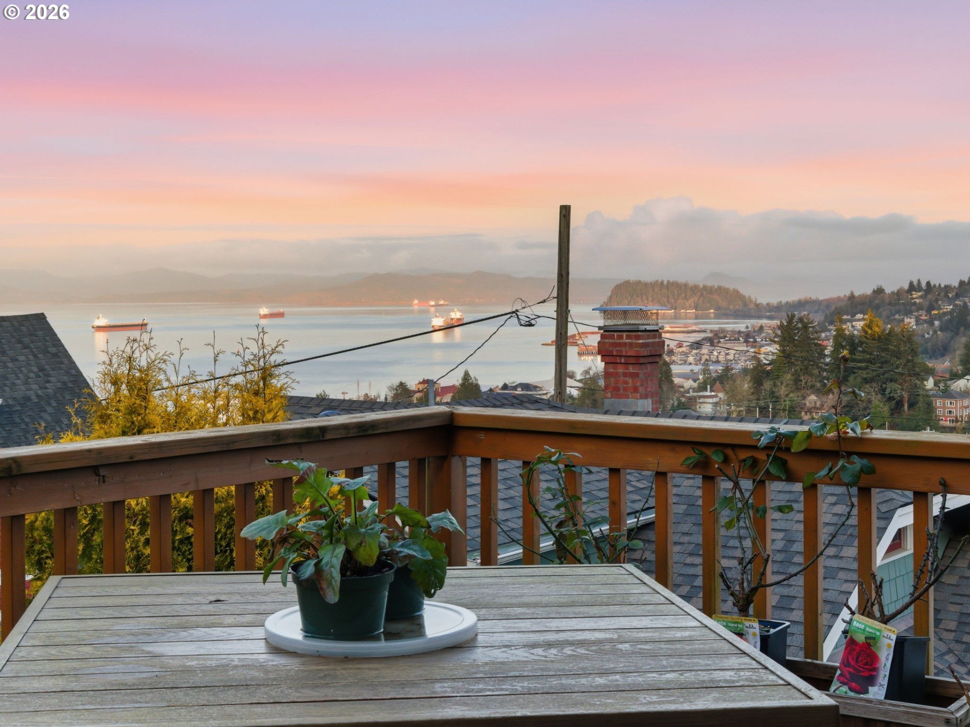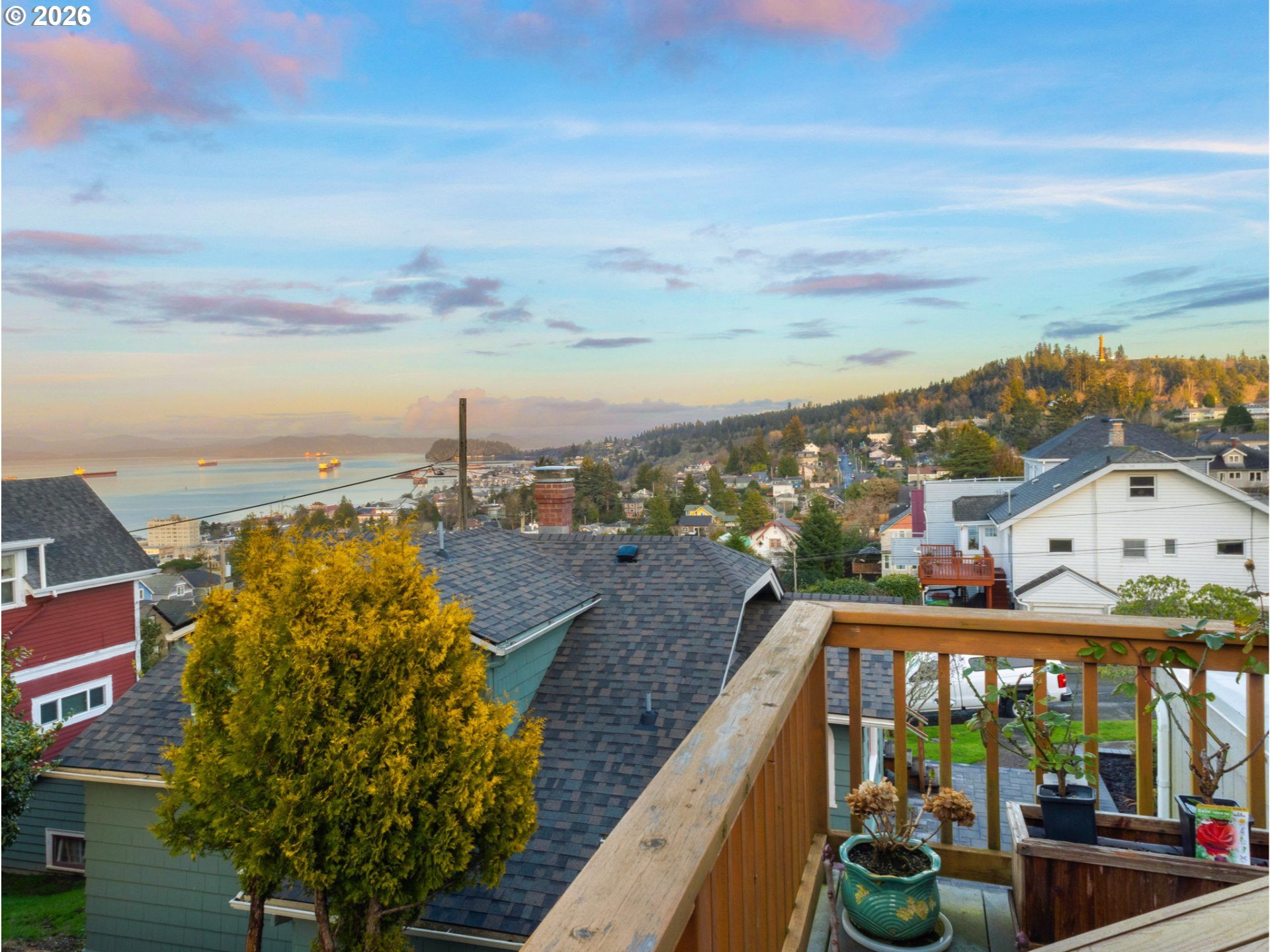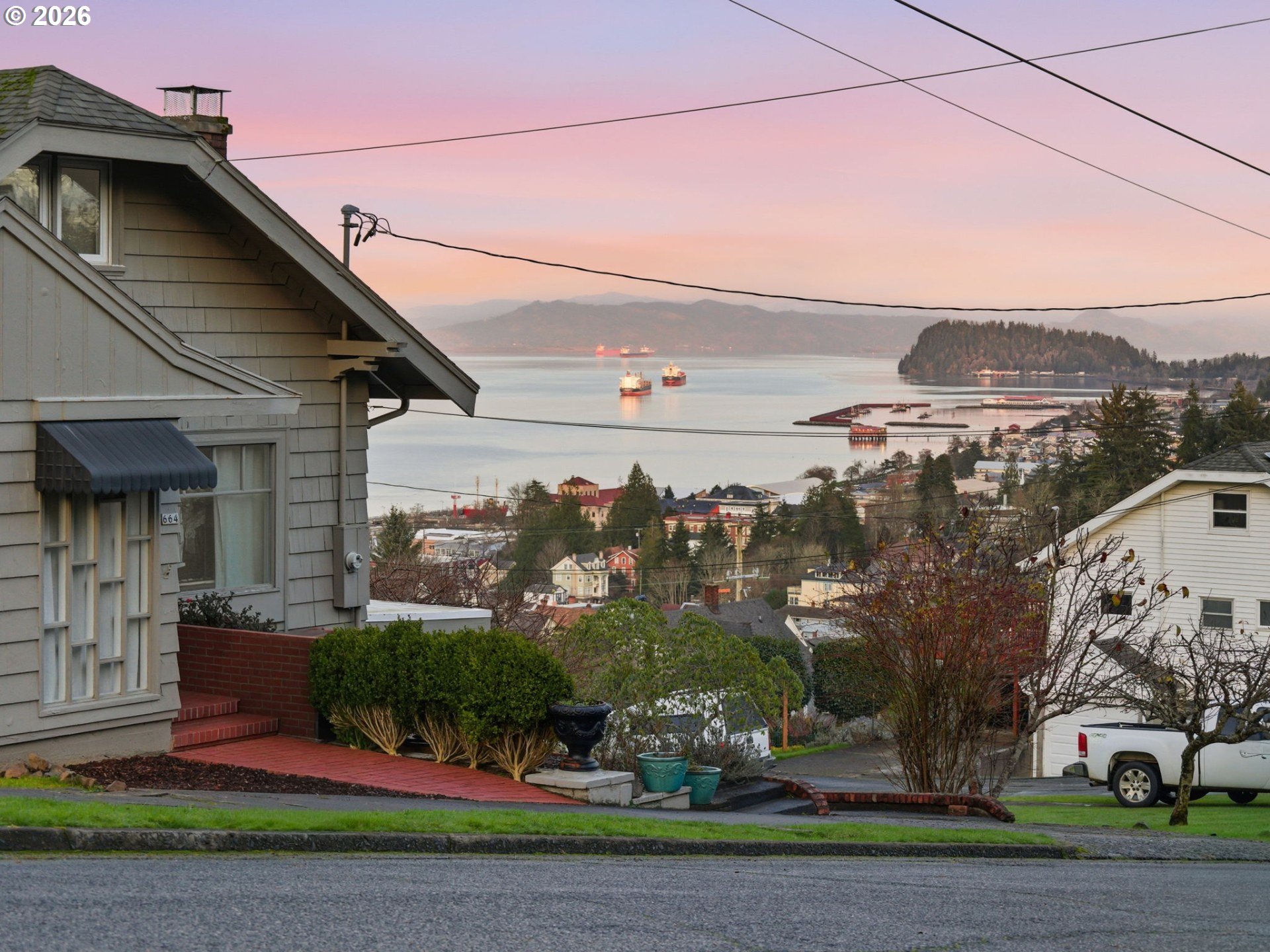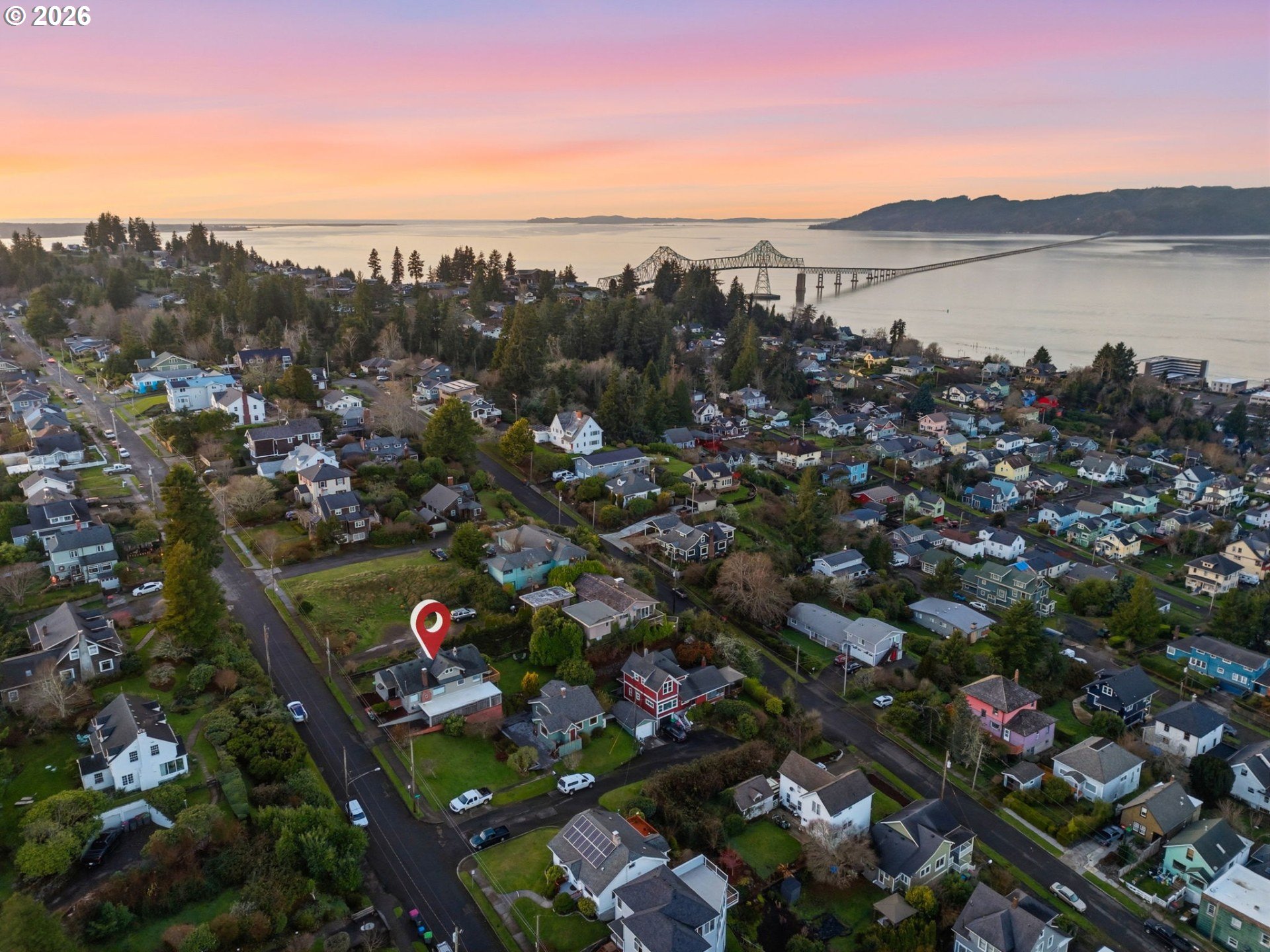 Take in breathtaking views of the Columbia River and iconic Astoria Column from almost every room of this charming home. Classic character meets comfort with a cozy wood-burning fireplace and beautifully refinished hardwood floors. The spacious main-level bedroom includes a walk-in closet with custom built-ins. Just off the light-filled kitchen, a deck overlooks a private, serene yard. Make your way upstairs to a recently remodeled bathroom, new carpet and 2 additional bedrooms. The expansive basement features tall ceilings and a sauna, perfect for relaxation or additional living/storage space. Call your favorite Agent and schedule a private tour today!