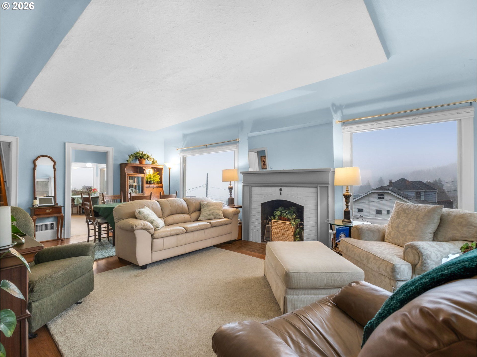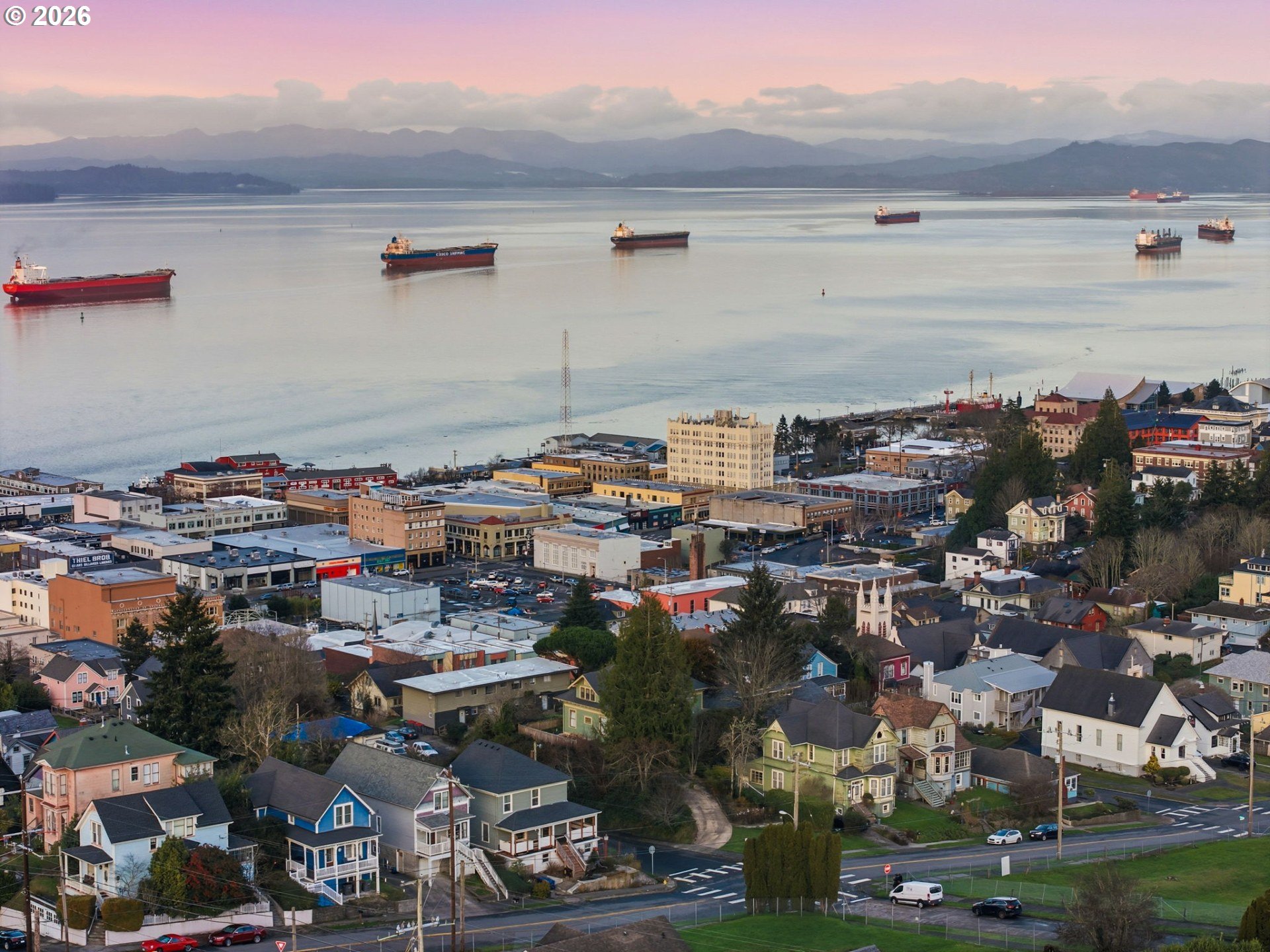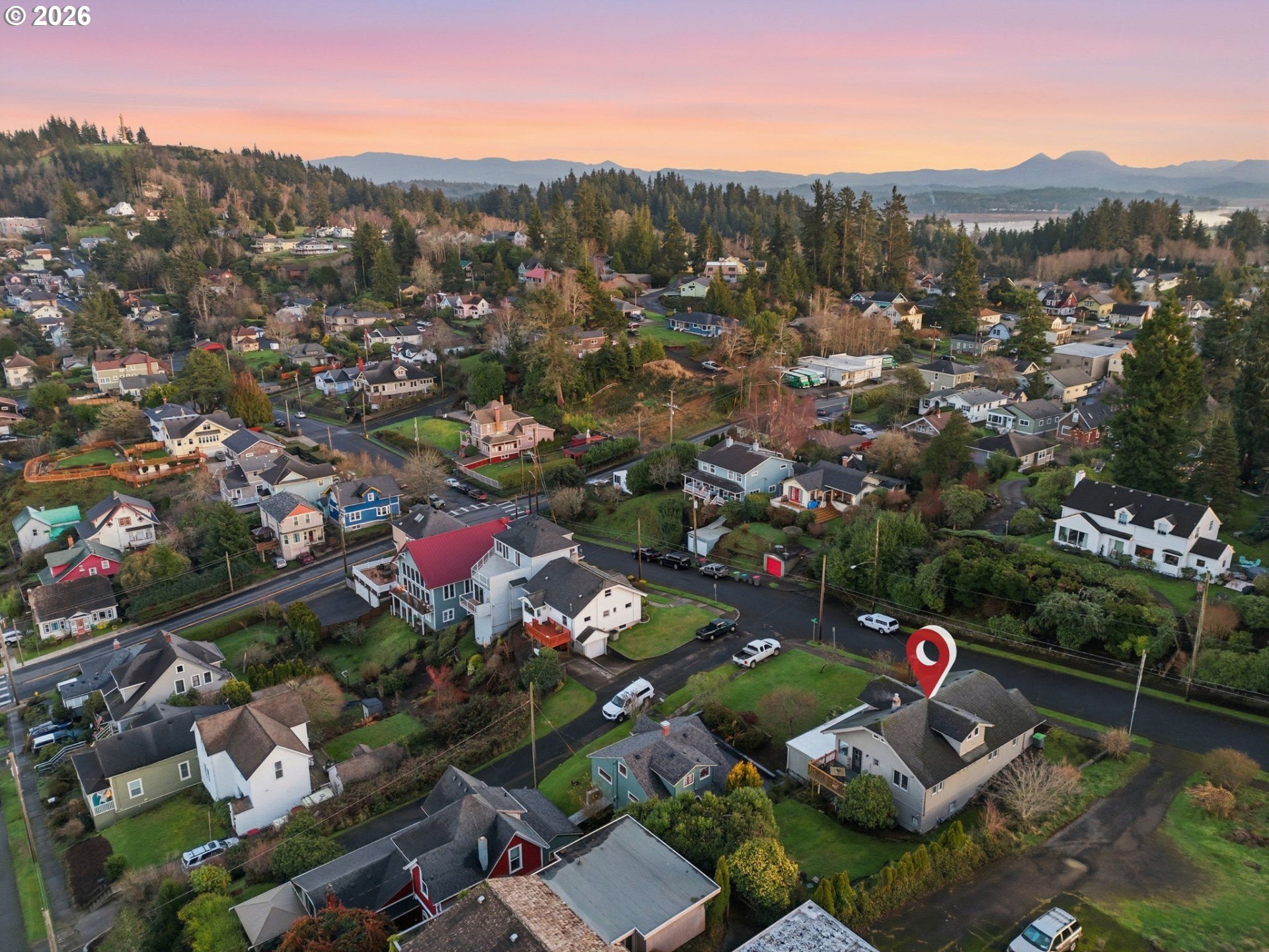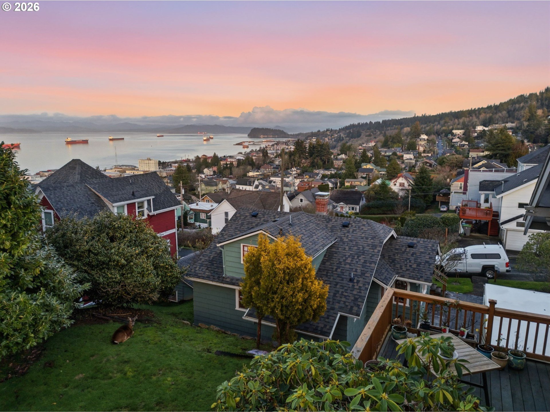 Take in breathtaking views of the Columbia River and iconic Astoria Column from almost every room of this charming home. Classic character meets comfort with a cozy wood-burning fireplace and beautifully refinished hardwood floors. The spacious main-level bedroom includes a walk-in closet with custom built-ins. Just off the light-filled kitchen, a deck overlooks a private, serene yard. Make your way upstairs to a recently remodeled bathroom, new carpet and 2 additional bedrooms. The expansive basement features tall ceilings and a sauna, perfect for relaxation or additional living/storage space. Call your favorite Agent and schedule a private tour today!