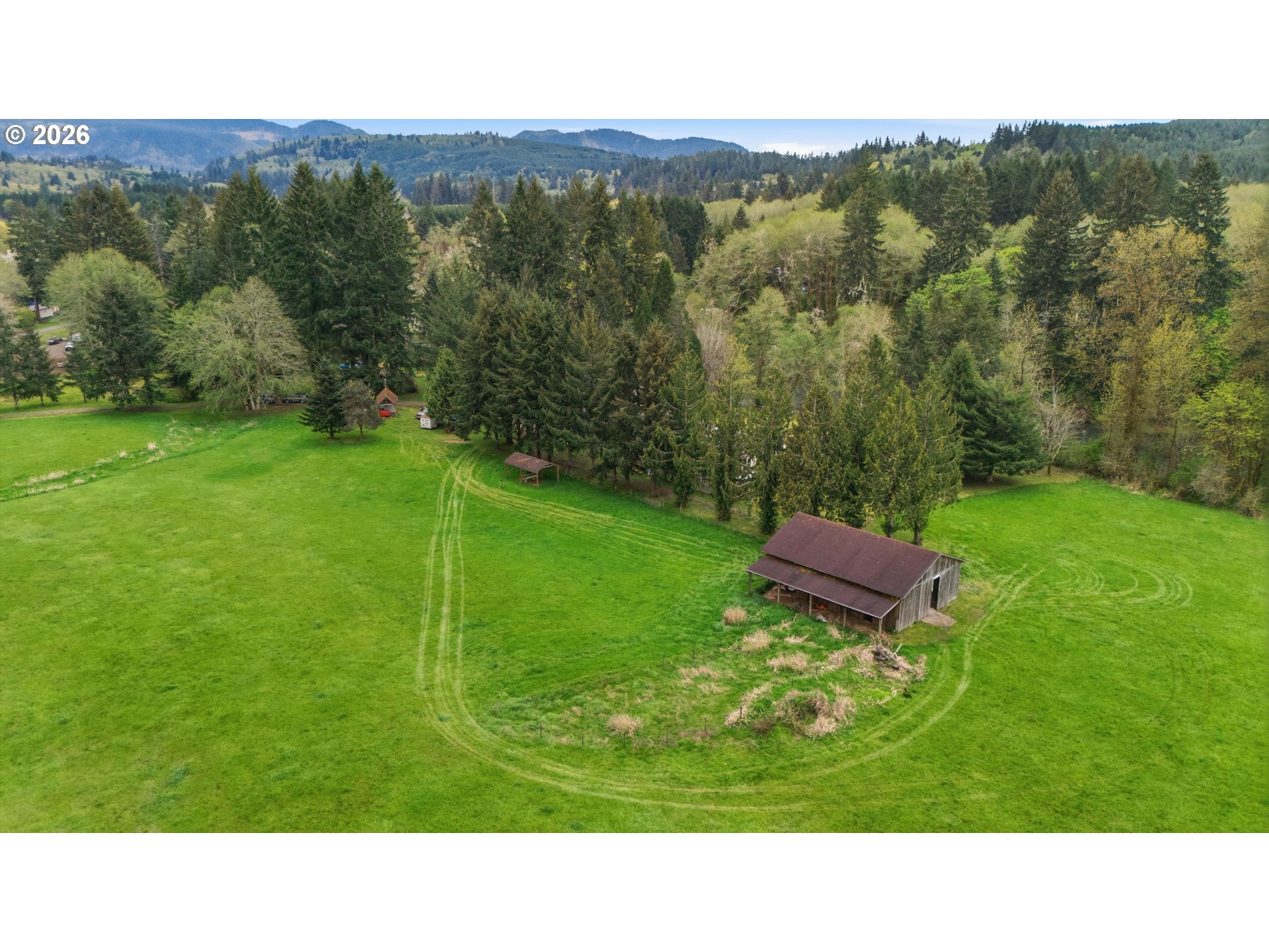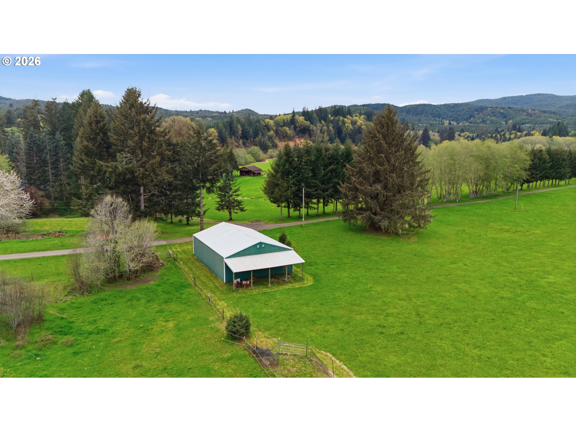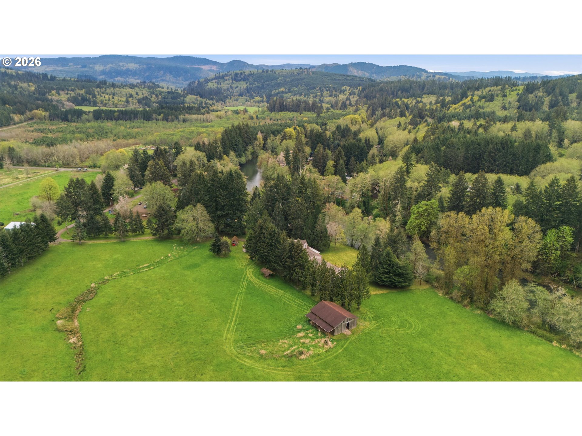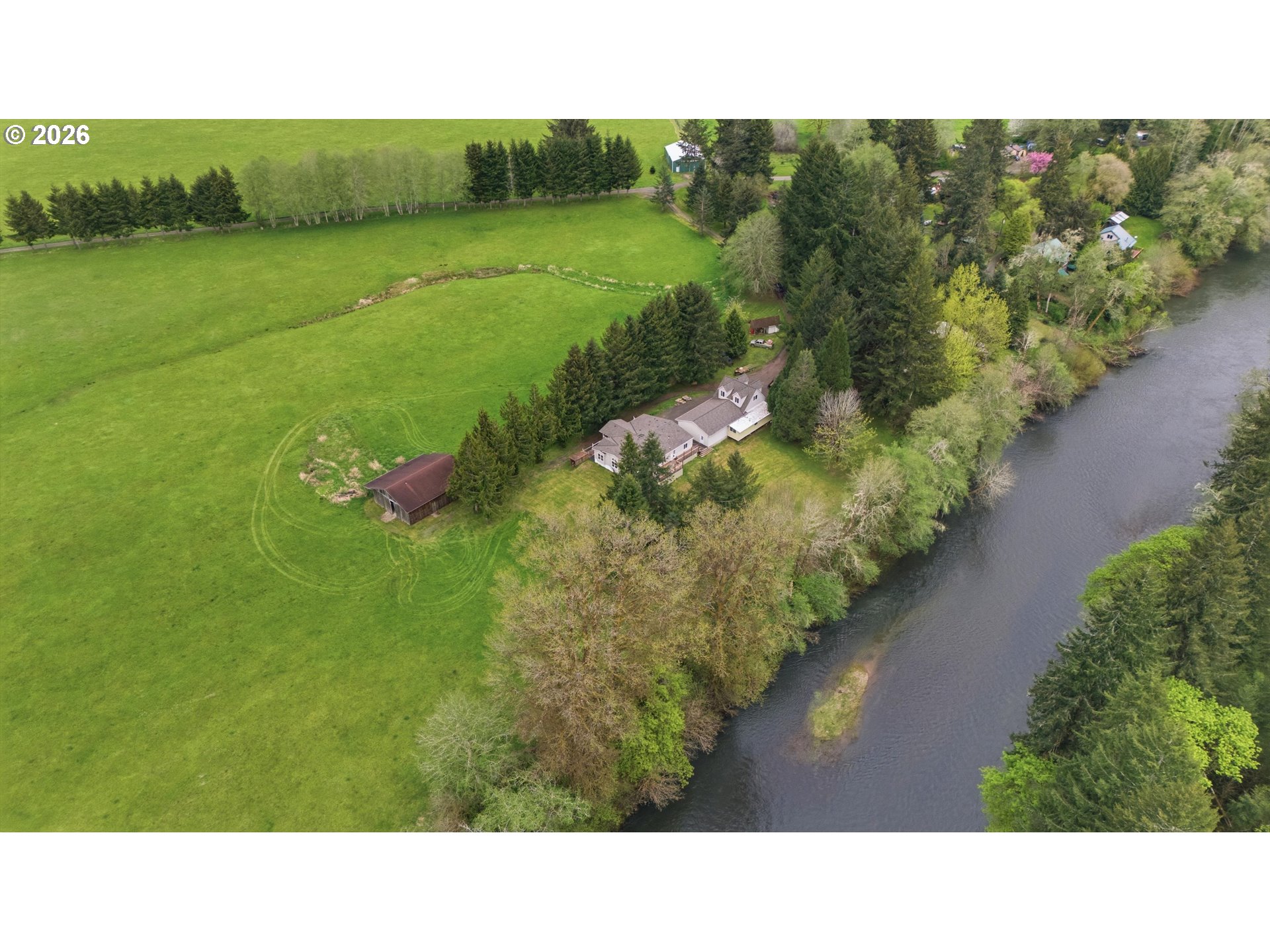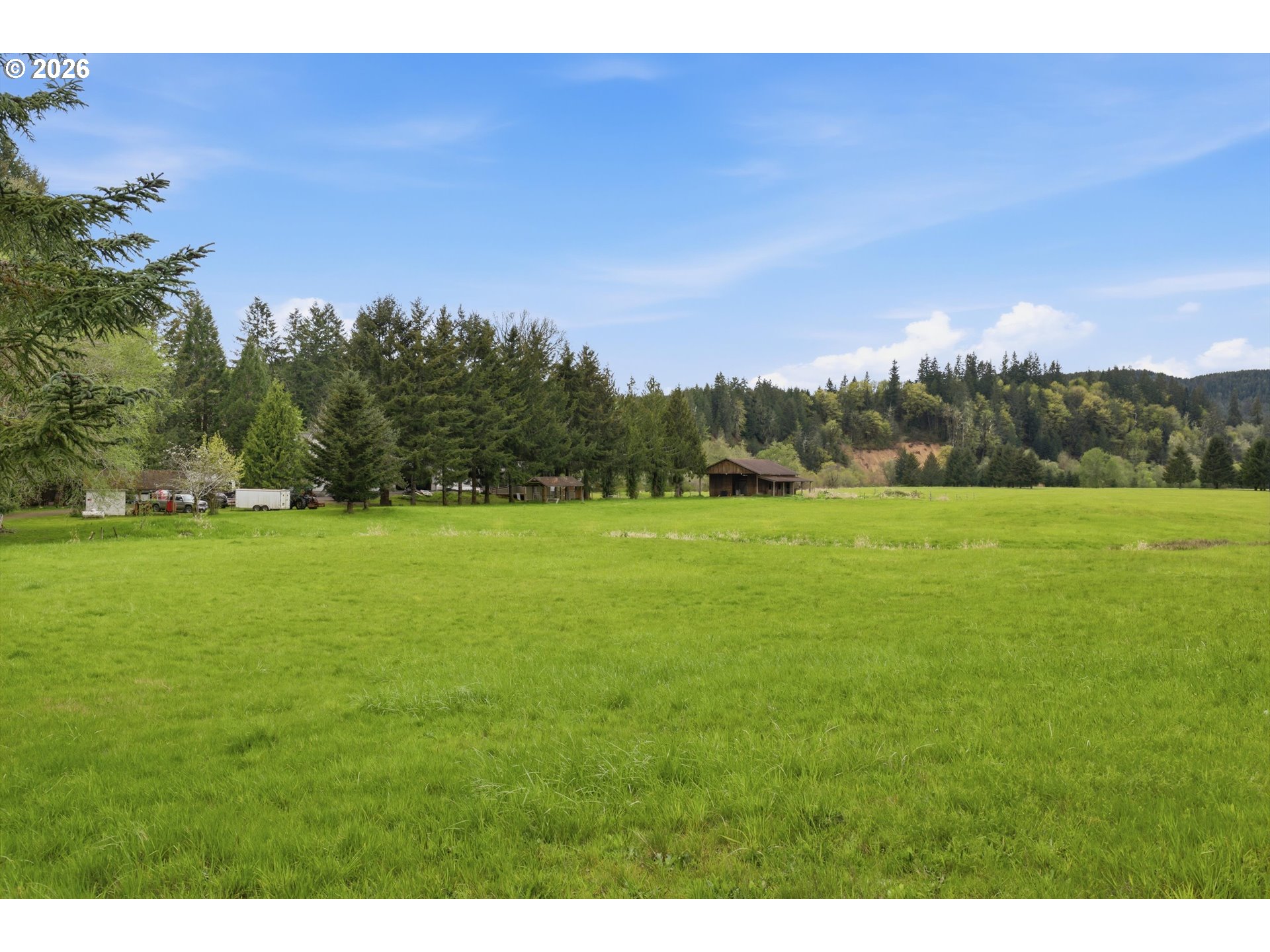 Incredibly serene 37.14 acre property, 3 bed 2 bath 2,254 sqft triple wide manufactured home with large covered front porch. Living room has vaulted ceilings, lots of windows and propane fireplace. Large kitchen with pantry, large bedrooms, primary bed with vaults, walk in closet and ensuite bath with oversized soaker tub, and stand up shower. Seller has new shower base purchased and never installed if someone wanted to remodel primary bath. Slider from dining room to back deck with enclosure around hot tub. Hot tub is newer but has a small leak believed to be around one of the jets. House has full house Generac generator and propane tankless hot water heater. Outbuildings included; 3 stall horse barn with hot and cold water wash stall, hay storage, office/tack room with toilet. 3 car detached Garage is wired 220 with both 220 and 20 amp outlets and wired relay for exterior lights so if there is motion all lights come on. 2 story attached workshop below with studio above with full bath and beautiful hardwood floors from the over 100 year old grange when it was taken down. Buyer to do their own due diligence on the workshop/studio being used as an ADU.Well pump house with backup generator. 40x60 shopLarge wood shed that could be used for boat storageWood shedUtility shed2 car metal car port. Roof on house and 3 car garage new in 2020 with transferrable warranty. Property has 1,000 ft of Nehalem river frontage, stairs down to the river have been started. 32.14 acres in tax deferral and have been hayed for years there is no present lease or contract so that new owner has no immediate obligation. Seller has contacts if new owner would like to engage with someone interested in haying the property. Propane tank is rented, diesel tank is owned. 3 California redwoods, Alder, Fir, Redwood, Cedar, Pear and Apple trees. Wildlife including elk herd that frequent the property.
