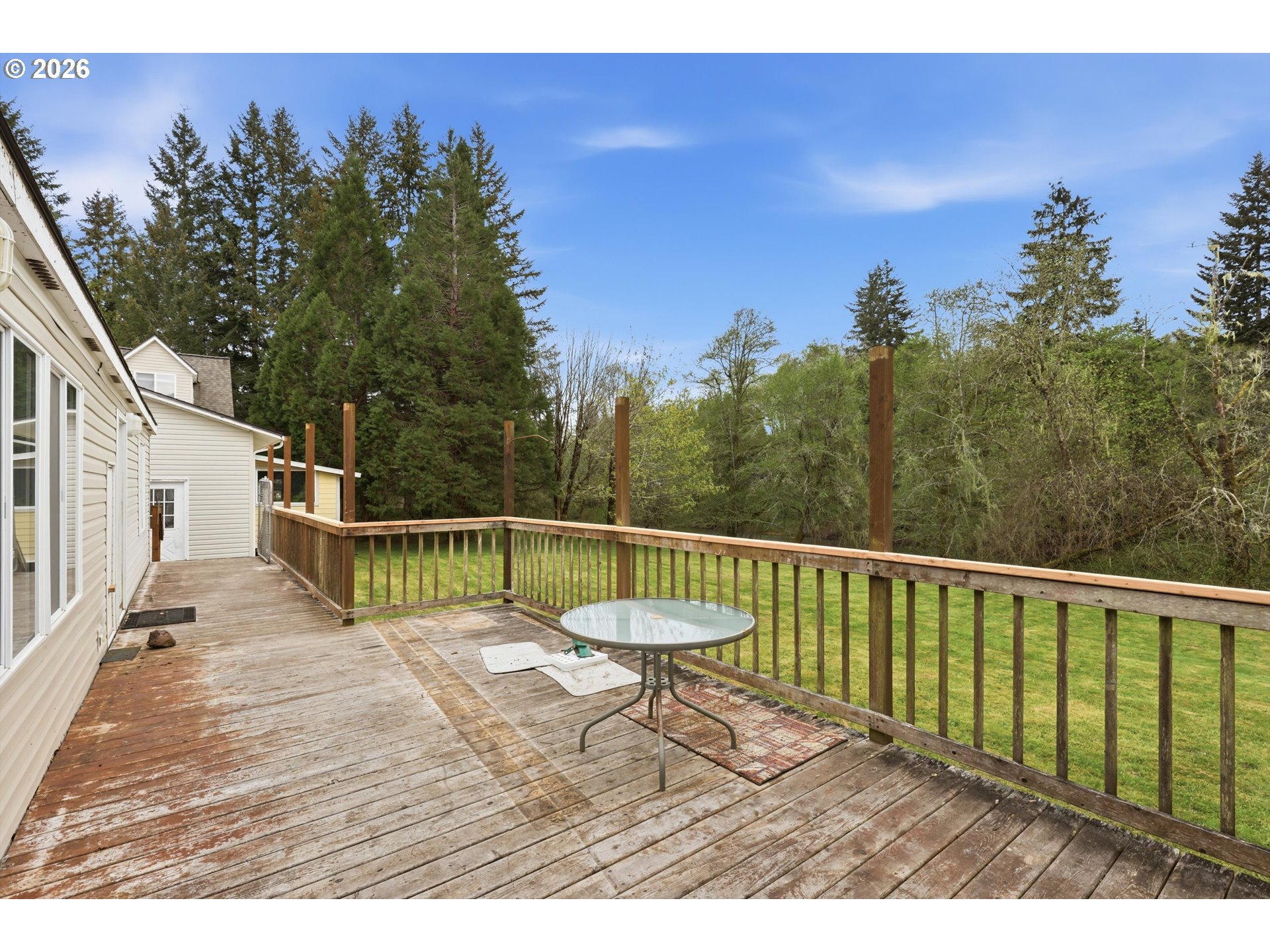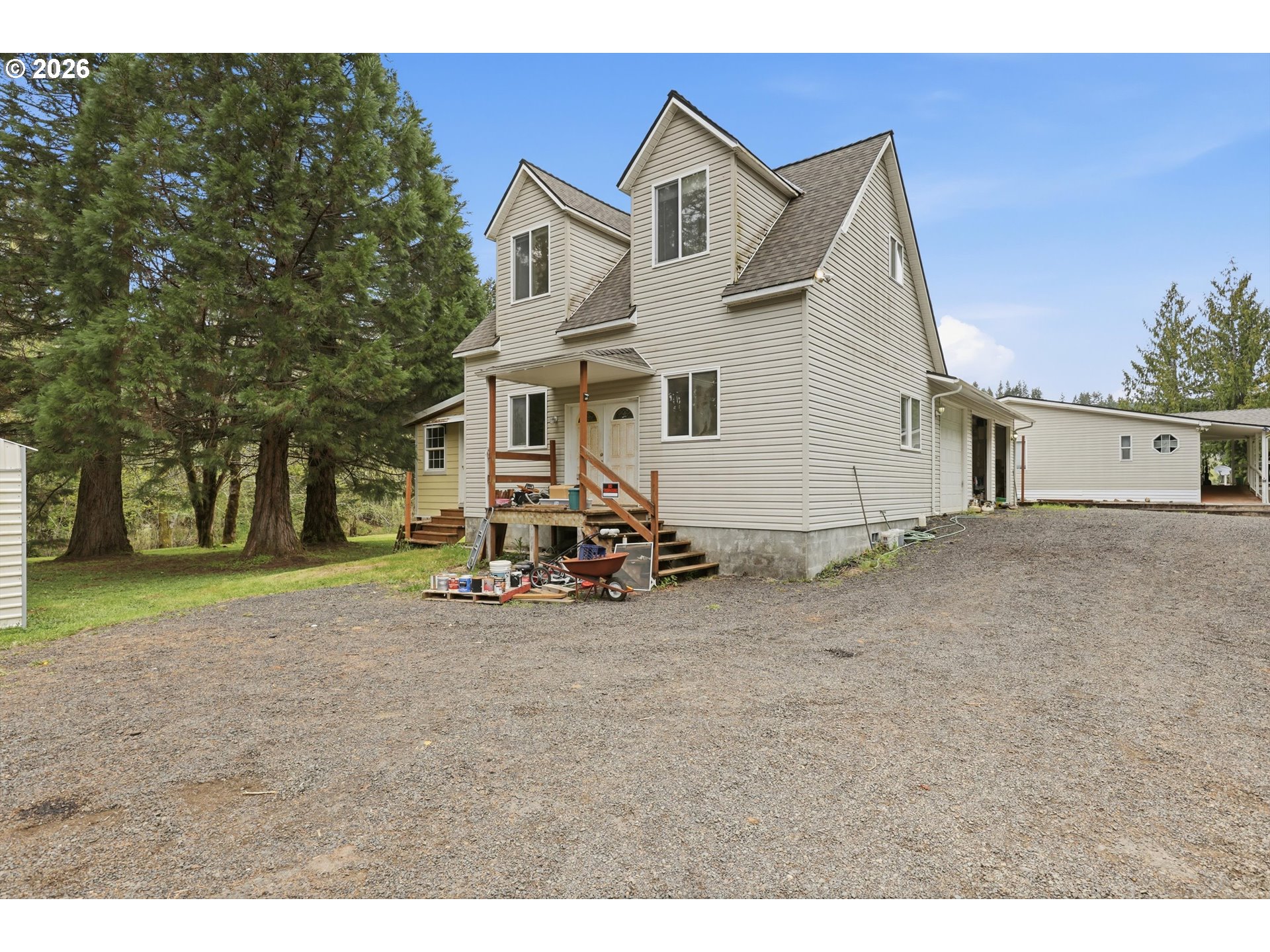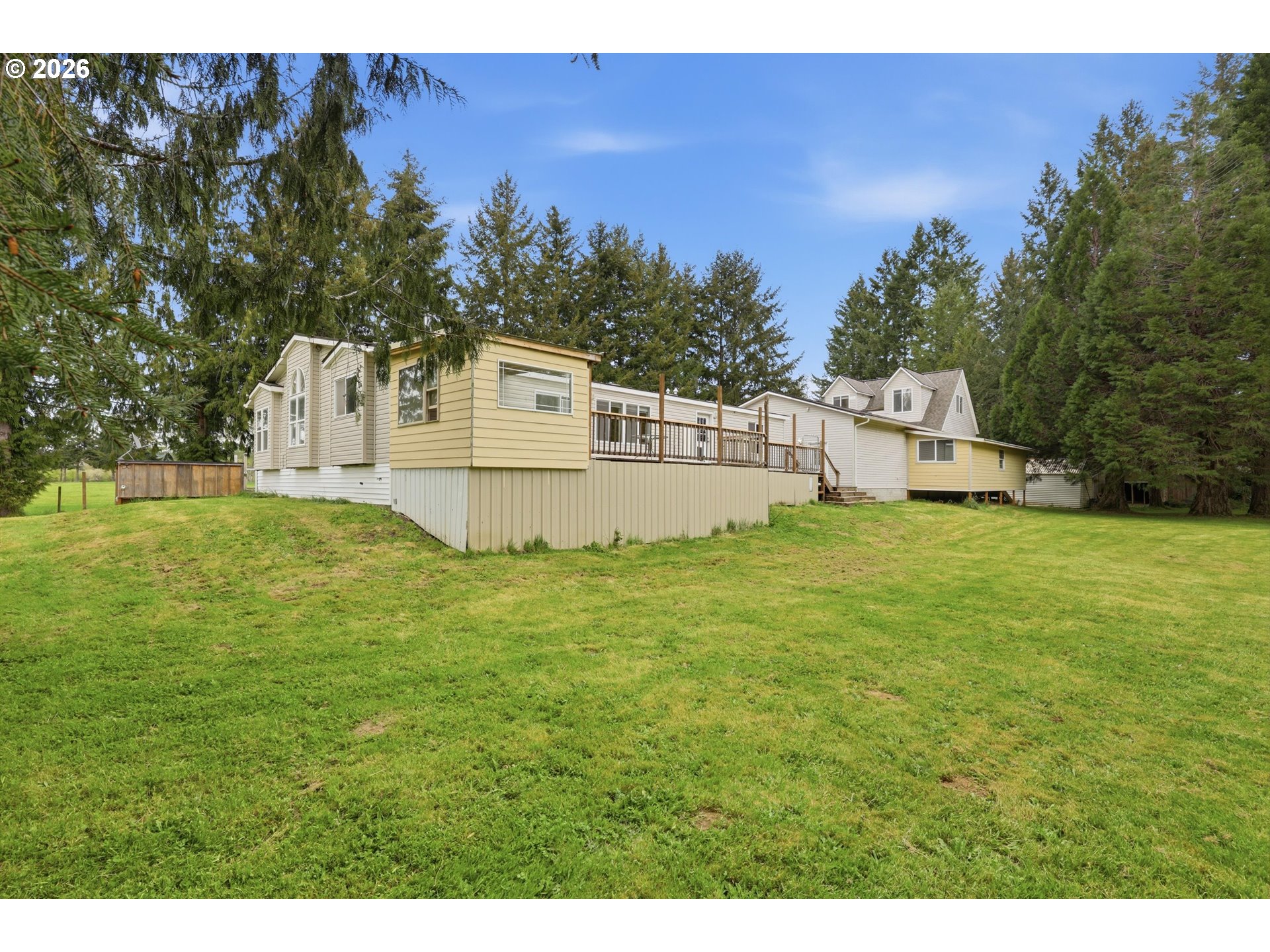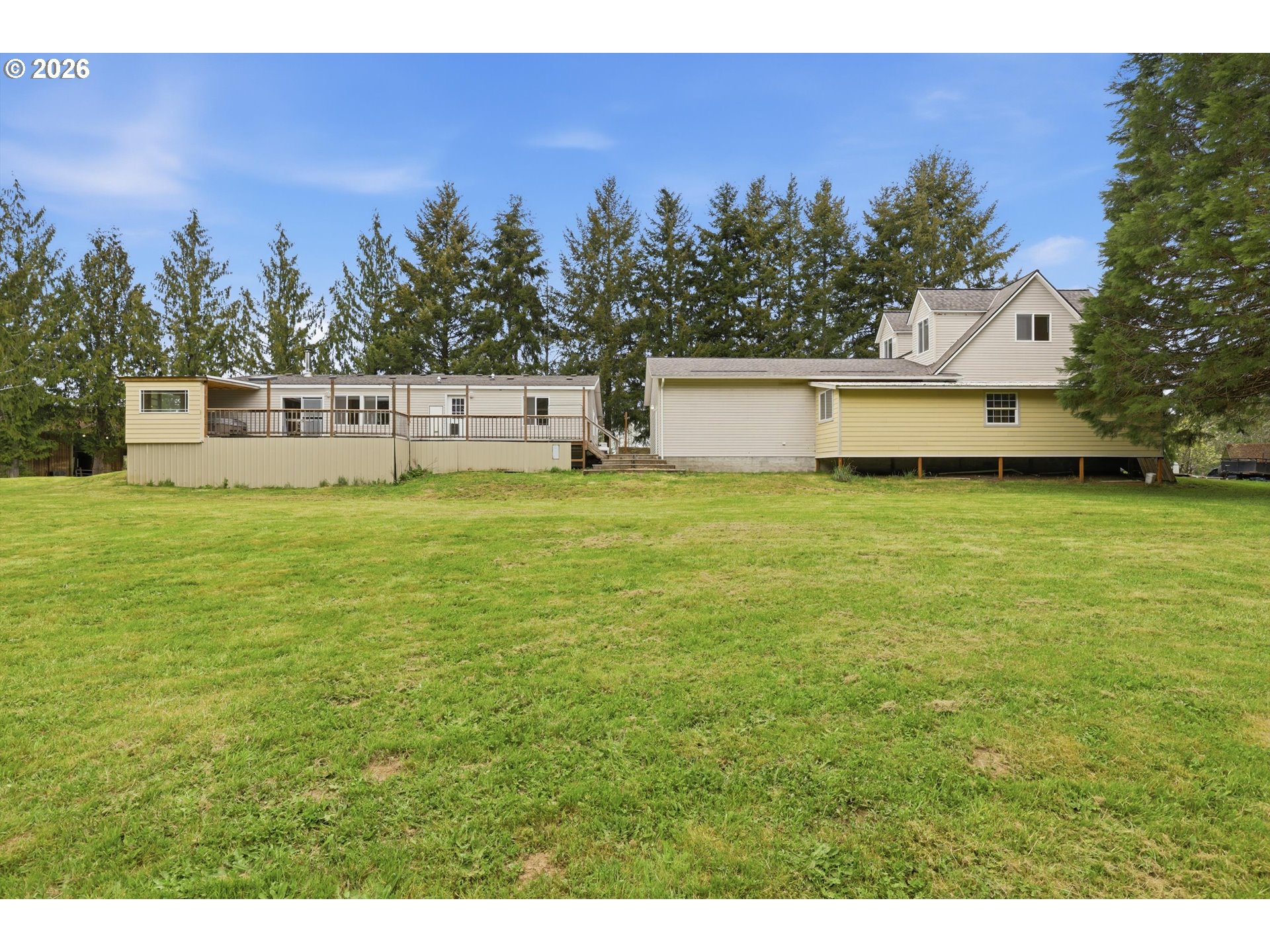Incredibly serene 37.14 acre property, 3 bed 2 bath 2,254 sqft triple wide manufactured home with large covered front porch. Living room has vaulted ceilings, lots of windows and propane fireplace. Large kitchen with pantry, large bedrooms, primary bed with vaults, walk in closet and ensuite bath with oversized soaker tub, and stand up shower. Seller has new shower base purchased and never installed if someone wanted to remodel primary bath. Slider from dining room to back deck with enclosure around hot tub. Hot tub is newer but has a small leak believed to be around one of the jets. House has full house Generac generator and propane tankless hot water heater. Outbuildings included; 3 stall horse barn with hot and cold water wash stall, hay storage, office/tack room with toilet. 3 car detached Garage is wired 220 with both 220 and 20 amp outlets and wired relay for exterior lights so if there is motion all lights come on. 2 story attached workshop below with studio above with full bath and beautiful hardwood floors from the over 100 year old grange when it was taken down. Buyer to do their own due diligence on the workshop/studio being used as an ADU.Well pump house with backup generator. 40x60 shopLarge wood shed that could be used for boat storageWood shedUtility shed2 car metal car port. Roof on house and 3 car garage new in 2020 with transferrable warranty. Property has 1,000 ft of Nehalem river frontage, stairs down to the river have been started. 32.14 acres in tax deferral and have been hayed for years there is no present lease or contract so that new owner has no immediate obligation. Seller has contacts if new owner would like to engage with someone interested in haying the property. Propane tank is rented, diesel tank is owned. 3 California redwoods, Alder, Fir, Redwood, Cedar, Pear and Apple trees. Wildlife including elk herd that frequent the property.