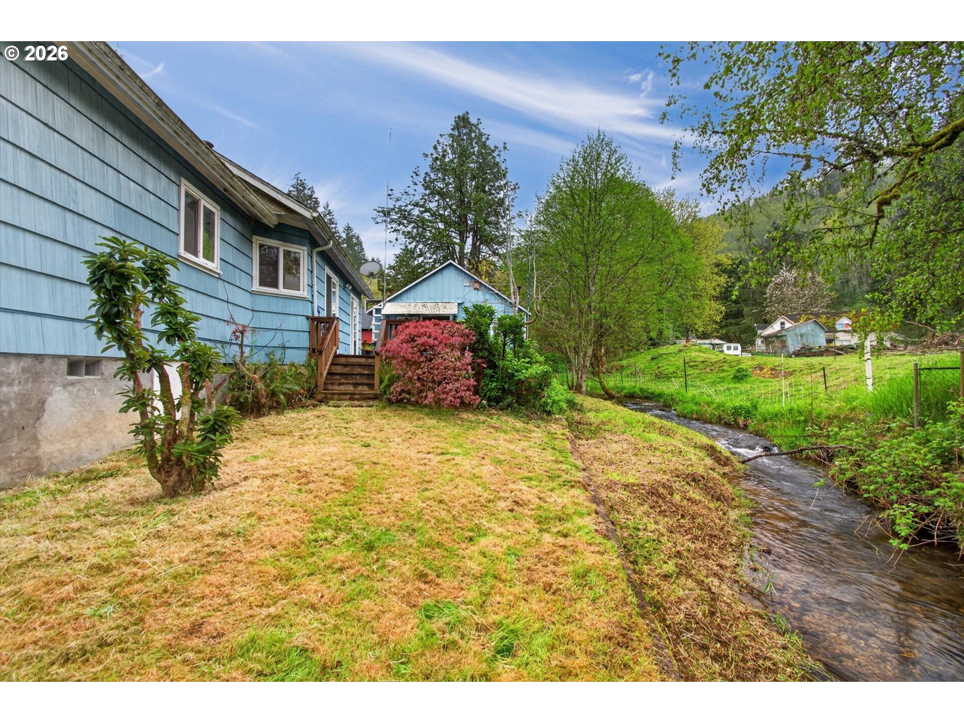 Schedule a tour of this 3-bedroom, 2 bath home with shop. Tucked into the historic timber town of Westport, Oregon — a genuine Columbia River community perfectly situated between Astoria and Portland — this 1920s home has been updated over the years, it offers a warm, flowing floor plan, generous room sizes, and more storage than you'll know what to do with. The living room embraces the Pacific Northwest. Wood-lined walls and ceilings, a rock fireplace, two large windows, and a picture-perfect view of a majestic redwood tree the original family planted as a sapling over fifty years ago. That tree has been watching over this home ever since. The kitchen is bright, wood cabinets — natural light, an eat-up bar, and an open flow into the formal dining room. Deck access makes outdoor entertaining easy. The primary bedroom is generous, with a walk-in closet and a full bathroom featuring a double vanity, tub and shower combo, and a standalone shower. The hidden pull-down ladder that leads to the attic is almost finished with heating, electricity, natural light and storage galore. Out back, a private deck sits above a stream that trickles quietly over the rocks year-round. The detached shop has power and original flooring. Mature landscaping surrounds the property — towering rhododendrons, camellias, azaleas, dogwoods, and fir trees decades in the making. Walking trails start at your front door, a tunnel path invites exploration, the Washington ferry is minutes away, and new boat docking facilities are less than five minutes down the road. The famous local restaurant has been making fresh berry pies to hungry travelers on Hwy 30 for over 30 years! Some updating remains. But the warmth, the story, and the setting are already here. Come see what Westport has to offer!