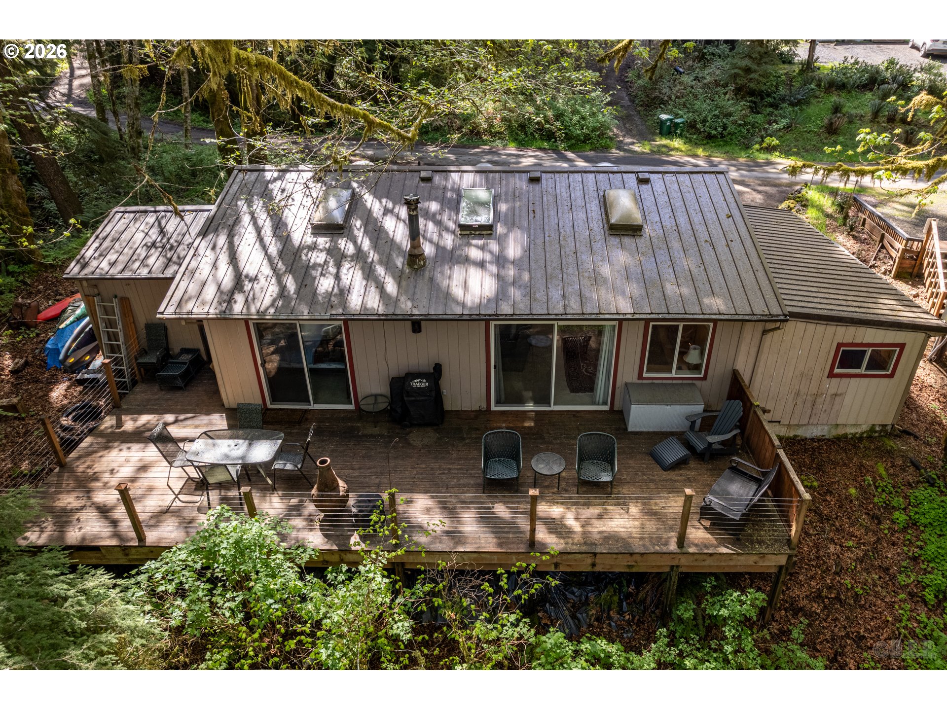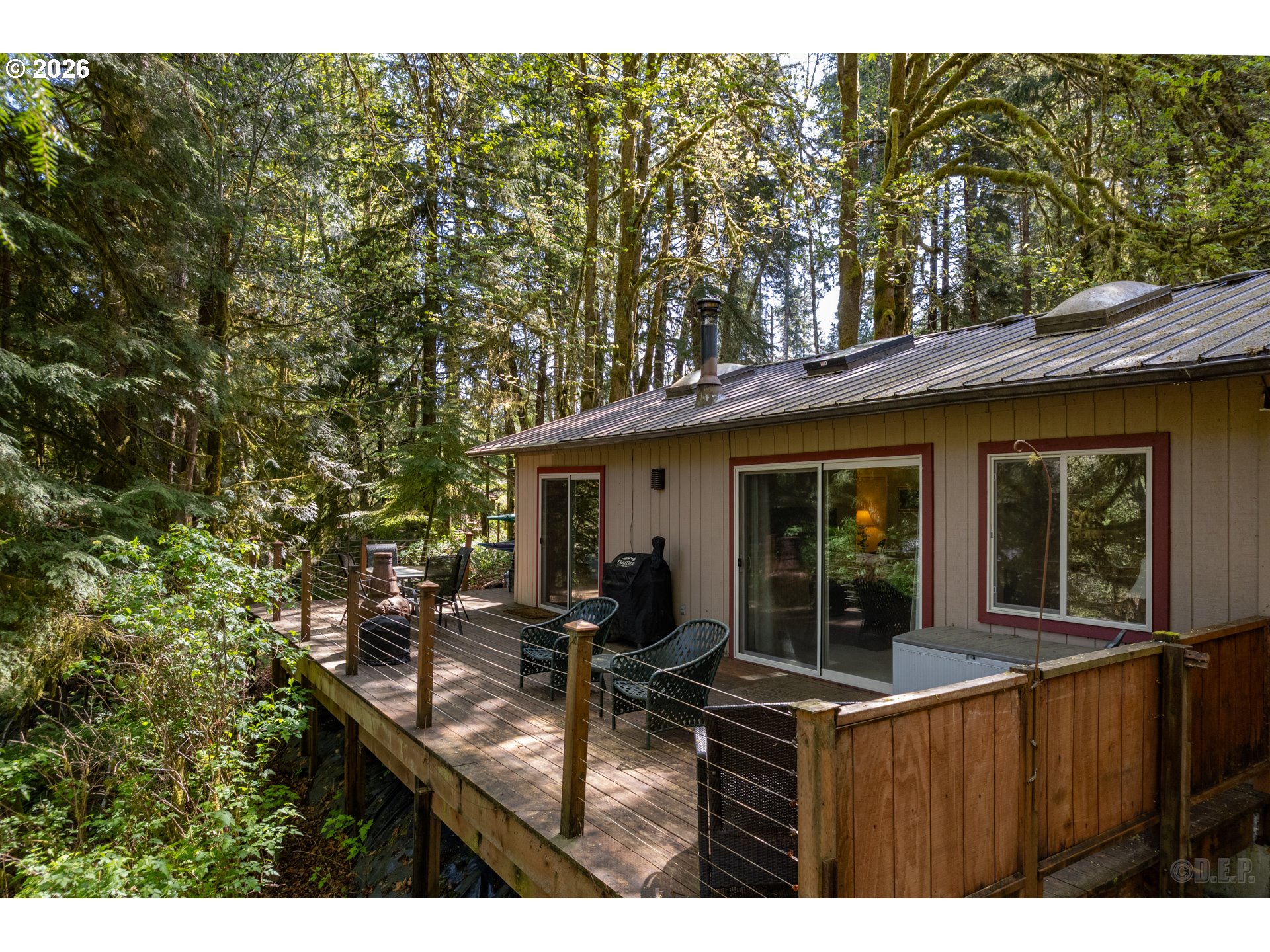 Welcome to your creek frontage paradise nestled in the trees! This 3 bed 1 bath home is packed full of character with views of fishhawk lake and the creek!! Enjoy all the ease and comfort with a metal roof, wrap around private deck, vaulted ceilings, large open floor plan, new wood stove for comfort, an oversized bedroom with a private office! This home and community have so much to offer just being 90 minutes to Portland! Come see what your next vacation can be or full time living in the trees!