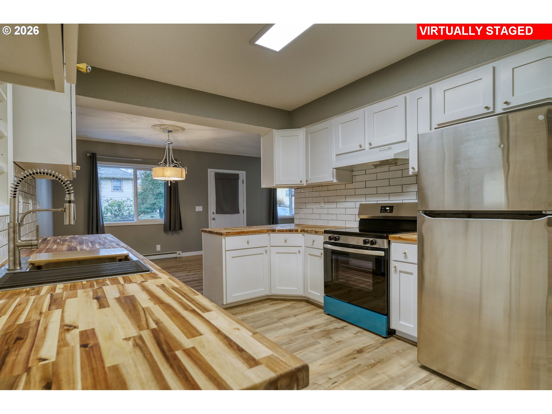 (503) 893-8874Welcome home to this charming 3-bedroom, 1-bath single-level residence that blends comfort, functionality, and thoughtful updates throughout. Step inside to an open living and dining area highlighted by laminate flooring and a cozy wood-burning fireplace, creating a warm and inviting atmosphere. The updated kitchen features stainless steel appliances and flows seamlessly into the main living space, perfect for everyday living and entertaining.This home also offers a dedicated laundry room and a versatile family/bonus room, ideal for a home office, playroom, or additional living space. Outside, enjoy a large fenced yard with plenty of room to relax, garden, or play, along with a covered porch for year-round enjoyment. A detached garage adds extra storage and convenience. With updates throughout and so much to offer, this home is truly move-in ready and not to be missed.