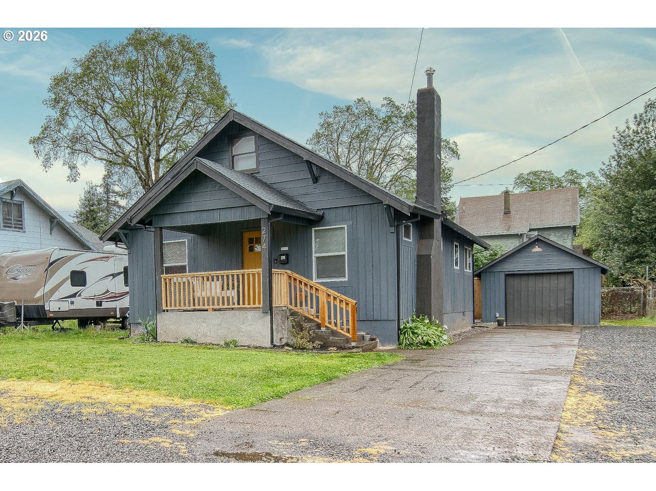 Welcome home to this charming, fully updated bungalow nestled in a well-established neighborhood just moments from St. Helens Riverfront. Blending timeless character with modern finishes, this 3-bedroom, 2-bath beauty offers comfort, style, and functionality throughout.Step inside to find a thoughtfully refreshed interior featuring quartz countertops, stainless steel appliances, and built-ins. The main bath showcases a stunning tile shower, while a cozy gas fireplace creates the perfect gathering space.A versatile loft offers additional room for storage, hobbies, or a quiet retreat. The spacious laundry/mud room adds everyday practicality.Enjoy outdoor living year-round with an inviting covered front porch and a covered composite deck—perfect for relaxing or entertaining. The oversized single-car garage, ample parking, and RV space provide flexibility for all your lifestyle needs.