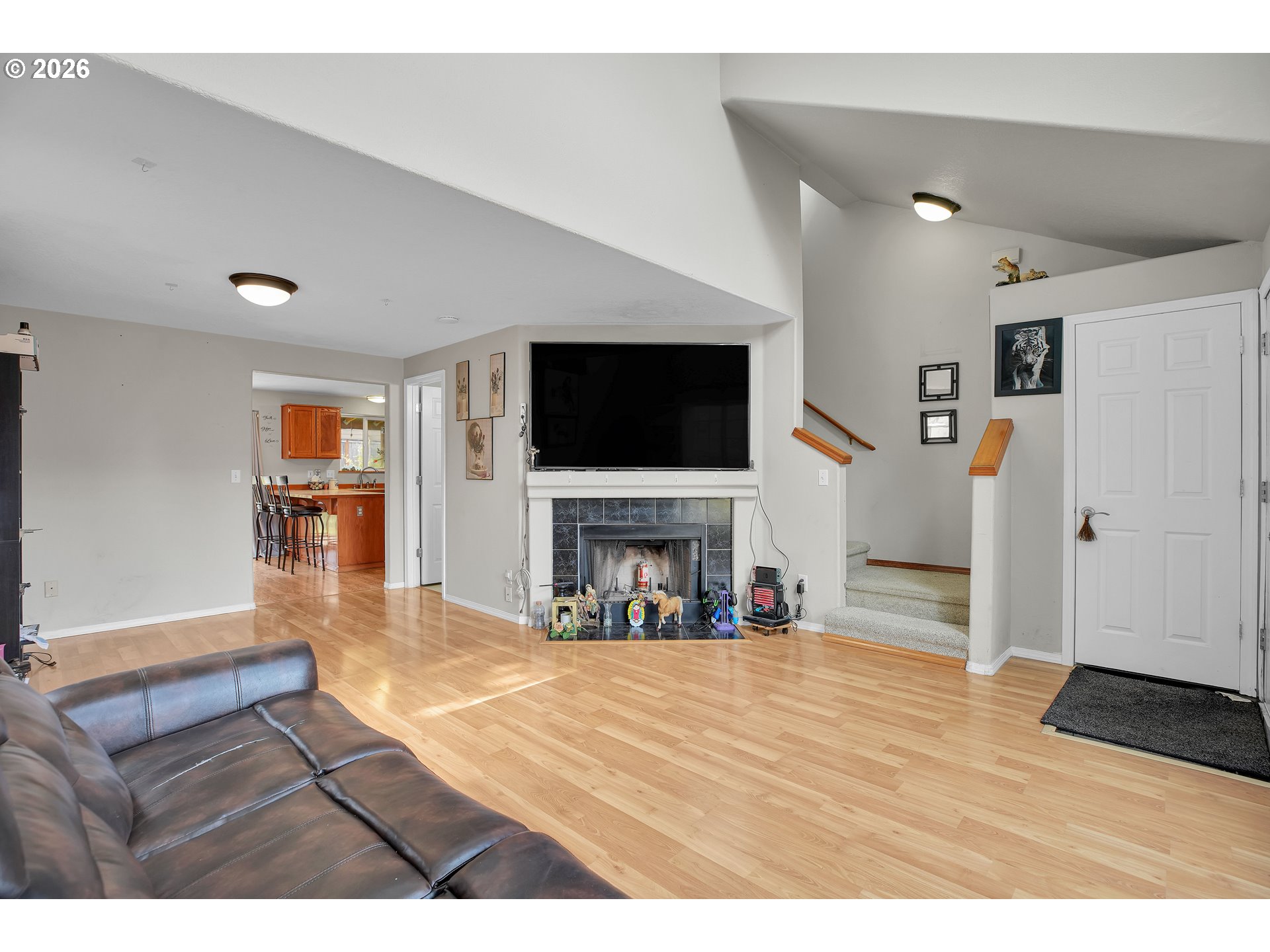 This beautiful 3 bed 2.5 bath home is located within half a mile to schools and grocery stores. Huge primary suite with vaulted ceilings & walk-in closet. Living room has a cozy fireplace & vaulted ceilings. Large property with fully fenced backyard & oversized, attached garage. NEW fence just installed. Kitchen has stainless steel appliances. Ready to move in! Great floor plan!