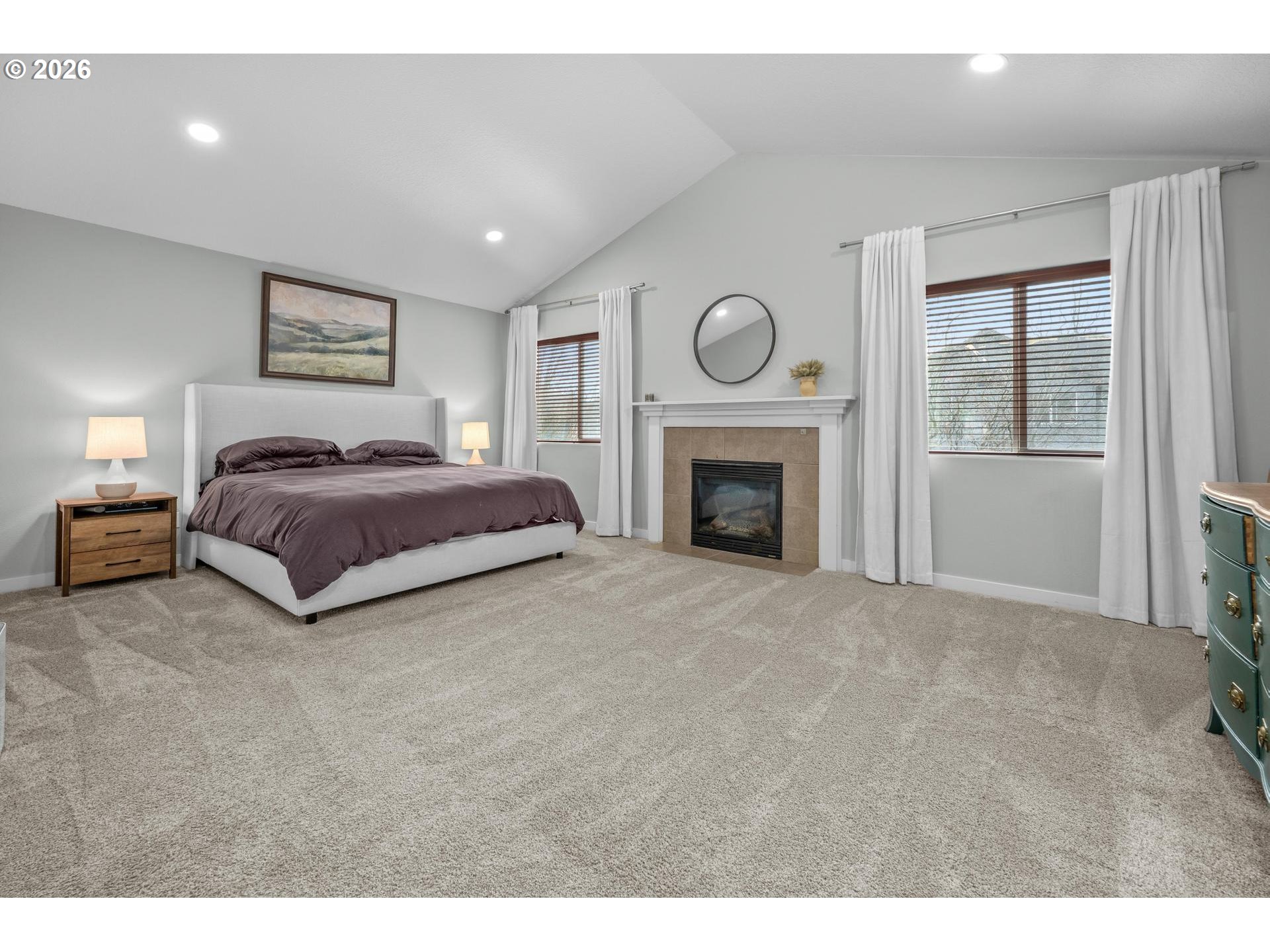 Discover this exceptional two-story residence, perfectly positioned on a quiet cul-de-sac. Designed for both elegance and comfort, the expansive open floor plan is enhanced by rich hardwood floors and a chef’s kitchen featuring quartz countertops, pantry, cook island, breakfast bar, and a generous dining nook. The formal dining room offers a refined setting for entertaining, while the great room—anchored by a fireplace—flows effortlessly from the kitchen. The luxurious primary suite is a private retreat with its own fireplace and a spa-inspired bath with tiled finishes and double vanities. A versatile fifth bedroom currently serves as a media/bonus room. Outdoor living is elevated with an upper-level deck, lower covered patio, and a fully landscaped, fenced backyard featuring low-maintenance turf and a custom putting green.