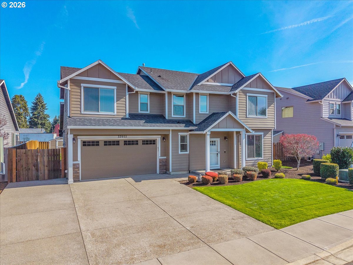 Welcome to this wonderful Scappoose home offering a truly versatile floor plan designed to grow with your lifestyle. Whether you need five bedrooms or prefer three bedrooms plus a dedicated office and a spacious vaulted bonus room, this home adapts effortlessly to your needs - abundant space awaits at every turn. The heart of the home is an open concept great room where living and entertaining flow seamlessly together. Easy-care laminate floors and a cozy gas fireplace set the tone, while the generous kitchen impresses with a large island, rich granite countertops, stainless steel appliances, and a pantry to keep everything organized. Brand new carpet has just been installed, adding a fresh, move-in-ready feel. The spacious primary suite features vaulted ceilings, a refreshing ceiling fan, a relaxing soaking tub, and a must-have walk-in closet. Step outside to a beautifully landscaped, fully fenced level backyard complete with a sprinkler system and a large covered patio, ideal for enjoying everything Oregon's seasons have to offer. A handy tool shed provides extra storage for all your outdoor equipment and recreational toys, while a gated bonus parking area offers the perfect spot for an extra vehicle, camper or boat. Situated in one of Scappoose's newer, high-demand neighborhoods, this home is conveniently close to schools, shopping and easy highway access, placing you just minutes from downtown Portland and the Sunset Corridor. This is the one you've been waiting for!