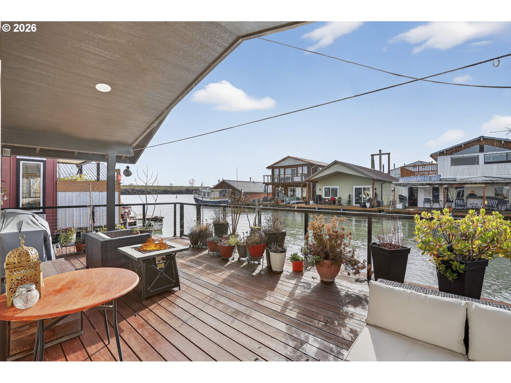 Welcome home to river life on the scenic Multnomah Channel! This beautifully designed 2 bedroom, 1 bath floating home blends modern comfort with the peaceful rhythm of life on the water. Built in 2019 by Derek Morrell, this home is thoughtfully constructed for low maintenance, turn-key living. One of the true showstoppers is the expansive deck space — perfect for entertaining guests, enjoying morning coffee, or unwinding at sunset as boats glide by. Wrapped in a sleek steel cable railing, the deck maximizes views while keeping the look clean and contemporary, inviting you to fully soak in everything river living has to offer. Inside, the home feels light, welcoming, and move-in ready with the option to be sold furnished for an easy transition. Enjoy the added benefit of low Columbia County taxes and the warm, close-knit community that makes McCuddy’s Landing so special. If you’ve been dreaming of a tranquil waterfront lifestyle, this floating home delivers it all — just bring yourself and start enjoying the river!