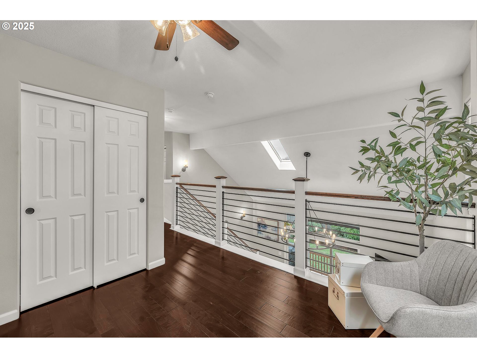 Move-in ready! Don’t miss this tastefully updated home with outstanding custom-quality craftsmanship. Better than new! This well-designed, open floor plan lives large with vaulted ceilings, abundant natural light, a striking gas fireplace, and a modern stair railing that adds architectural interest to the great room. A lovely two-tone kitchen features an eating bar, farmhouse sink, quartz countertops, pantry, and soft-close cabinets and drawers throughout.The main-floor primary suite includes a luxurious soaking tub, walk-in shower, and walk-in closet. The adjacent utility room offers built-in cabinetry and sink. An upstairs loft overlooks the great room and provides a light, airy, versatile space for a den, home office, family room, or potential 4th bedroom.Outdoor living shines with a SunSetter retractable awning over the deck and a separate patio for entertaining or relaxing. Low-maintenance yard includes a dog run, garden shed, and raised garden bed. Abundant storage thoughtfully integrated throughout the home, including interior spaces and garage storage solutions. Brand-new roof installed July 2025, plus fresh interior and exterior paint, new flooring, millwork, fixtures, and more.