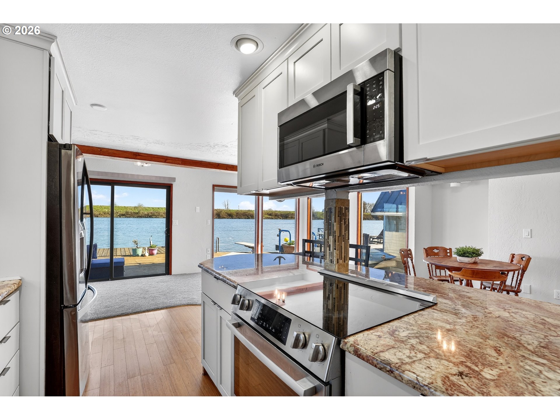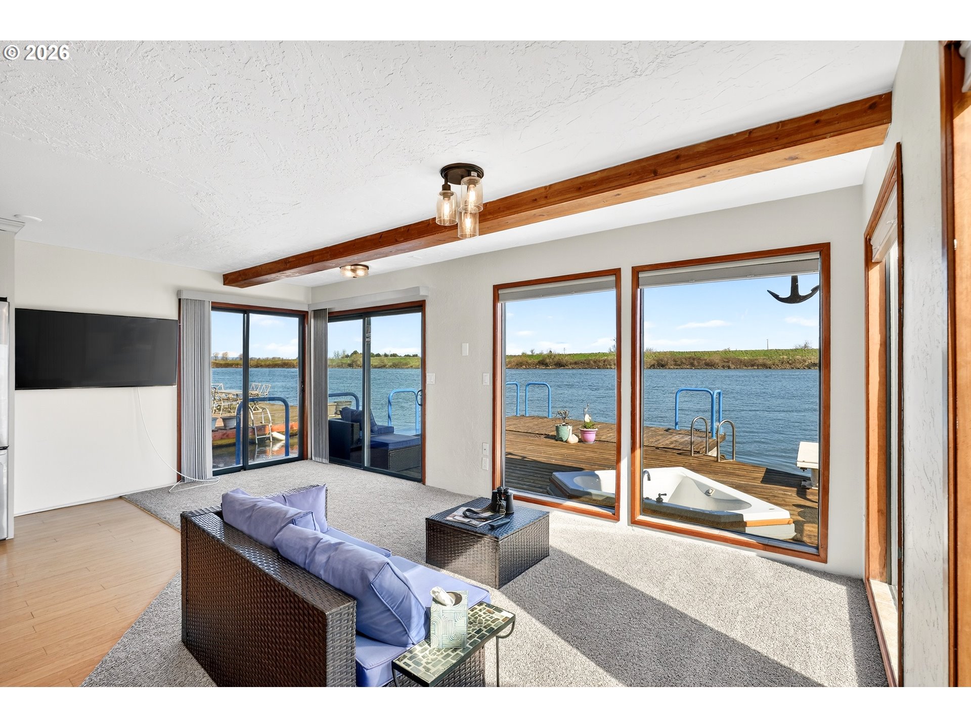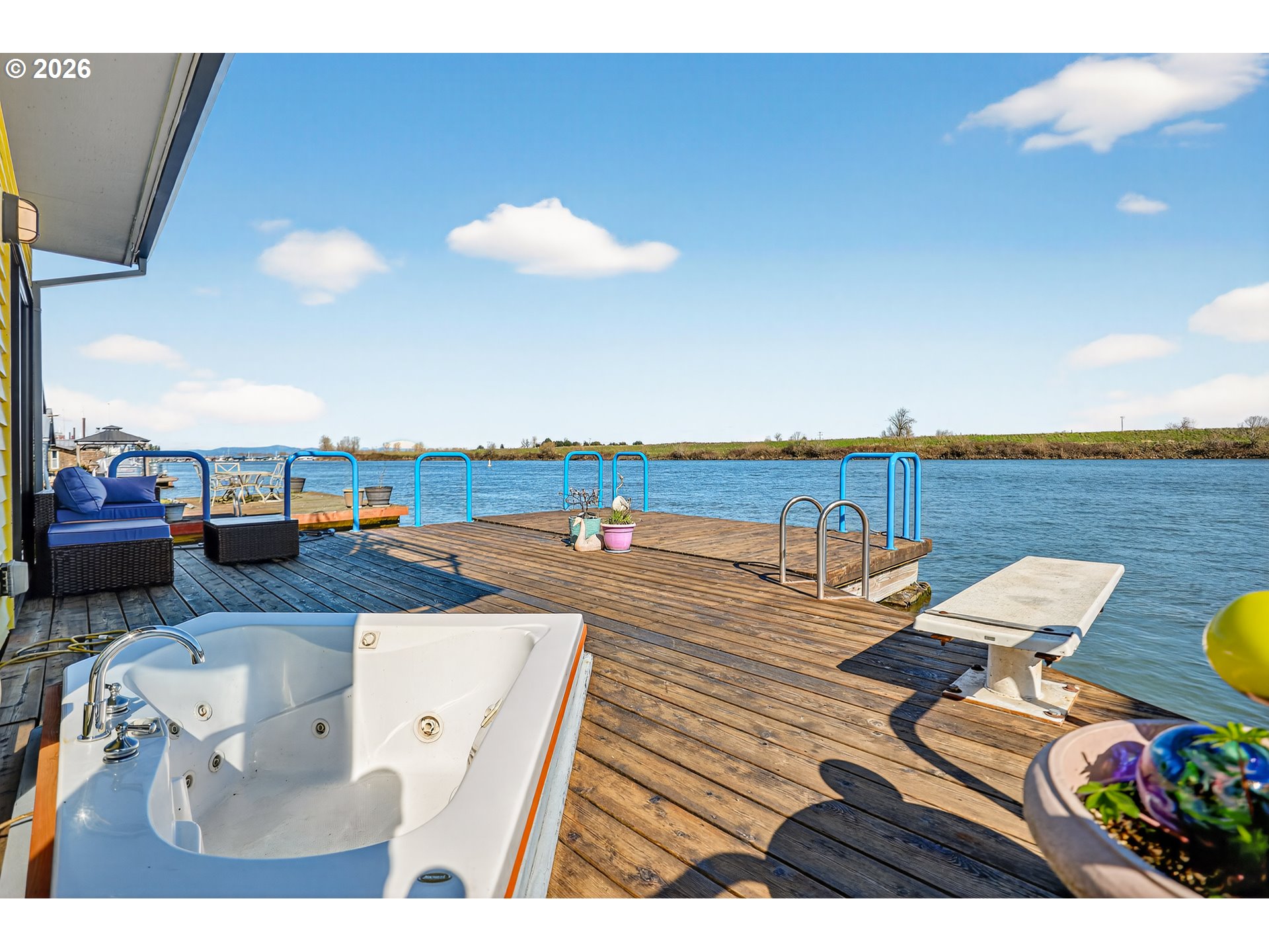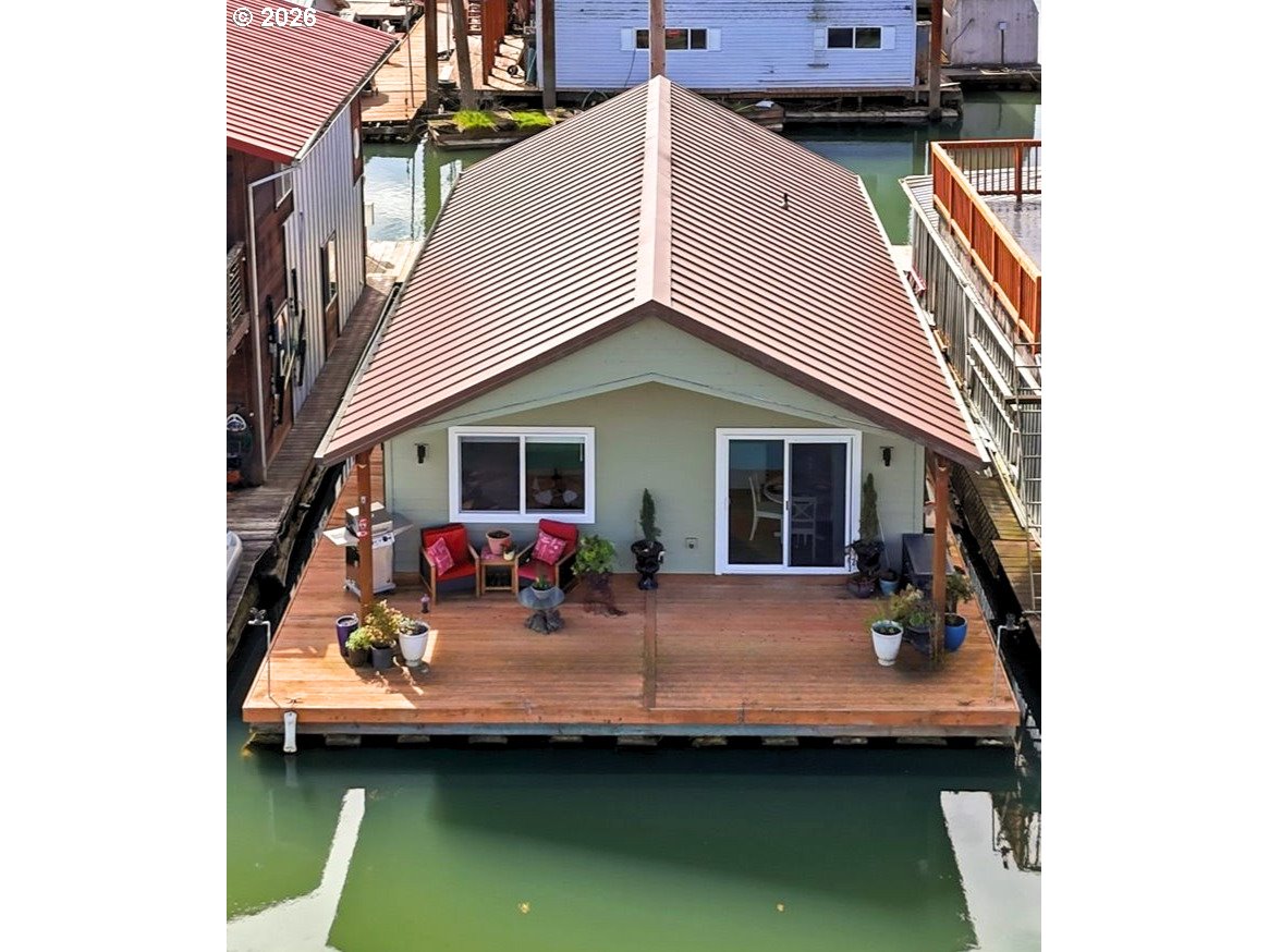 (503) 893-8874Rare slice of paradise! Enjoy your coveted spot on the open channel in Paradise Moorage. What does paradise mean to you? Water and mountain views plus ever-changing wildlife scenery outside your floor-to-ceiling windows? Boating, kayaking or paddle boarding anytime you want? Room to park your boat next to the swim float, plus extra space and ramp to pull in and dry dock your kayak, canoe, or paddle board on the side of the house. Or, is your version of paradise fishing for salmon, steelhead, walleye, bass, and sturgeon right off your back deck? Grab the binoculars, you are directly across from Sauvie Island, giving you the best birdwatching (think bald eagles, swans, sandhill cranes). How about a hot whirlpool bath overlooking the river? Or just enjoying the laid back vibe of living on water? Being at this floating home is like a vacation everyday with wonderful outdoor living spaces, including main floor deck with whirlpool tub, swim float, gated and fenced front courtyard, 2nd floor balcony with views of the mountains and 3rd floor crows nest, roof-top deck, with 360 degree views. This special house has two beds and two baths plus bonus living space in the detached structure, can be used for home office, bunk house, or extra storage. Rare gated and fenced front courtyard offers some privacy and a shady spot for coffee and breakfast in the morning. Recently updated kitchen has custom cabinets, newer stainless steel appliances and beautiful granite countertops. Energy efficient mini-split heating and cooling on both levels. Upstairs you can watch the sunrise over Mt Hood from your bed in the morning. There is a Jack and Jill bath (enter from either bedroom) with double sinks, granite and a newly refinished tub/shower combo. Downstairs is another full bath with stand up shower. Full size washer and dryer included. New custom Bali blinds can be pulled down for total privacy, but keep them up for rainbows and sunrises! This home is financeable, float rating 3.