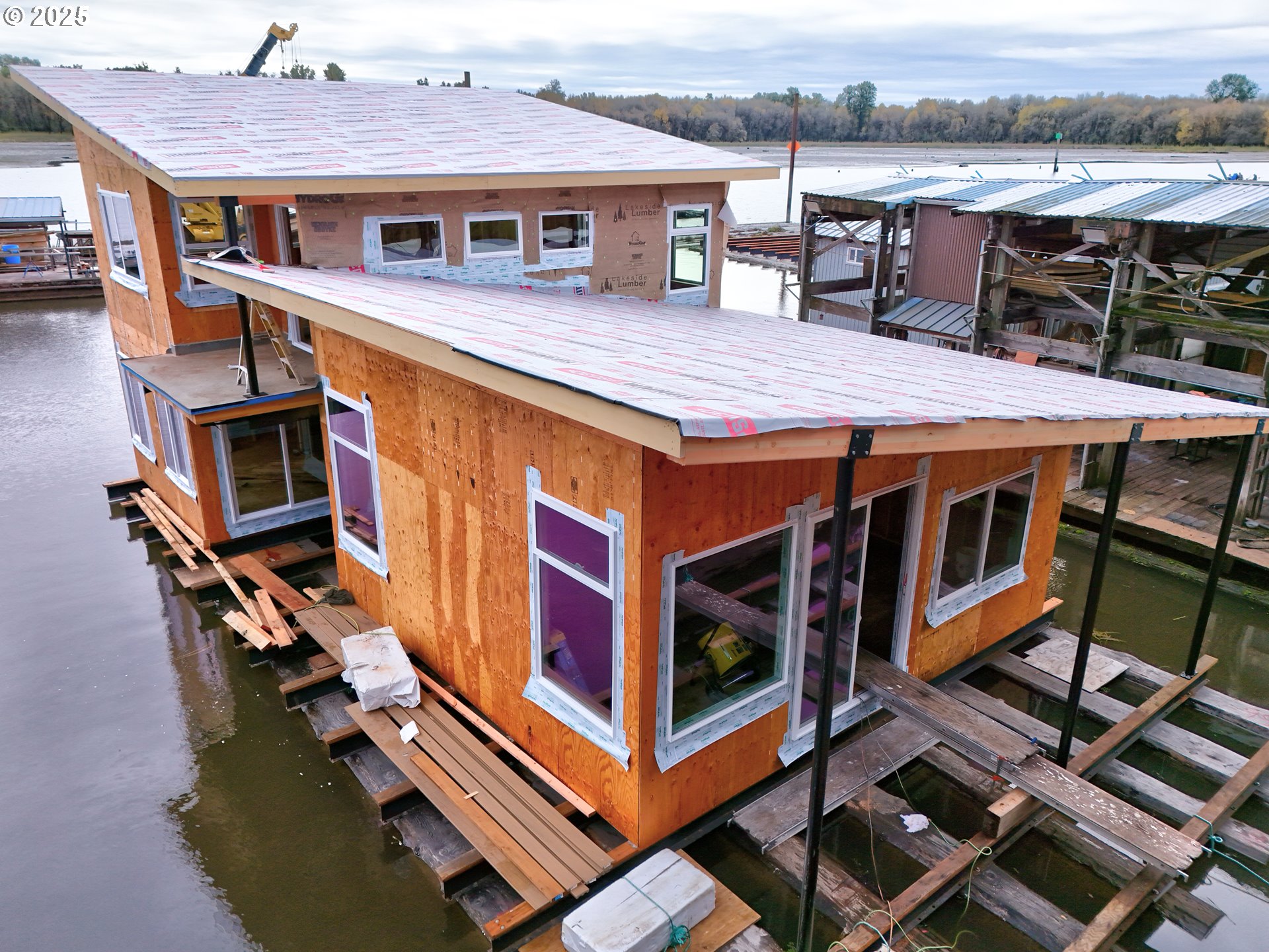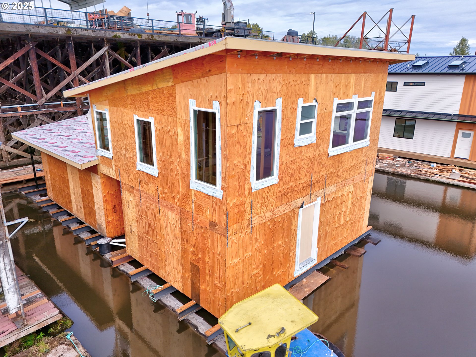 (503) 893-8874Brand-new floating home currently under construction by Even Construction, the premier floating home builder on the river. The shell is framed, roof dried in with a newly installed metal roof, windows are installed, and a new metal eyebrow awning has been added above the front door. Rough plumbing, electrical, and HVAC are all complete at Even Construction’s build site. Once complete, the home will be delivered and connected to the buyer’s slip of choice, provided the space can accommodate the 30' x 57' float. The float is built with brand-new slabbed logs and marine-grade, epoxy-coated steel stringers, achieving a top float rating of 5 — ensuring full financing eligibility and long-term durability. This home offers flexible moorage options: buyers may purchase a slip separately or rent one at another moorage (slip pricing not included; listing is for the home only). This thoughtfully designed layout features two bedrooms, two bathrooms, and modern, customizable finishes throughout. Designed to capture the essence of waterfront living, the home emphasizes natural light, open spaces, and a seamless connection to the river environment. With construction underway, now is the perfect time to reserve this home and personalize your finishes. Opportunities like this, new construction paired with the freedom to relocate to nearly any moorage, are exceptionally rare.