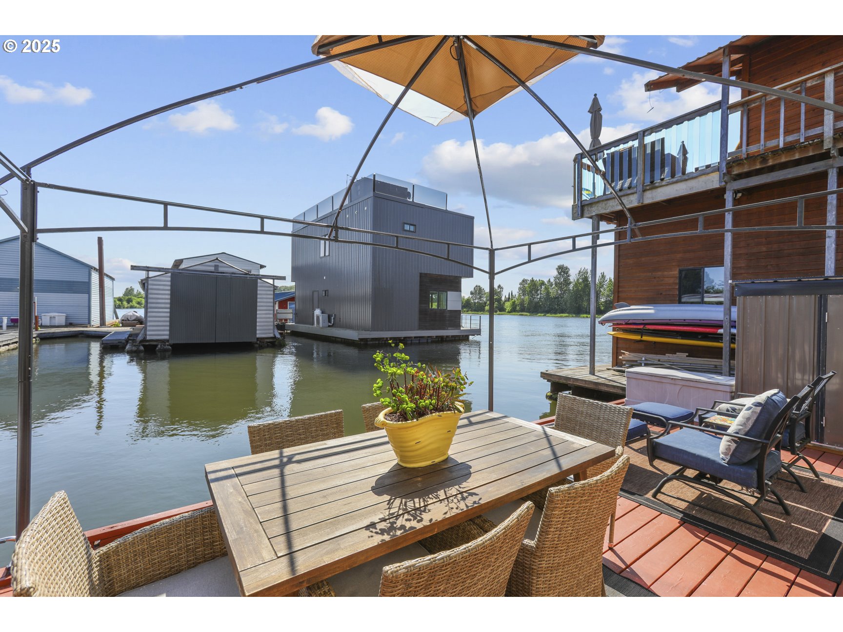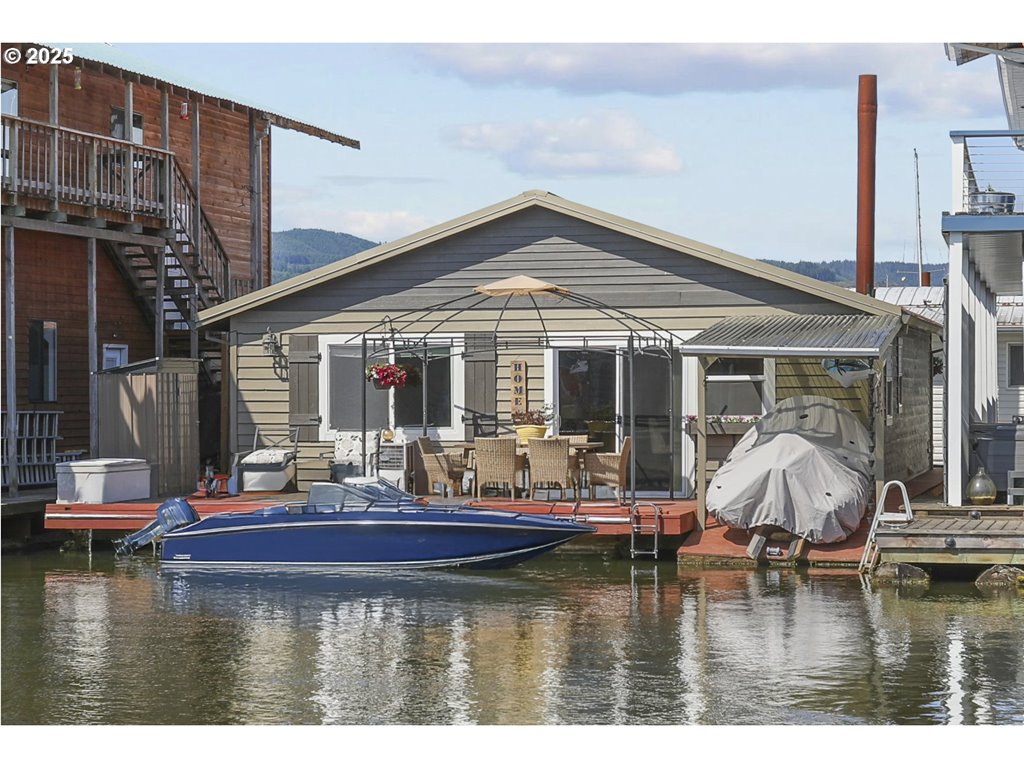 (503) 893-8874Fish on! This floating home is as classic, timeless, and quality built as it gets! Nearly new, it was built in 2006 by Derek Morrell. The house features a long lasting, easy care, metal standing seam roof and cedar siding with charming shutters and flower boxes. Entering the front door you are greeted with the expansive living room that is open to the kitchen. The vaulted ceilings really top off the space and fill it with sunlight. Entertain much? The open flow will have all your guests connected to the cook and the conversation. The kitchen table was a custom creation that will remain with the house, along with the custom chandelier that brings the nautical to the nice space. The primary bedroom is very spacious and easily accommodates a king size bed, nightstands and a few dressers. There is plenty of wardrobe space in the walk in closet. The primary ba. features a granite countertop and easy clean shower insert. Less time cleaning, more time playing on the river! The secondary bedroom is a peaceful place for your guests. The large nook would make a great spot for a home office or hobby corner. The full main bath is right around the corner for your guests & to serve the social spaces. The laundry room is a walk in space w/ work top, built ins & tool area. A great space to tinker! The real cherry on top of all of this is the outdoor space. There is a covered ramp for your skiff or Seadoo, a pully system for your kayaks, & outdoor storage galore, plus the outdoor plants have a drip system. YOU CAN MOOR YOUR BOAT at the end of your dock, within your slip space! This house is just right in size. Multnomah Channel Yacht Club has regular social gatherings such as Hot August Nights, St. Patricks weekend,& more, with live music, raffles, and fun. FULL TIME live aboard slip interest is available for this house. Ask your broker for details. 2 covered parking spaces included. Enjoy low monthly fees, low Columbia Co. taxes, low home maintenance, and a lot of fun on the river.