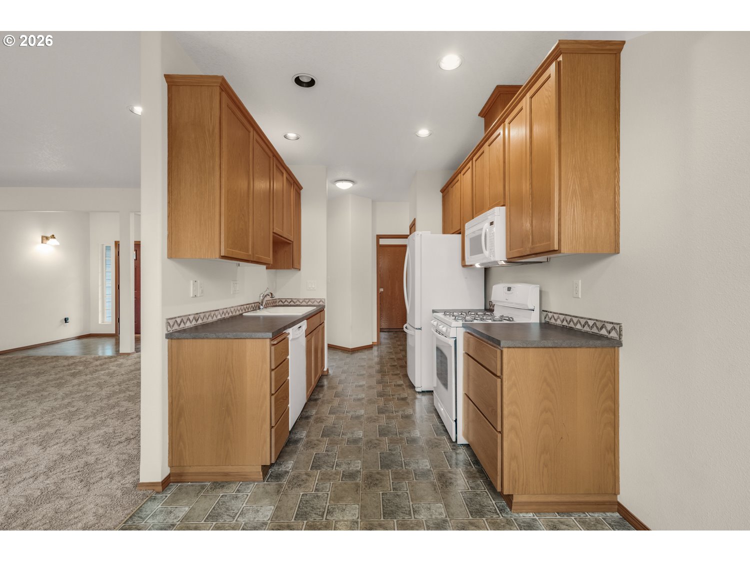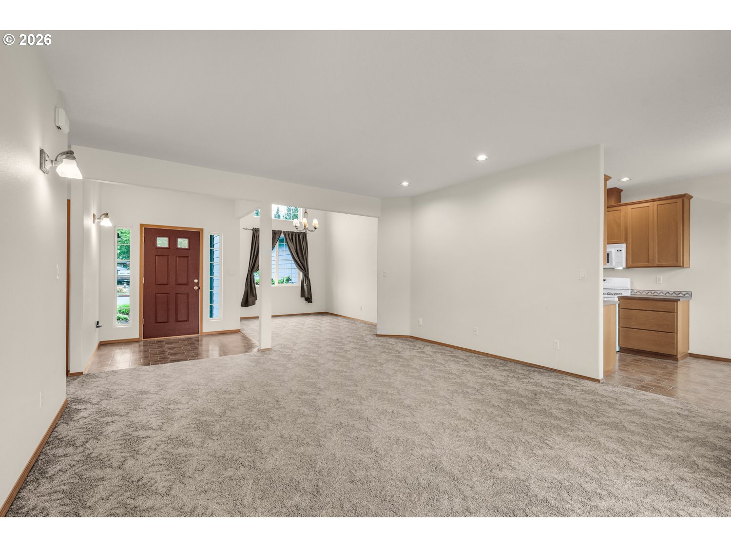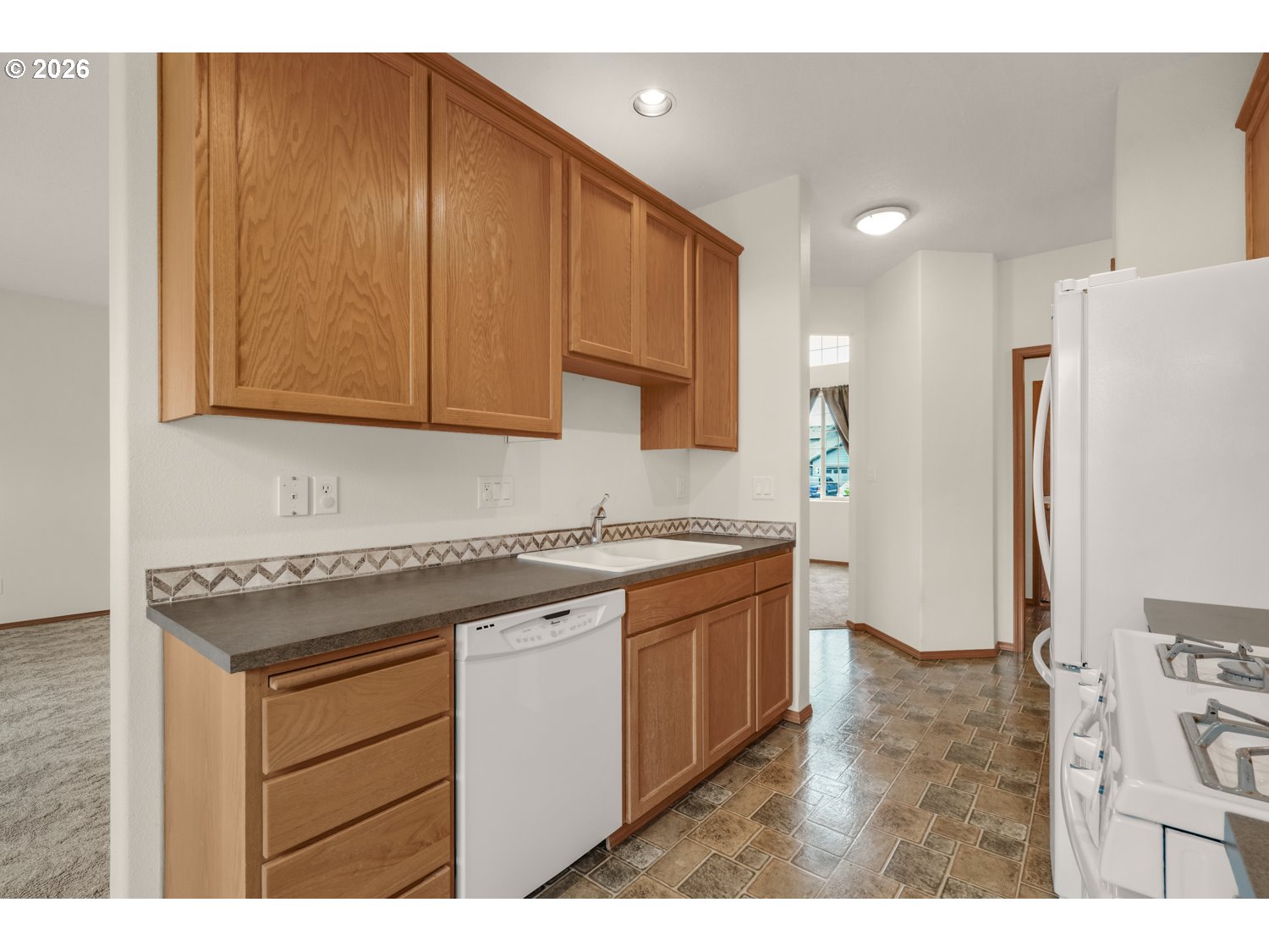 Welcome to 52234 SE Tyler St in Scappoose, a thoughtfully updated home that blends comfort, function, and easy living. This single-level layout offers everyday convenience with well-planned spaces and a natural flow that makes the home feel both open and practical. Inside, the kitchen stands out with custom cabinetry and built-in features designed for both efficiency and style. The adjacent breakfast nook is filled with natural light from a bright bay window, creating a warm and inviting spot to start your day. The living room opens directly to the patio through a sliding door, extending your living space outdoors for relaxing or entertaining. For more formal gatherings, the two-story vaulted dining room adds architectural interest and an airy sense of scale. Recent updates add both value and peace of mind, including a heat pump with A/C, resealed and freshly painted exterior walls, and a fully resodded front lawn. In-ground sprinklers serve both the front and back yards, making maintenance simple and keeping the landscape looking its best year-round. The setting is equally appealing. Located on a quiet dead-end street, the property benefits from minimal through traffic and limited foot traffic, offering a more private and calm environment. At the same time, multiple side and back road access points allow for convenient travel in and out of the area, helping you avoid heavier traffic as you reach city limits. This home brings together smart updates, comfortable one-level living, and a location that balances accessibility with a quieter neighborhood feel. The +55 mobile park neighborhood behind the home is quiet and friendly.