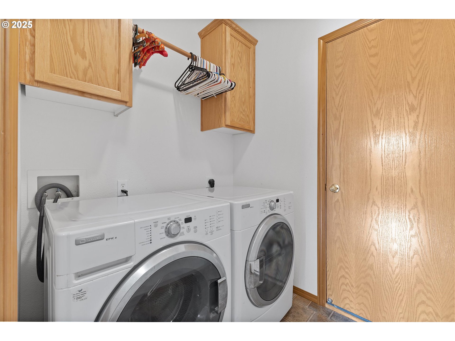 Awesome location in Scappoose, just a few blocks to the Z Crown Trail, and the Chapman trail that goes along the Columbia River, also a little over a mile to Chapmans Landing and the Columbia River, plus close to library, shopping and restaurants! Quiet dead end street! One level home has high ceilings, 2 story window in living room, and slider to fenced private patio and yard. House has been well taken care of, great condition, move in ready, with both a gas furnace as a back up and newer heat pump as main heating and cooling. Everything has new paint, inside and out, many new windows, all double paned. Kitchen is updated with gas range, and eating area with bay window looking out into back yard. Both bathrooms are updated. Master suite is at one end of the house, other 2 bedrooms are at the other end. Laundry room has cabinets and hanging area.