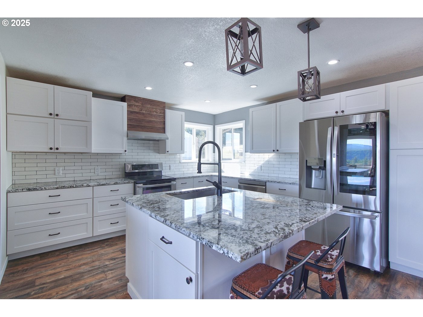 Peaceful, Private and Stunning views! This horse property has it all. 16.49 acres w/electric cross fencing. Huge 132x72 covered riding arena with LED lighting. 90x48 barn, 3-10x10 stalls & a huge birthing stall w/covered run, tack room, 2 hay storage areas, chicken coop, trailer storage. RV hook-up/parking. 48x48 shop w/4-12ft bay doors & welder plugged. Multiple horse shelters. Large, small animal shelter w/power/water. 5 different varieties of apple trees, 3 pear/1 Asian pear, pie cherry, Rainer cherry, 2 nectarine & 4 peach trees. Lavender & vegetable gardens. Woodshed. Dog shelter. New gated driveway, newly painted inside & outside home, freshly stained deck. This 4 bedroom, 3 bath, 2592 sqft home is move in ready! New luxury laminate wood flooring throughout, new French doors, Completely remodeled kitchen w/all NEW soft close cabinets, new granite, new trim, SS appliances including a new refrigerator, new hood vent & vent cover, new walk in pantry w/shelving, new GFI/plug-ins, new tile backsplash, new smart thermostat. Completely remodeled hall bathroom w/new tile floor, new vanity, new linen closet, new tub, new tile in shower, new shower fixtures, new lighting, new fan, new blue beetle shiplap, new water heater in 9/2025 in attached 2 car garage, newer furnace & heat pump in 10/2024, all new trim downstairs, new shower fixtures, heated floors in bathroom downstairs & in primary bathroom, all new lighting, plug-ins, light switches & fan downstairs. 2 pellet stoves, one on each floor. So many more details to this property/home. This is a must see!