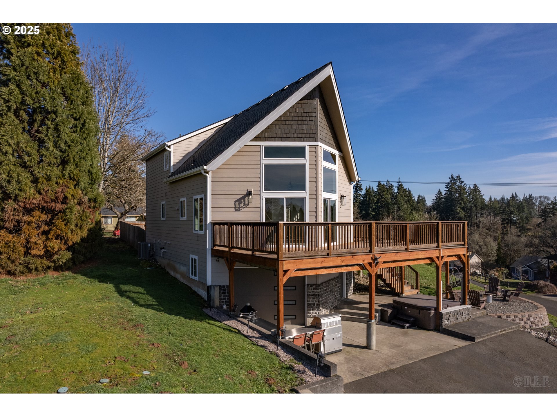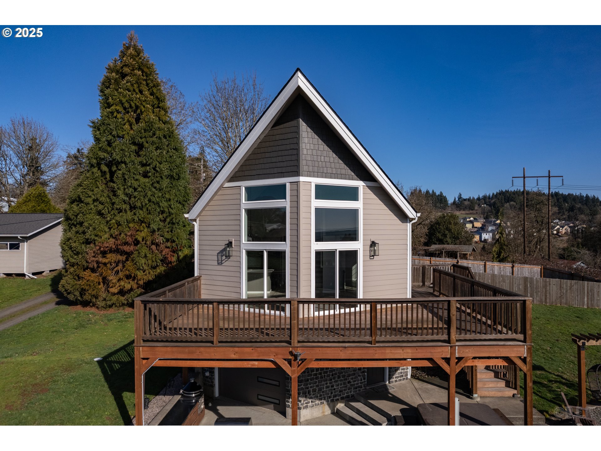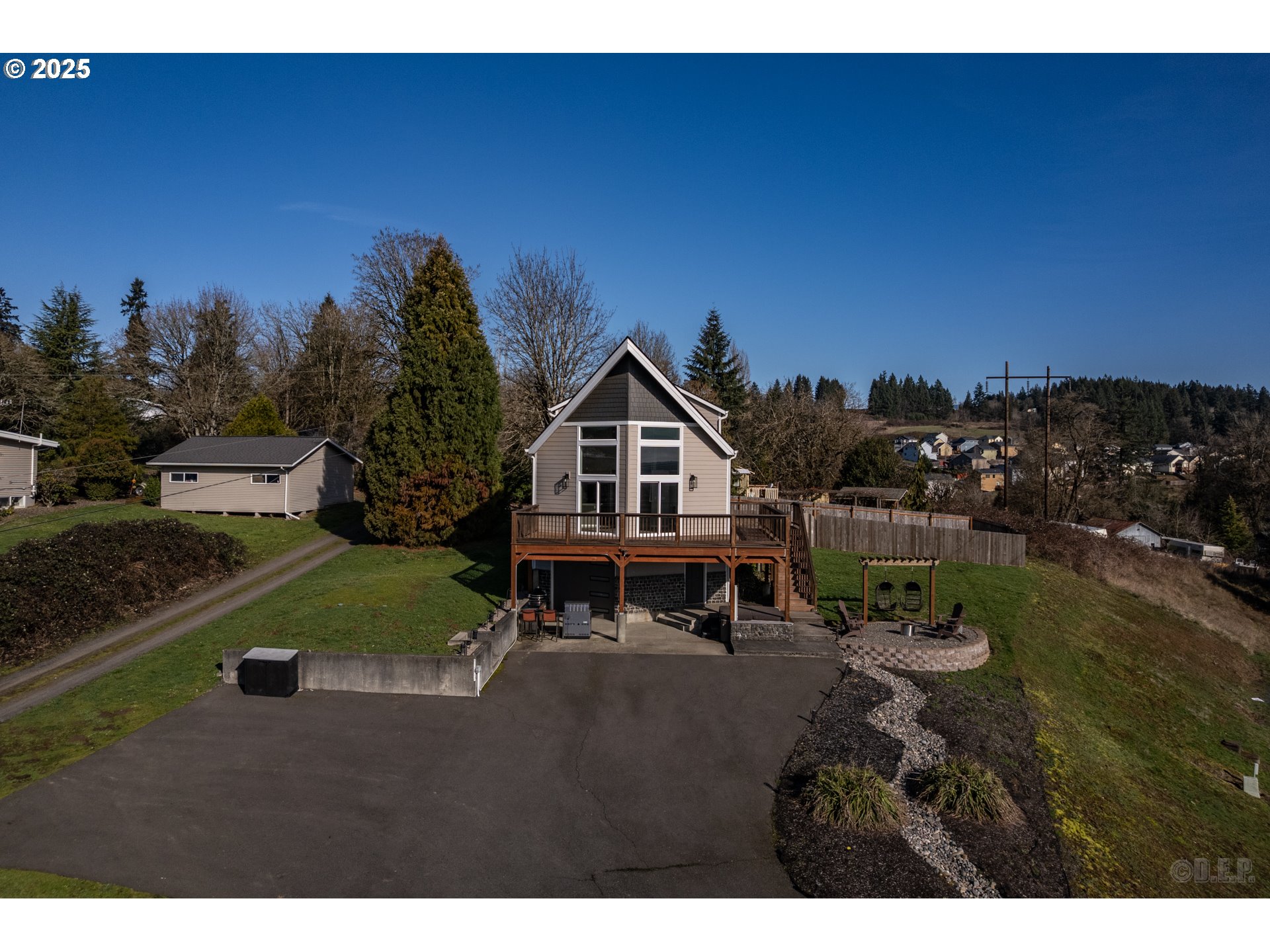 Discover the beautiful sunrise, sunset and mountain views from your own deck in this chalet style home. The great room offers large windows to bring all the natural light in and with the vaulted living room, open kitchen and dining room, you will not want to leave. Designed for family fun or entertainment with the outdoor kitchen and larger family/theater room. Primary suite is the entire upper level. Firepit, hot tub and swing chairs make summer days relaxing. Detached garage/shop plus room for RV, boat, trailer parking! Fully fenced yard tops off the outdoor space so you have room for kids and pets.
