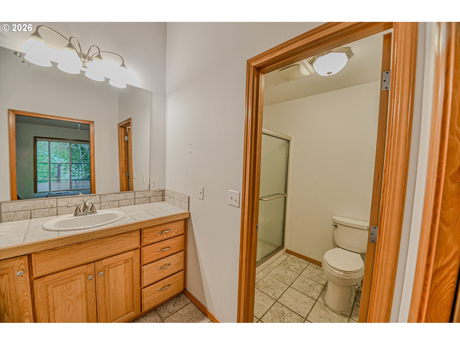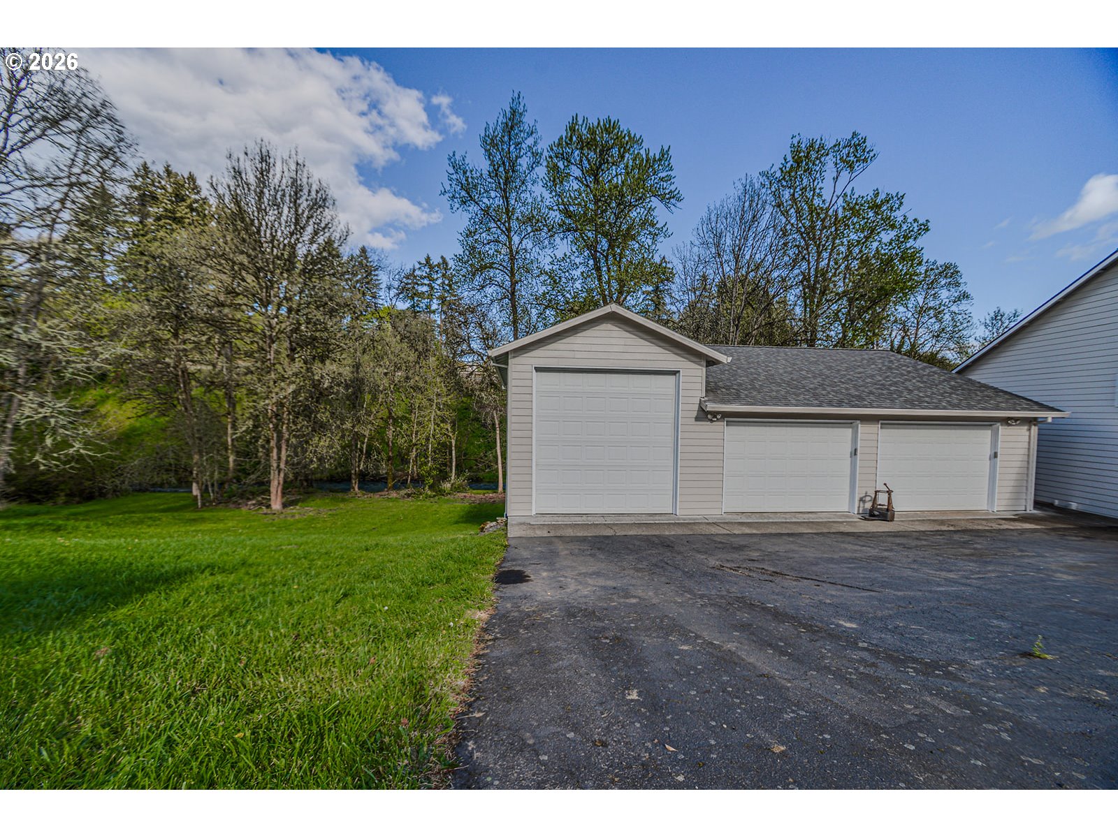 Step into this spacious, light-filled contemporary home on a generous .69-acre lot at the quiet end of Isabella Lane. Milton Creek gently winds through the edge of the property, and the trees and gentle slope give you wonderful privacy. This is the kind of peaceful setting where you’ll be spotting beavers, bald eagles, and deer right from your windows.Inside, the 3,046 sq ft layout is open and inviting. Vaulted ceilings in the foyer, dining, living areas, and bedrooms create an airy feel, while ceiling fans and beautiful wood accents add warmth and character. The gourmet kitchen features an eating bar and tasteful finishes, and the master suite on the main level opens directly to the expansive back deck through a slider.Step outside and you’ll love how naturally the home flows to the outdoors. The large decks are perfect for morning coffee or evening gatherings, and they lead right to the backyard, lawn, paved areas, and your oversized shop. Newer roofing, fresh exterior paint work, and updated decks mean you can move in and start enjoying it right away.The fully finished 3-bay shop is a standout—complete with bathroom, 220V power, and must-see to appreciate smart plug placement. It’s ideal for projects, equipment, or keeping your RV/boat safely plugged in and protected. Washer, dryer, fridge and custom window treatments are included, and the rooms feel generously sized with excellent storage and display areas.This unique property checks all the boxes for the right buyer: privacy, space to spread out, room for hobbies or toys, and that rare in-city large lot with creek frontage.