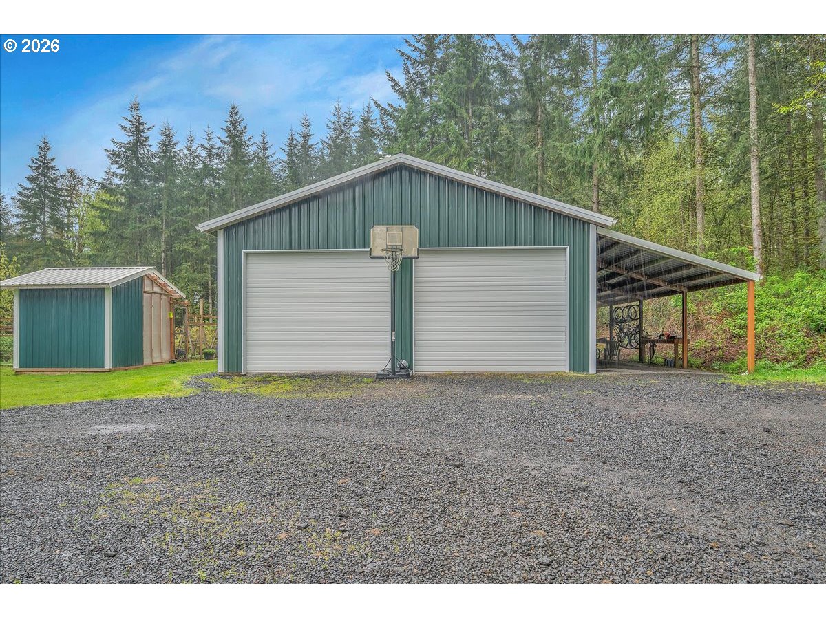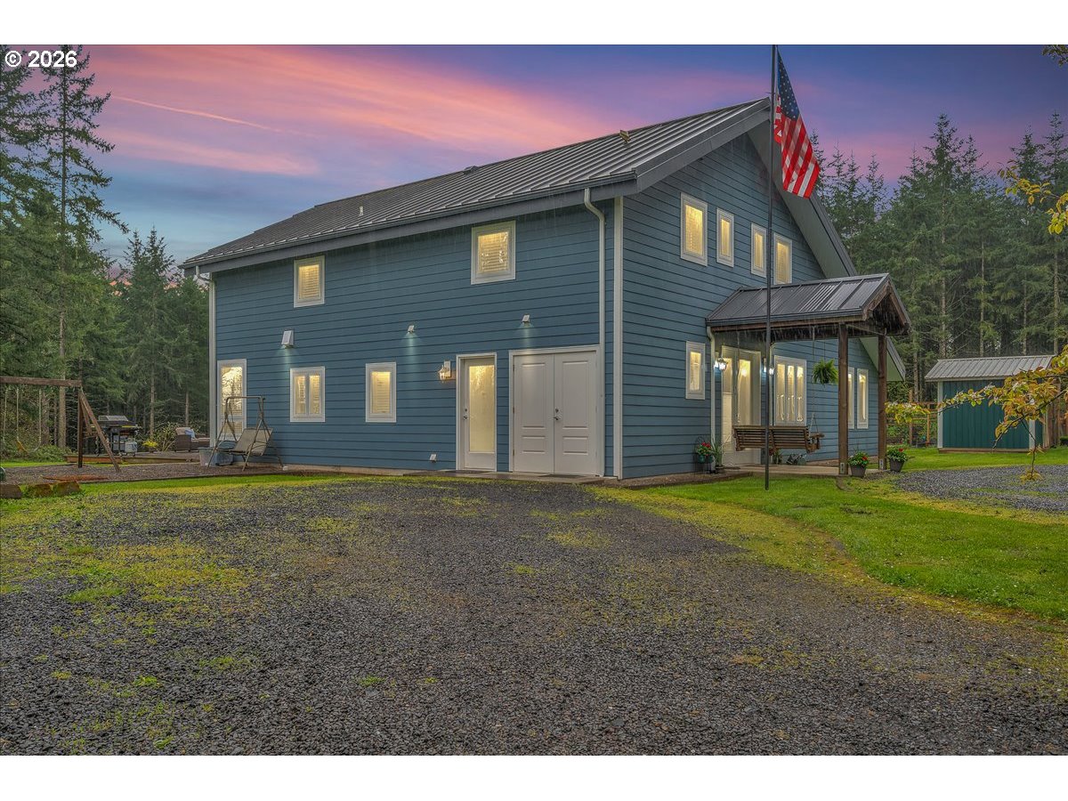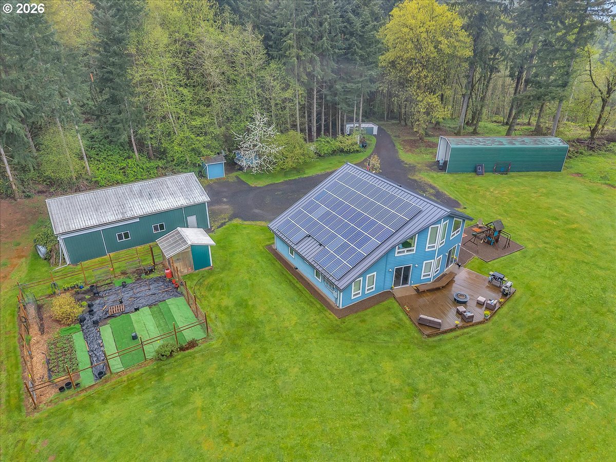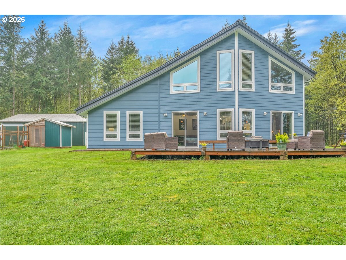 (503) 893-8874Thoughtfully designed for peace of mind, privacy, convenience, and comfort, this meticulously built, one of a kind home is 1 of only 8 properties that comprise the gated Homestead Forest Reserve community. Enjoy the natural surroundings from your 17 acre forested homestead while taking in exceptional views of Mt. St. Helens. 63 rooftop solar panels with a back up battery bank provide all the energy security one could want. And if the power goes out, no problem a 17kw generator powers the home. A double-layered “cold vented” standing seam metal roof and exterior construction consisting of ultra-high performance Structurally Insulated Panels "SIPS" give this home an incredible -1 HERS score. Geothermal heating keeps the concrete floors comfortable year-round and easy to clean. Struggle with allergies? The HEPA air filtration system is continually circulating fresh air throughout the home. Once inside you’ll find an open concept living room & kitchen featuring a gorgeous granite island with cherry cabinets & large picture windows looking out on views of the mountain, forest, and the orchard. Two large bedrooms with an adjoining bathroom are perfect for multi-generational living on the main. Upstairs you'll find a vaulted media room for movie night, a spacious third bedroom, and the Primary Suite. At the end of the day, retreat to your luxurious bedroom and bath - an escape all its own with 72 degree, heated tile floors, soaker tub, & intimate views of nature. The 30x48 shop has concrete floors and includes an EV charger. Park your RV or boat under the 18x60 covered storage. Get some exercise on the mile of manicured trails that start in your backyard. On the back deck, grill, dine and socialize in nature. Plant your roots in the extensive, fenced garden with custom built greenhouse. If you’re seeking next level craftsmanship, sustainability, and a connection to nature combined with modern conveniences … you have found it!