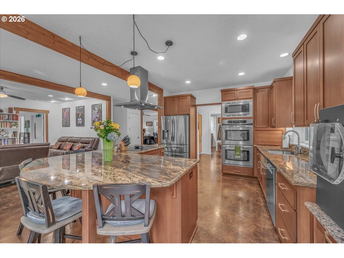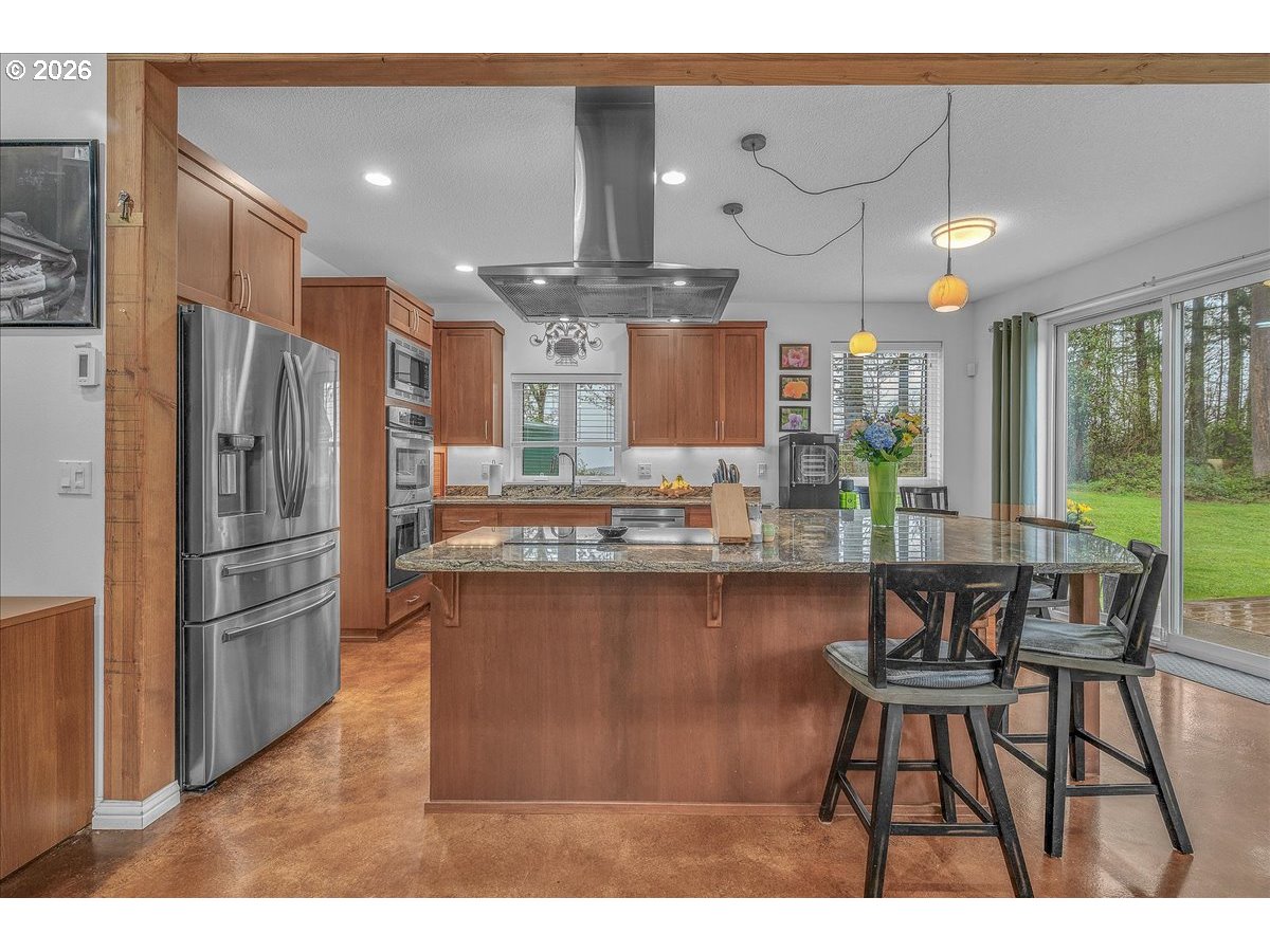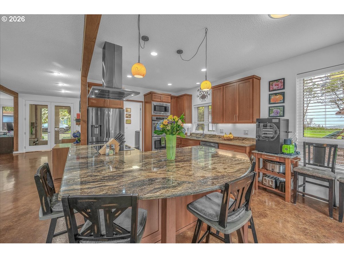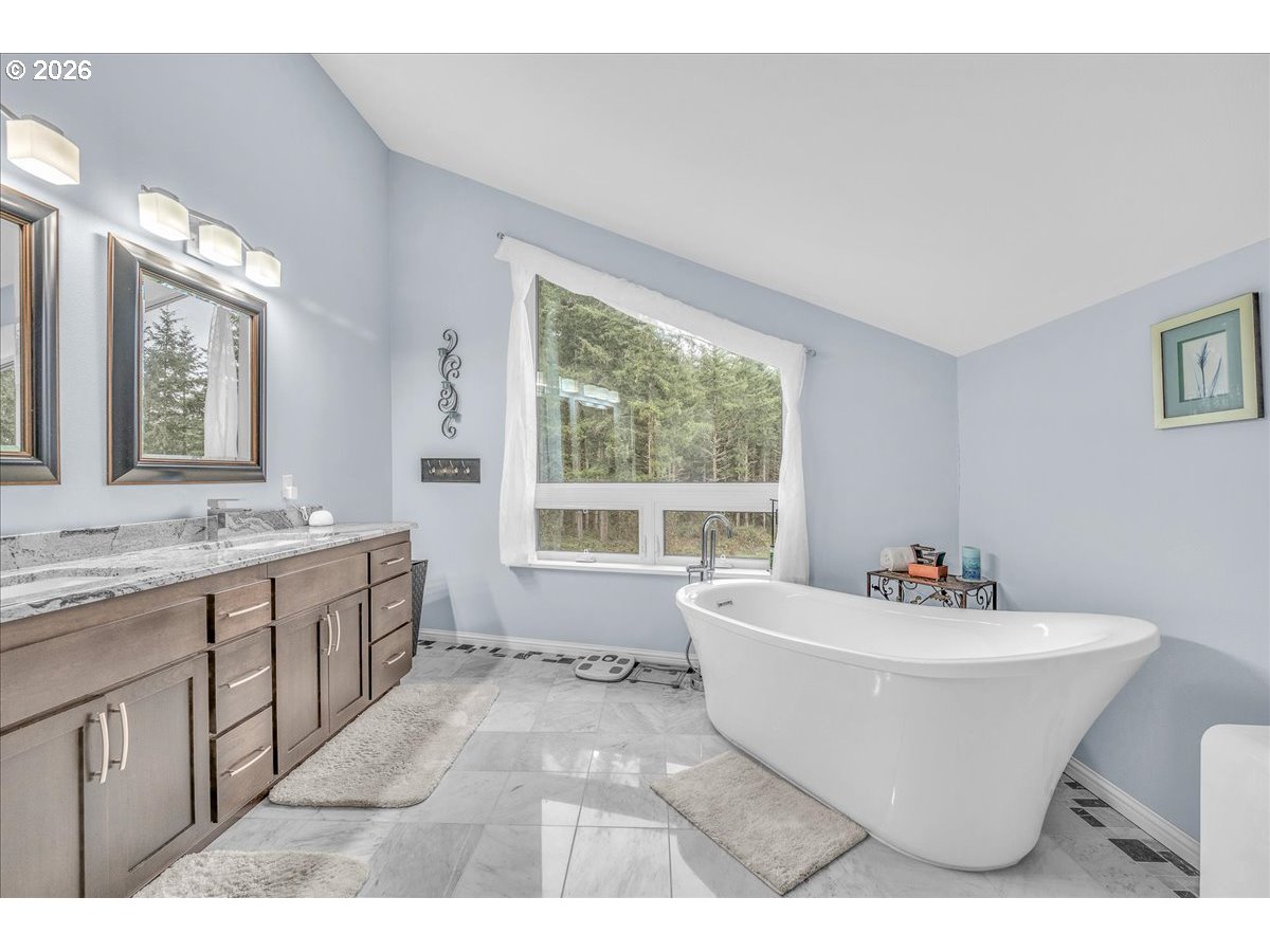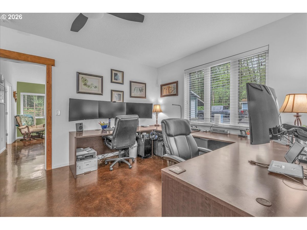 (503) 893-8874Thoughtfully designed for peace of mind, privacy, convenience, and comfort, this meticulously built, one of a kind home is 1 of only 8 properties that comprise the gated Homestead Forest Reserve community. Enjoy the natural surroundings from your 17 acre forested homestead while taking in exceptional views of Mt. St. Helens. 63 rooftop solar panels with a back up battery bank provide all the energy security one could want. And if the power goes out, no problem a 17kw generator powers the home. A double-layered “cold vented” standing seam metal roof and exterior construction consisting of ultra-high performance Structurally Insulated Panels "SIPS" give this home an incredible -1 HERS score. Geothermal heating keeps the concrete floors comfortable year-round and easy to clean. Struggle with allergies? The HEPA air filtration system is continually circulating fresh air throughout the home. Once inside you’ll find an open concept living room & kitchen featuring a gorgeous granite island with cherry cabinets & large picture windows looking out on views of the mountain, forest, and the orchard. Two large bedrooms with an adjoining bathroom are perfect for multi-generational living on the main. Upstairs you'll find a vaulted media room for movie night, a spacious third bedroom, and the Primary Suite. At the end of the day, retreat to your luxurious bedroom and bath - an escape all its own with 72 degree, heated tile floors, soaker tub, & intimate views of nature. The 30x48 shop has concrete floors and includes an EV charger. Park your RV or boat under the 18x60 covered storage. Get some exercise on the mile of manicured trails that start in your backyard. On the back deck, grill, dine and socialize in nature. Plant your roots in the extensive, fenced garden with custom built greenhouse. If you’re seeking next level craftsmanship, sustainability, and a connection to nature combined with modern conveniences … you have found it!