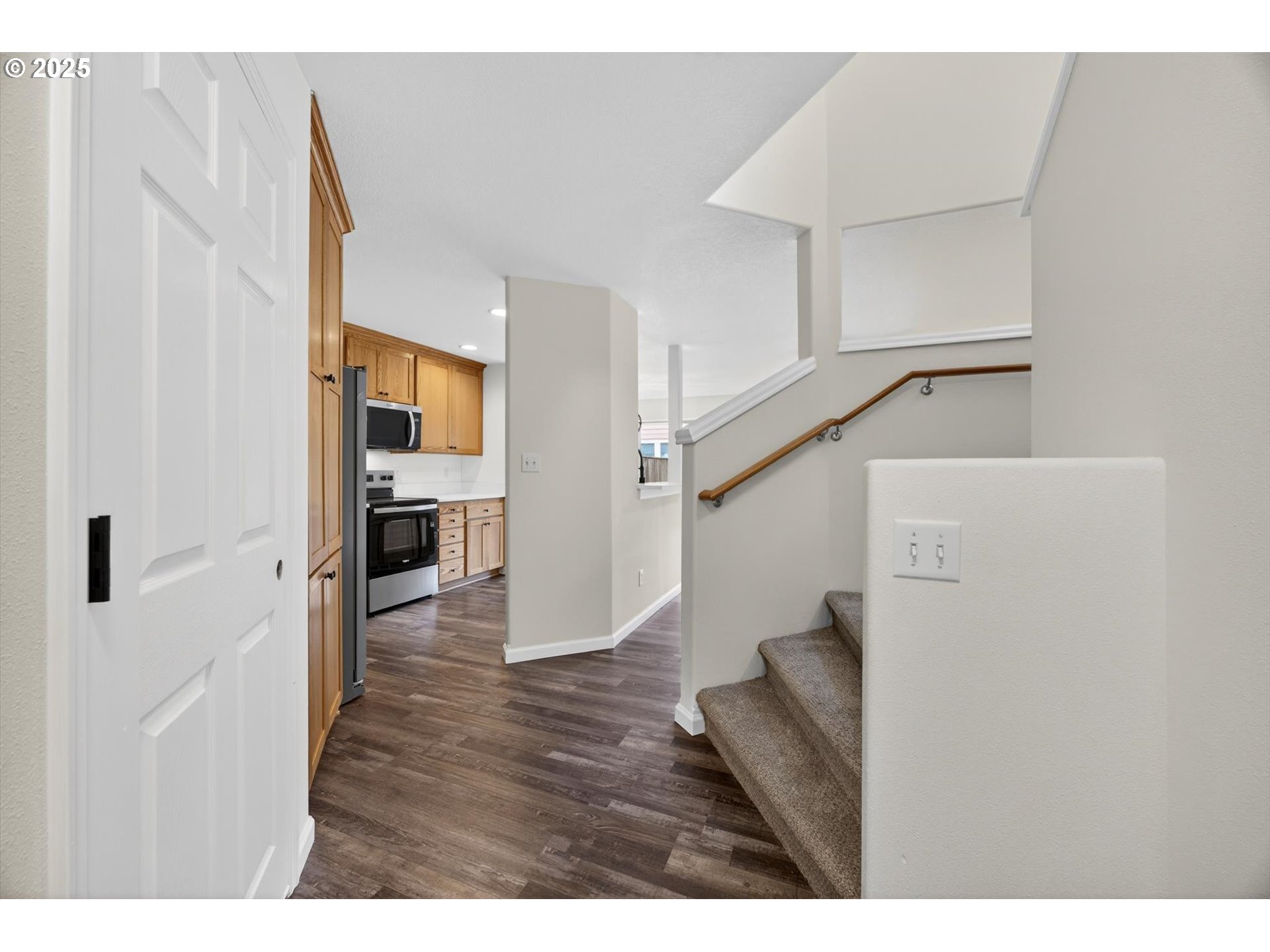 (503) 893-8874Completely remodeled 3-bedroom, 2.5-bath townhome in Rainier, Oregon, offering modern finishes, walkable amenities, and true move-in-ready convenience. This updated Rainier townhome features an open main-level layout with living, dining, and kitchen spaces, plus a convenient half bath. The main floor showcases brand-new luxury vinyl plank flooring and a fully refreshed kitchen with all brand-new appliances and new quartz countertops. The entire interior has been freshly painted, including all trim and doors, creating a bright, cohesive look. All hardware and lighting has been replaced with sleek black finishes for a clean, contemporary aesthetic. Upstairs includes all three bedrooms for comfortable daily living. The primary suite features an ensuite bathroom with a brand-new shower and a walk-in closet. A second bedroom also offers a walk-in closet, while the third includes a standard closet. New carpet begins at the stairs and continues through the upstairs hallway and bedrooms. Both full bathrooms feature matching LVP flooring and brand-new showers for a consistent, modern design. The laundry area has been updated with new flooring, includes overhead cabinetry, and offers washer/dryer hookups ready to go. Major system updates include a fully serviced and repaired furnace and a new thermostat for comfort and efficiency. The attached main-level garage has been freshly painted and includes a new garage door opener motor providing convenient opener access. The exterior has also been freshly painted, with all window trim replaced, enhancing curb appeal and durability. A large back patio off the living room creates an ideal space for outdoor entertaining. Located within walking distance to Rainier Riverfront Park and the Rainier Boat Launch on the Columbia River, this home offers easy access to waterfront recreation, boating, and small-town amenities. A truly turnkey townhome in Rainier, OR.