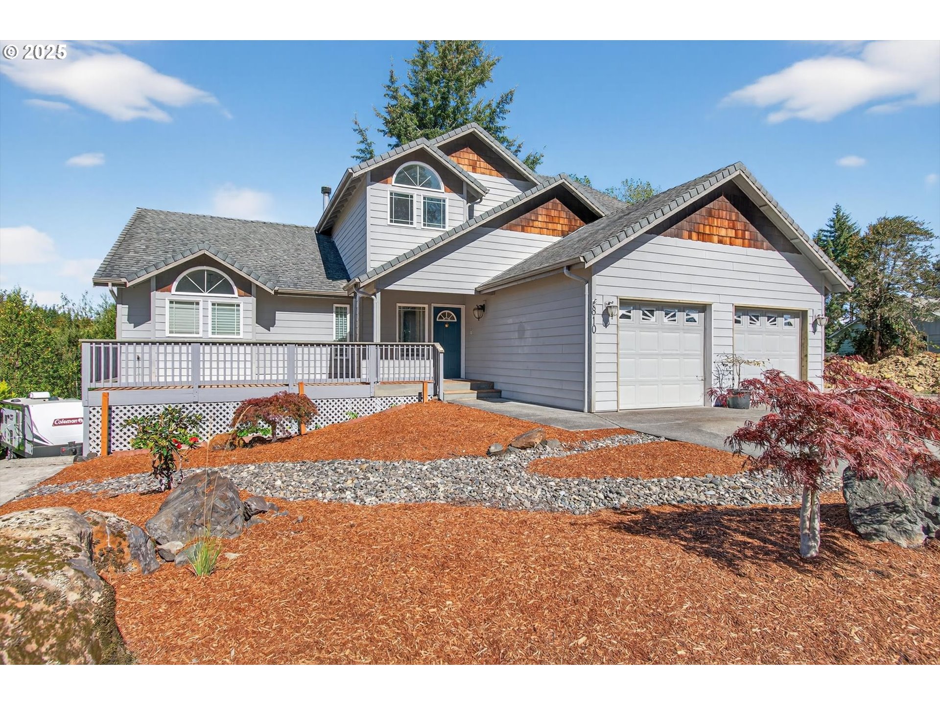 Spyglass Ridge in Clatskanie! This 3-bed, 2.5-bath home offers cathedral ceilings, an open floor plan, and huge windows that flood the space with natural light. The main-level primary suite and upstairs Jack & Jill bathroom make living easy, while granite counters, a cozy fireplace, and covered outdoor spaces add style and comfort. Enjoy RV parking with hookup, a spacious 2-car garage, and fiber-optic internet for fast connectivity. Set on a gently sloping lot with trees for privacy, this home blends small-town charm with modern convenience.
