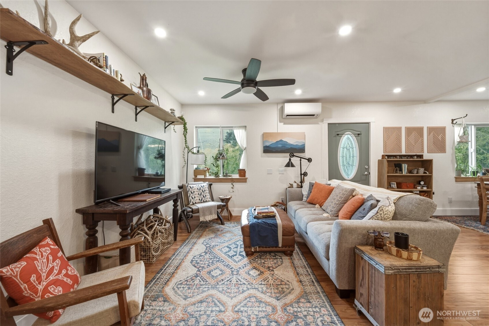 A rare opportunity to own a property that truly has it all—32 acres of privacy, versatility, and natural beauty. This exceptional acreage features a blend of wooded areas, fenced pasture, level ground, rolling slopes, and the seasonal Patit Creek meandering through the lower portion of the property. Ideal for horses or hobby farming, improvements include a horse barn, loafing shed, hay field, and established fenced pastures. The interior of this charming one-bedroom home has been tastefully updated and offers comfortable living, and also features an attached storage room, covered patio, and an attached two-stall carport. Year-round access is via a county-maintained, paved road. Set in a picturesque location with plenty of space and potential, this property also offers several potential building sites for a larger primary residence, if desired. This is a truly unique combination of lifestyle, function, and opportunity!