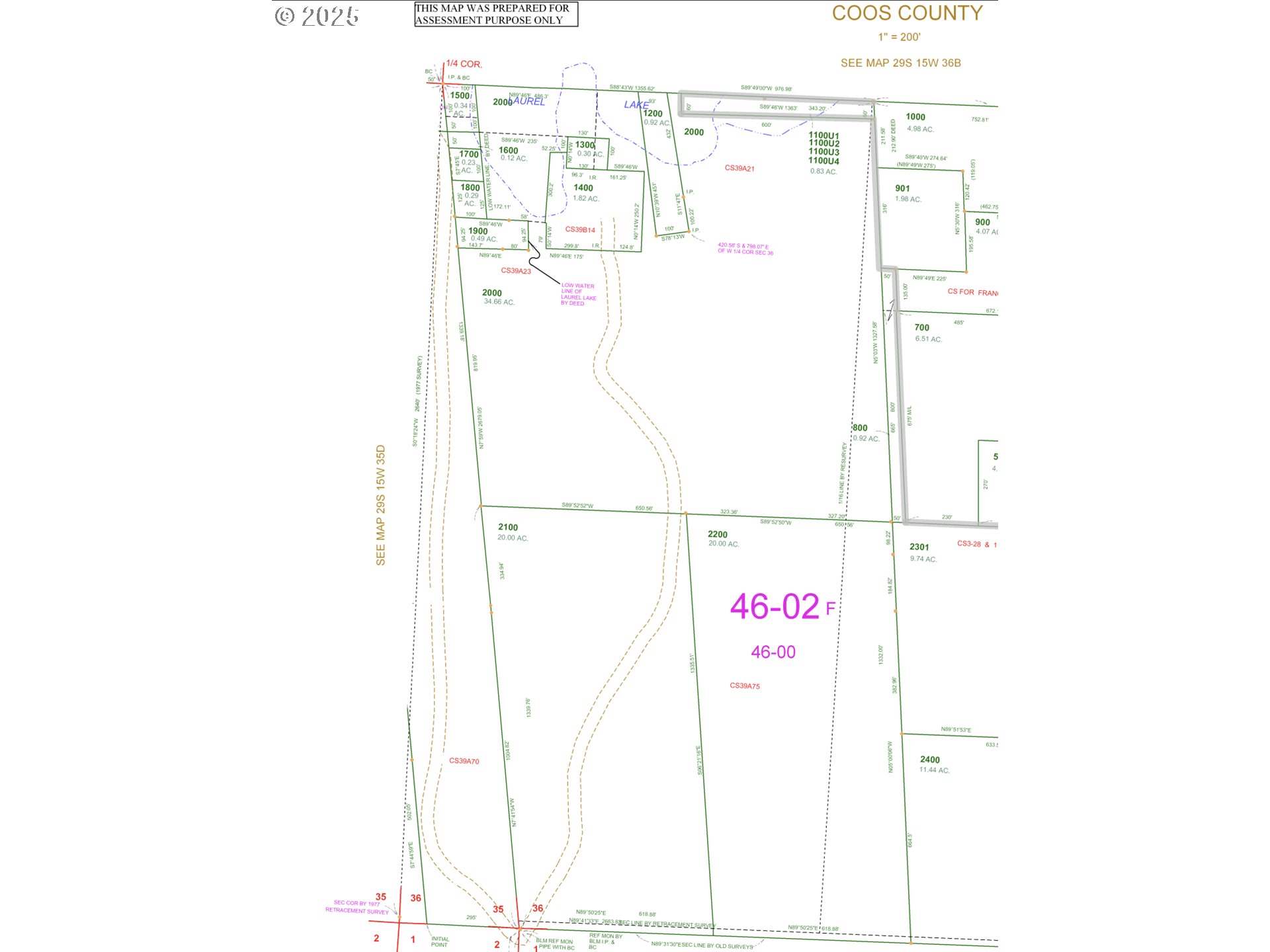 LAKE ACCESS DEVELOPMENT POSSIBILITY! 3 tax lots totalling over 55 acres of timberland on Laurel Lake south of Bandon. 34.66 acre lot and 0.92 acre lot zoned RR-5 possibly allowing 5 acre parcels, and 20 acres zoned Forest with potential for an additional home site with conditional land use permit. With the potential to log the timber and subdivide with shared lake access and boat launch makes this a developers dream. Or just build your dream lake house on this large piece amongst the trees. Just 1 mile from Fourmile Creek Trailhead and New River access to kayak along a beachside river and 3.5 miles to Bandon Crossings Golf Course! Buyer to do all due diligence in regards to permits and land use. SHOWN BY APPOINTMENT ONLY, LOCKED GATE. PLEASE DO NOT ATTEMPT TO GO ON PROPERTY WITHOUT AN AGENT.