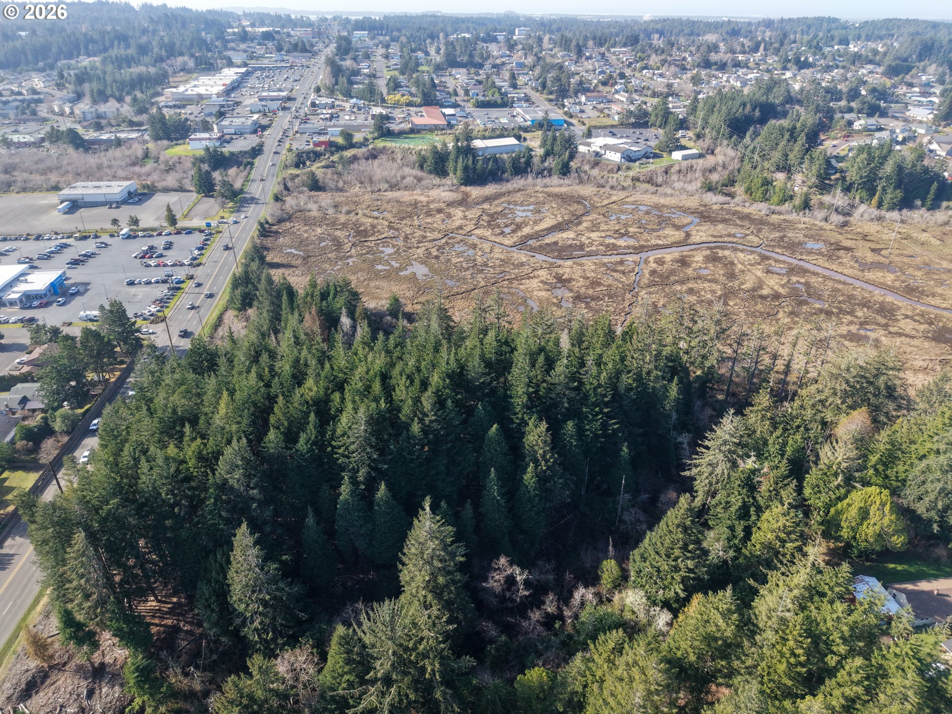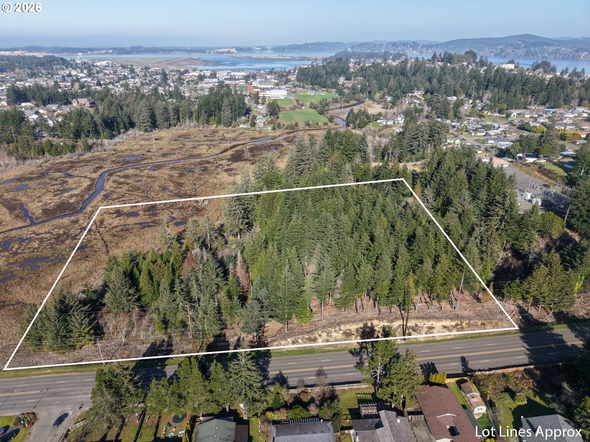 Exceptional development opportunity on the Southern Oregon Coast in North Bend. This 8+ acre parcel features gently sloping topography with multiple level areas ideally suited for residential construction and efficient site planning. The property offers easy access to all major utilities located at the street, making it a cost-effective and practical choice for builders, investors, or developers seeking a ready-to-improve site. Favorable zoning allows for a variety of potential uses, including single-family, multi-family, or planned residential development (buyer to verify with the City of North Bend). The site benefits from excellent ingress and egress directly off a major arterial roadway, providing convenient access while maintaining a desirable residential setting. Surrounded by well-established, higher-end neighborhoods, quality schools, and nearby amenities, this location supports strong long-term value and market appeal. The land has been brushed and cleared, with visible lot lines and marked corners, offering a clear vision for development and immediate usability. Additionally, the property is located within an Opportunity Zone presenting potential tax advantages for qualifying investors. Large, in-city parcels with this level of infrastructure, favorable zoning, and development-ready characteristics rarely come to market in North Bend, making this a time-sensitive opportunity for developers and investors seeking scale, location, and long-term upside on the Southern Oregon Coast.