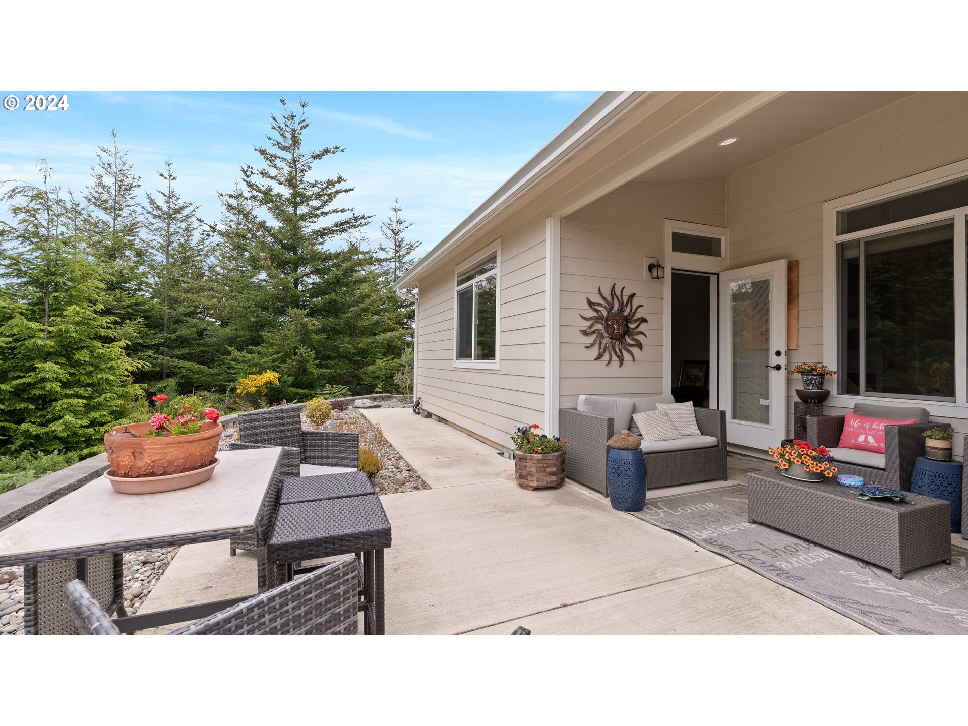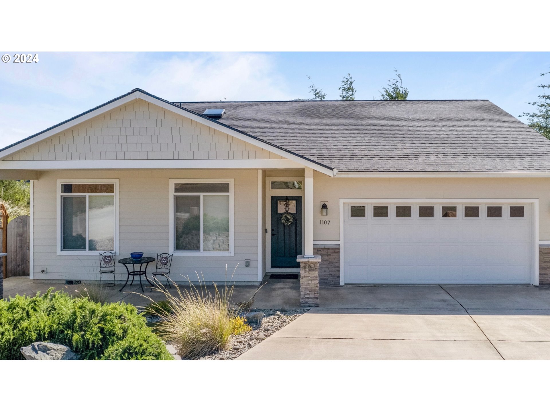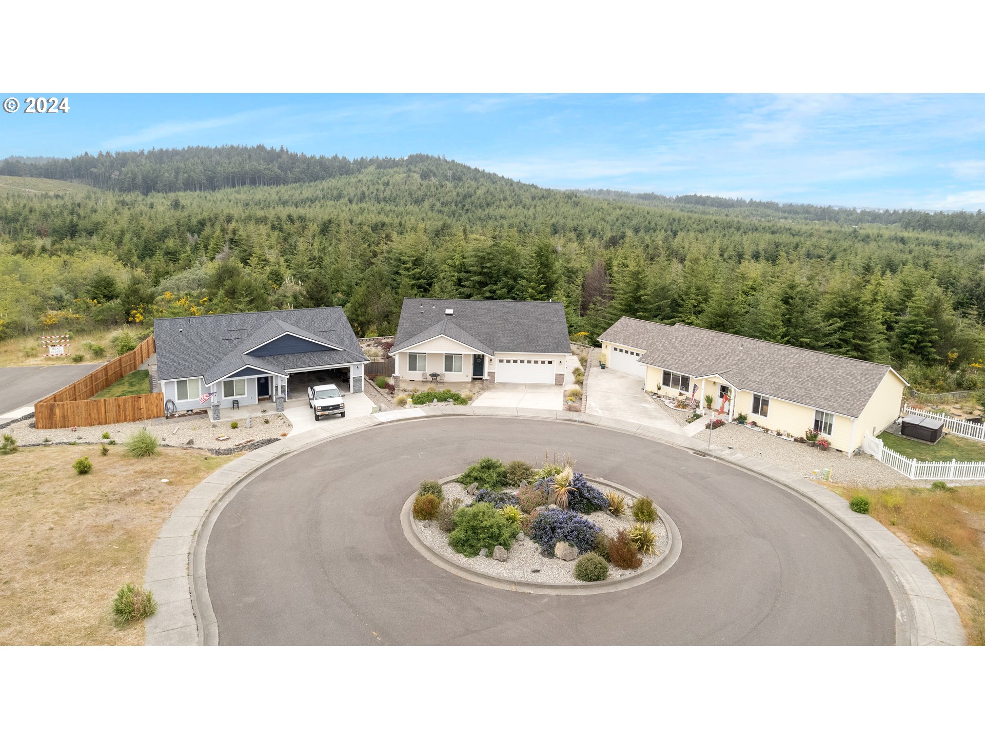 This home has gone pending 3 times, to the SAME buyers, and was terminated all three times due to buyers. No fault of seller. Stunning viewscape and tranquil forest setting! Quiet cul-de-sac location in sought-after, pride-of-ownership neighborhood. Single story living, 5 years' new, 3 bed, 2 bath, covered front and back porches, entertainers' dream kitchen with granite countertops and Kitchen-Aid appliances. 9 foot ceilings, transom windows throughout. Gas fireplace accents the grand vaulted Great Room. Wood floors, linen tile in bathrooms, dual blinds, on-demand tankless water heater, inside laundry, 2-car garage, heat pump, A/C, decorator ceiling fans. Outdoor oasis complete with raised garden beds, established landscape and patio, gas barbeque hook-ups, hot tub ready, and outdoor gas fireplace. The complete package! Minutes to local b