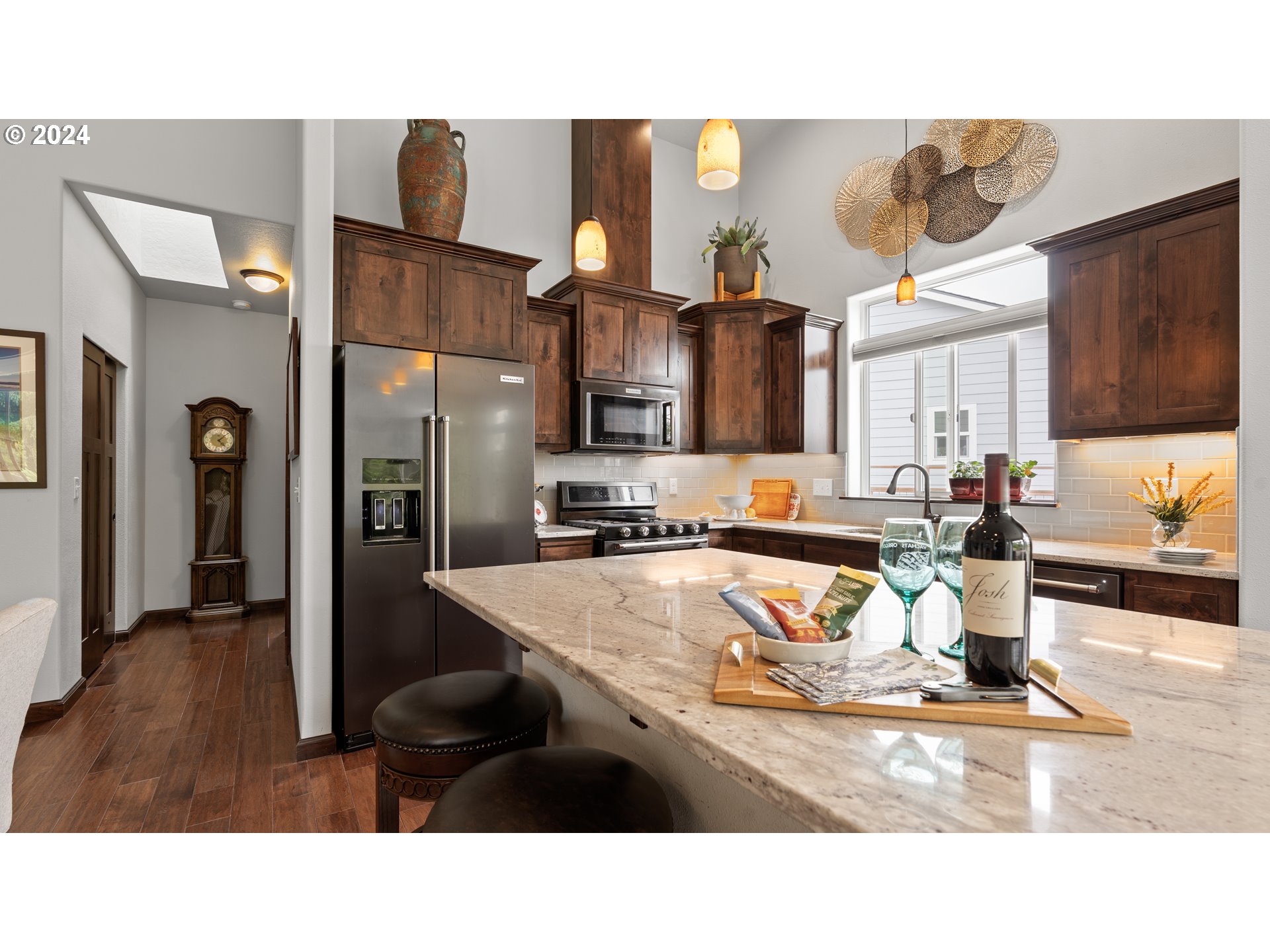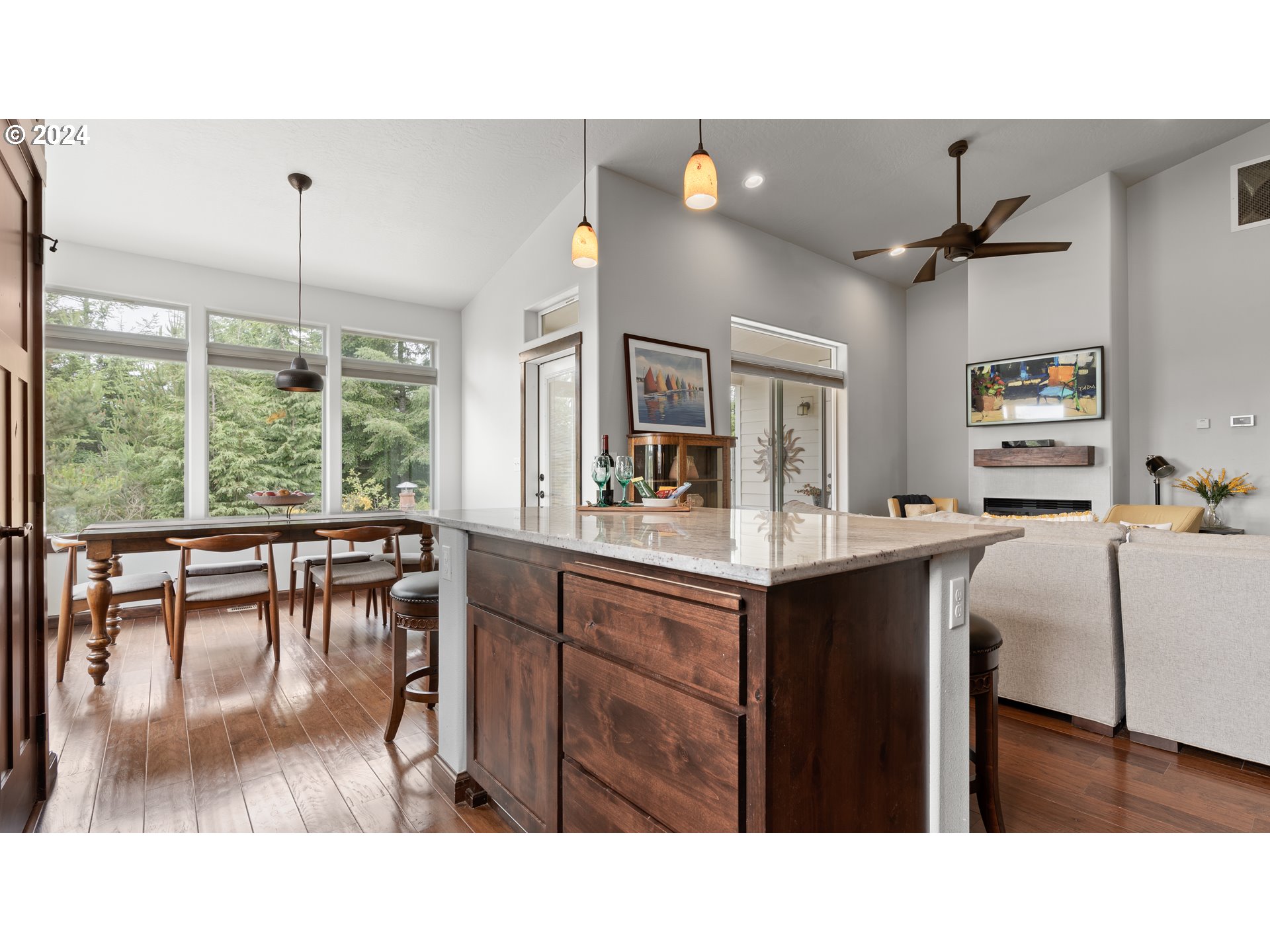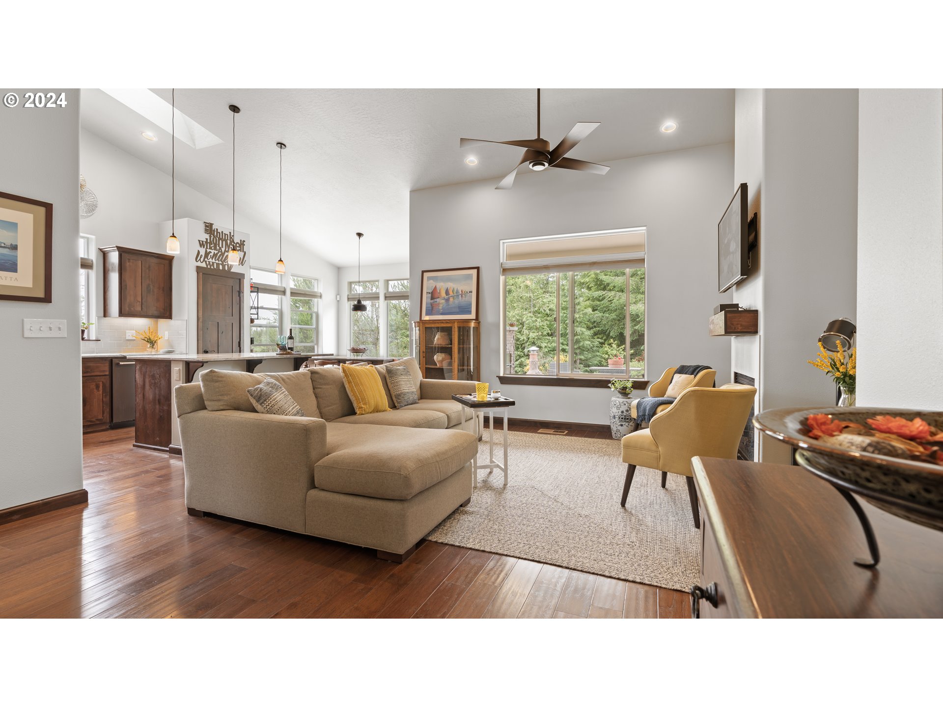 This home has gone pending 3 times, to the SAME buyers, and was terminated all three times due to buyers. No fault of seller. Stunning viewscape and tranquil forest setting! Quiet cul-de-sac location in sought-after, pride-of-ownership neighborhood. Single story living, 5 years' new, 3 bed, 2 bath, covered front and back porches, entertainers' dream kitchen with granite countertops and Kitchen-Aid appliances. 9 foot ceilings, transom windows throughout. Gas fireplace accents the grand vaulted Great Room. Wood floors, linen tile in bathrooms, dual blinds, on-demand tankless water heater, inside laundry, 2-car garage, heat pump, A/C, decorator ceiling fans. Outdoor oasis complete with raised garden beds, established landscape and patio, gas barbeque hook-ups, hot tub ready, and outdoor gas fireplace. The complete package! Minutes to local b
