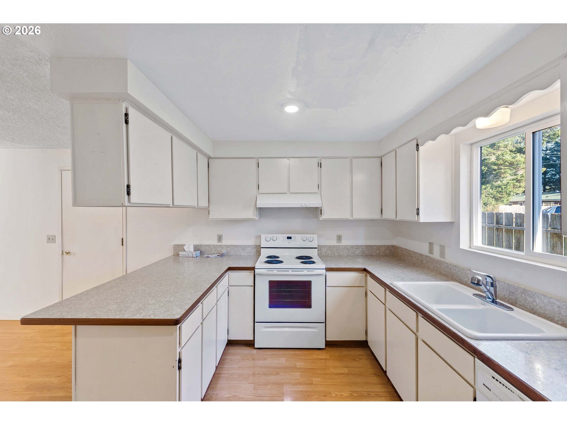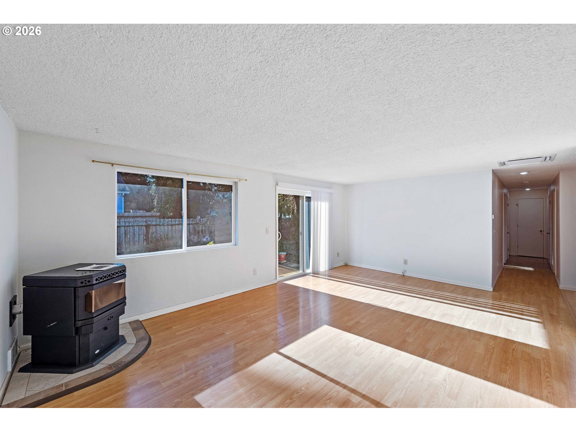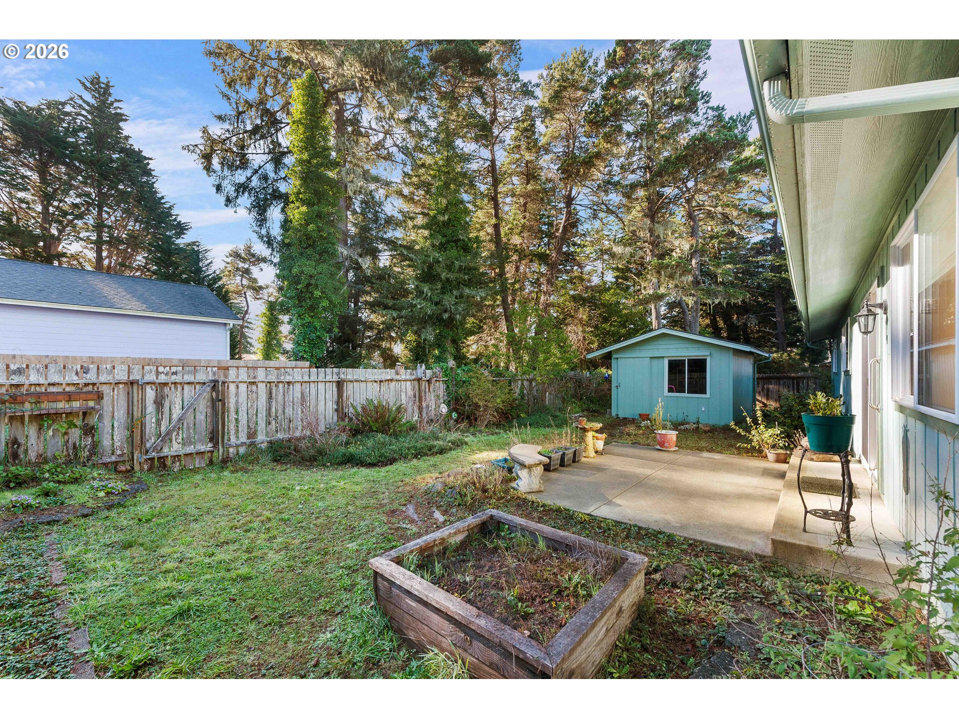 Well-cared-for single-level home in Bandon, Oregon with 3 bedrooms and 1.5 baths—a sweet, inviting place that’s been maintained over the years. Cozy newer pellet stove plus a very nice Daikin in-ceiling heat pump (heat/AC) (with a dehumidifying feature) and zonal wall heaters. Laminate wood flooring through much of the home, with carpet in the primary bedroom and vinyl flooring in the remodeled full bath.The main living areas feel spacious, including the living room, dining room, and kitchen. The layout is very functional as-is, with plenty of room to enjoy right away, and there’s also major potential if someone wants to update or reconfigure the kitchen/dining setup. Step out from the living room slider to a nice concrete patio—simple, usable outdoor space. Appliances stay—refrigerator, electric range, and dishwasher—along with the washer and dryer. The full bath has been remodeled, there are multiple linen closets, and the primary bedroom has a half bath.You’ll appreciate the finished two-car garage with a utility sink and laundry setup. The backyard has a large garden shed and a raised garden bed—it used to be a beautiful garden with roses and flowers and just needs a little TLC to bring it back. All city utilities, and you’re close to grocery stores and around-town amenities in Bandon. Built in 1974 and maintained over the years. Sold as-is.