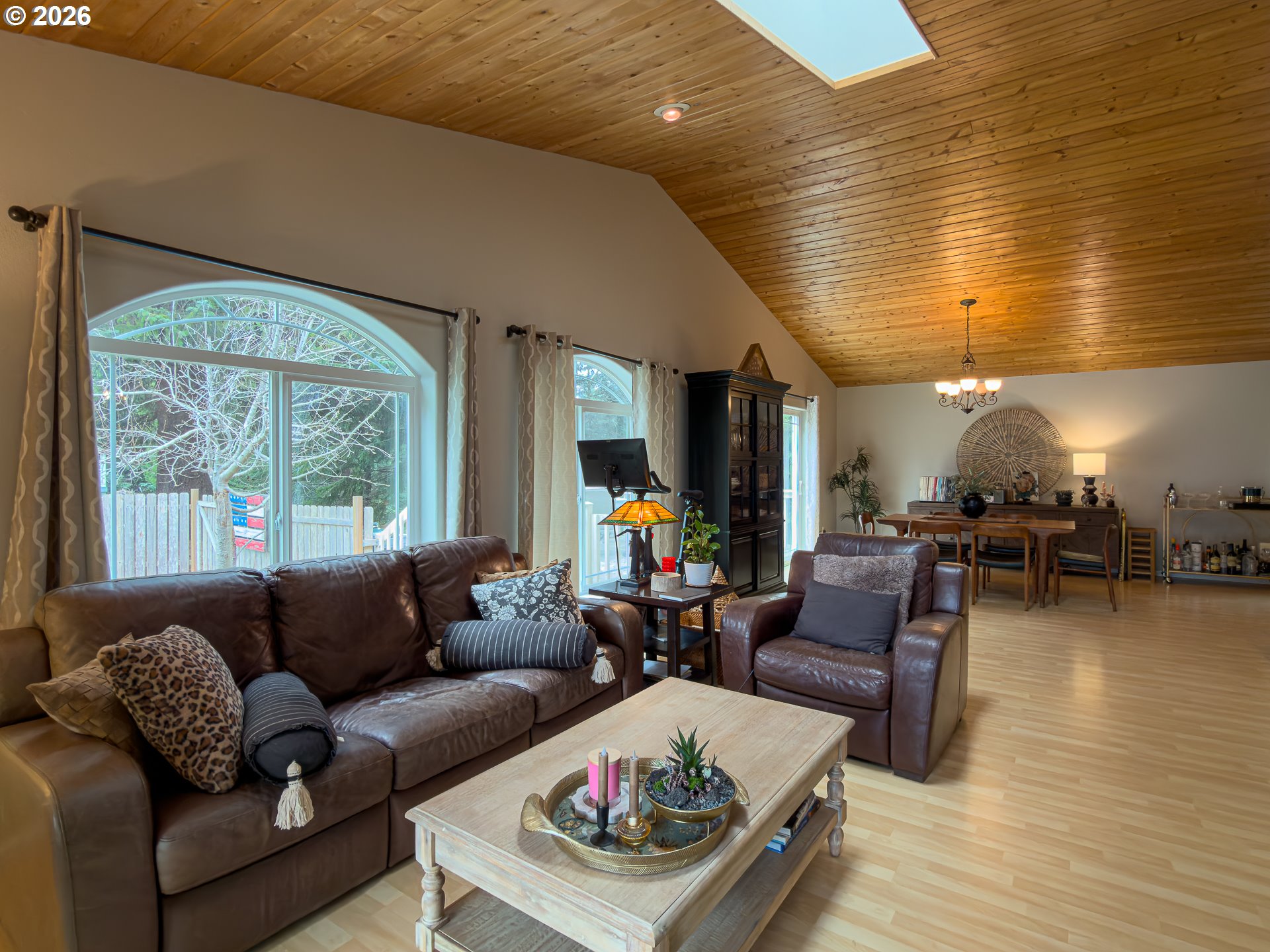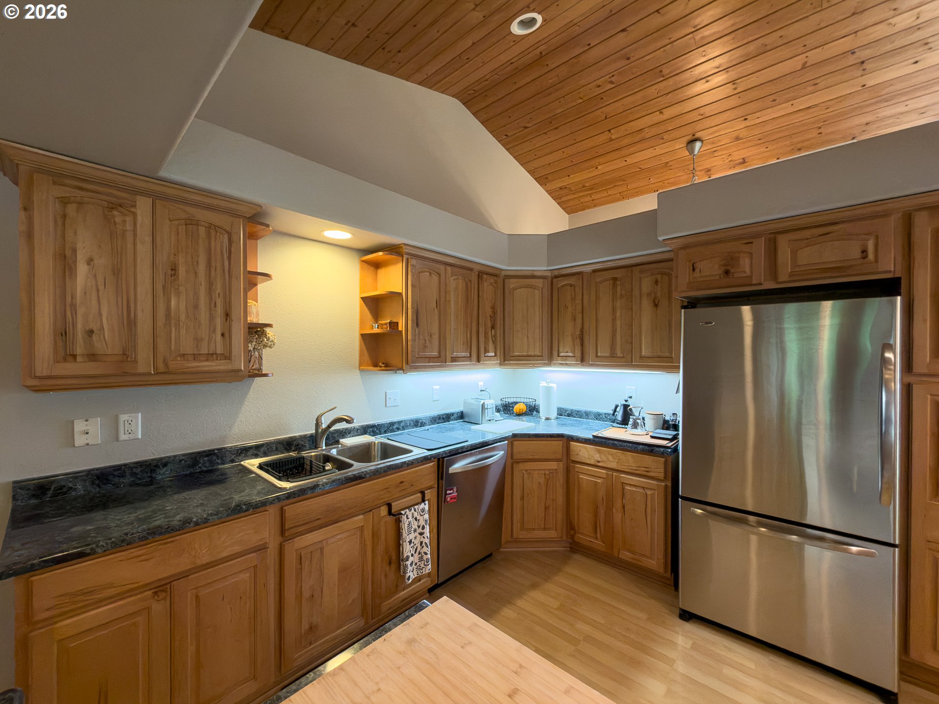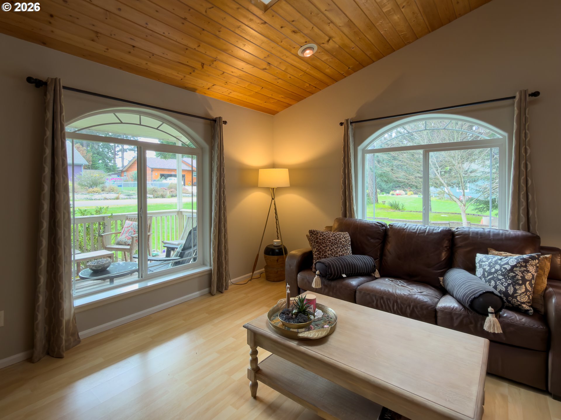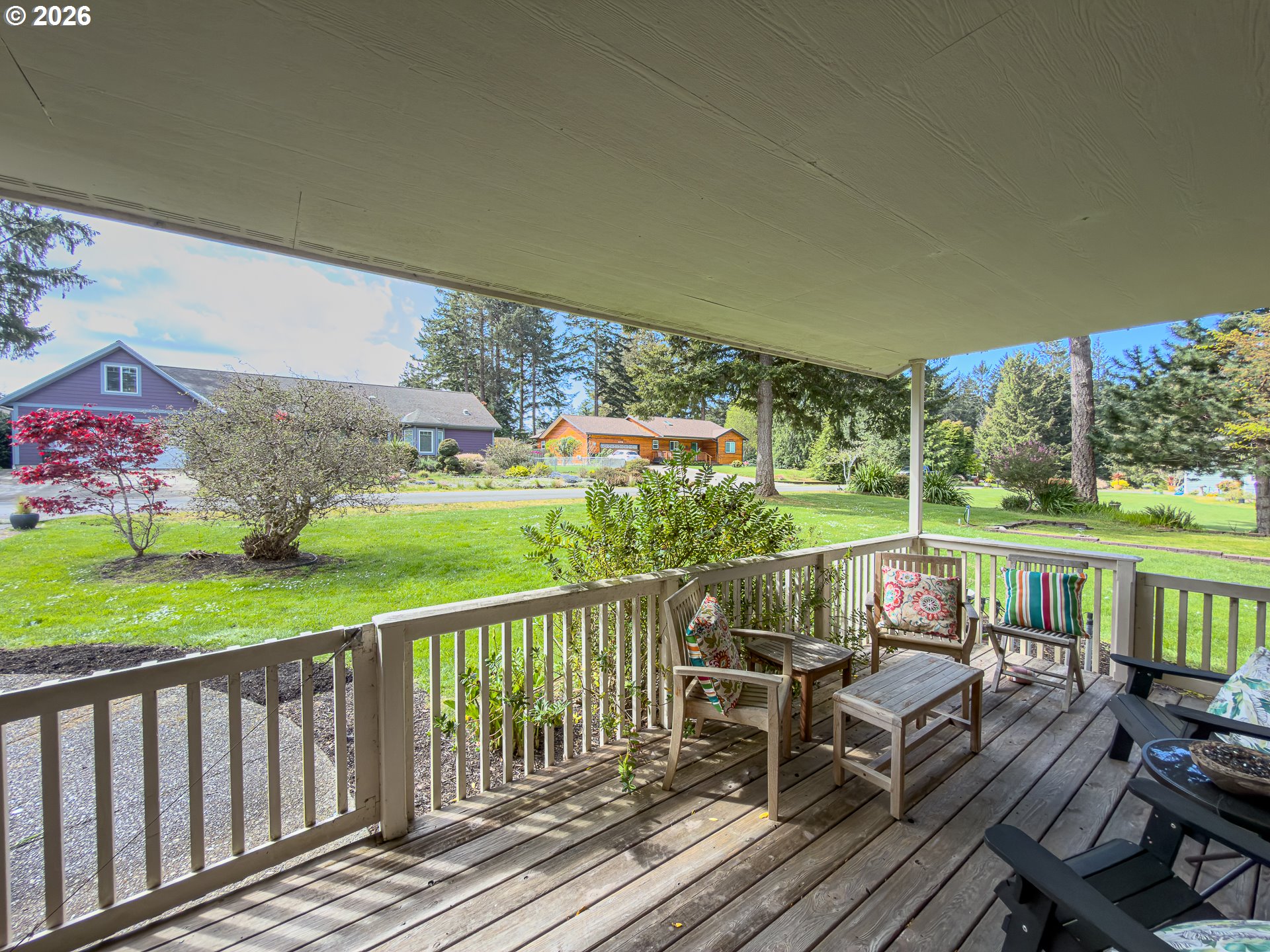(503) 893-8874Located at 1185 11th St SE in Bandon, Oregon, this custom single-level home offers comfortable living in a desirable East Bandon neighborhood known for newer custom homes and its sheltered setting out of the coastal wind. Situated on a generous 0.27-acre lot, the property features a sprawling yard with mature landscaping ideal for outdoor enjoyment and gardening. A welcoming covered front porch invites you into this home comprised of three bedrooms and two bathrooms, with an open-concept living and dining area enhanced by abundant natural light exuding from skylights and large picture windows. Warm interior finishes, including knotty pine tongue-and-groove vaulted ceilings and laminate wood flooring, create an inviting atmosphere throughout. The kitchen is thoughtfully designed for both everyday use and entertaining, featuring under-lit oak cabinetry, a central island with cooktop and downdraft. The primary suite offers a walk-in closet and a private ensuite bath. A sliding glass door off the dining area leads to a deck with warm southern exposure and a peaceful, treed backdrop. The backyard blends with nature and includes a practical tool shed for storage and other uses. This well-located property combines functionality, comfort, and a setting that makes the most of Bandon’s coastal lifestyle. Be sure to watch the video tour!