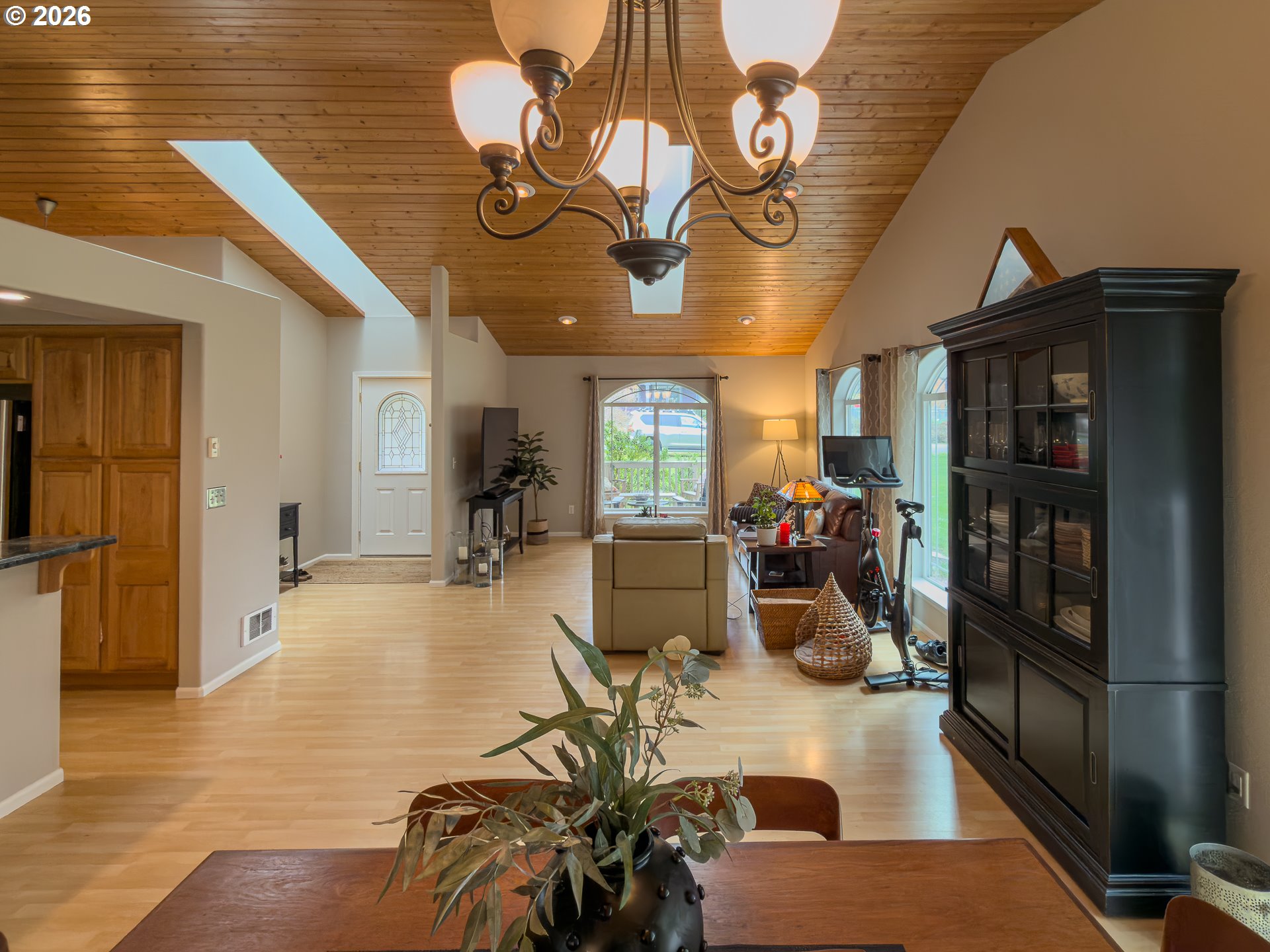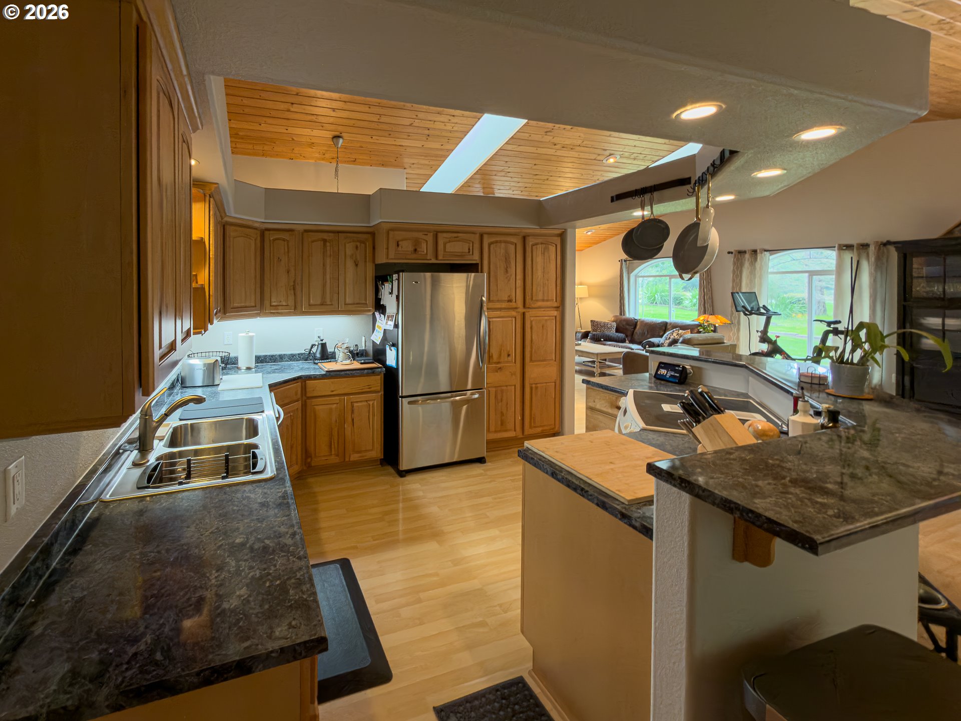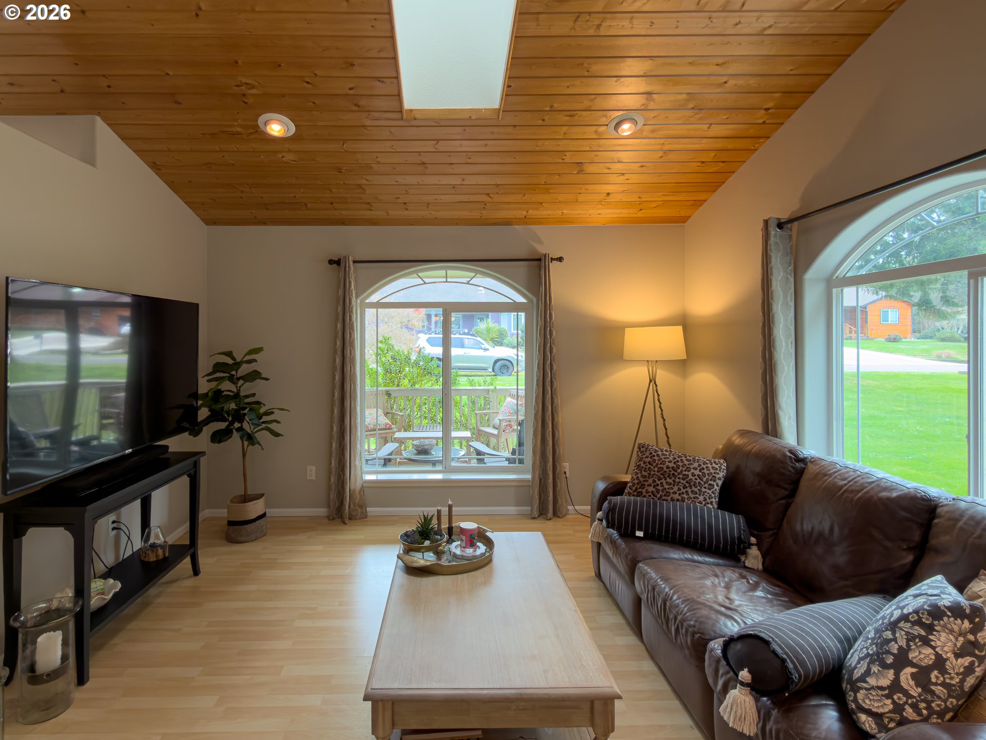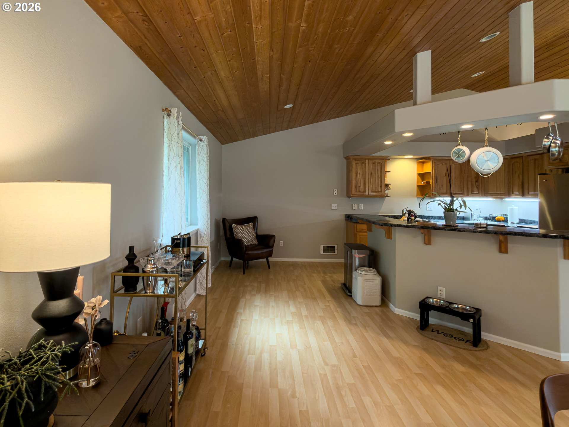 (503) 893-8874Located at 1185 11th St SE in Bandon, Oregon, this custom single-level home offers comfortable living in a desirable East Bandon neighborhood known for newer custom homes and its sheltered setting out of the coastal wind. Situated on a generous 0.27-acre lot, the property features a sprawling yard with mature landscaping ideal for outdoor enjoyment and gardening. A welcoming covered front porch invites you into this home comprised of three bedrooms and two bathrooms, with an open-concept living and dining area enhanced by abundant natural light exuding from skylights and large picture windows. Warm interior finishes, including knotty pine tongue-and-groove vaulted ceilings and laminate wood flooring, create an inviting atmosphere throughout. The kitchen is thoughtfully designed for both everyday use and entertaining, featuring under-lit oak cabinetry, a central island with cooktop and downdraft. The primary suite offers a walk-in closet and a private ensuite bath. A sliding glass door off the dining area leads to a deck with warm southern exposure and a peaceful, treed backdrop. The backyard blends with nature and includes a practical tool shed for storage and other uses. This well-located property combines functionality, comfort, and a setting that makes the most of Bandon’s coastal lifestyle. Be sure to watch the video tour!