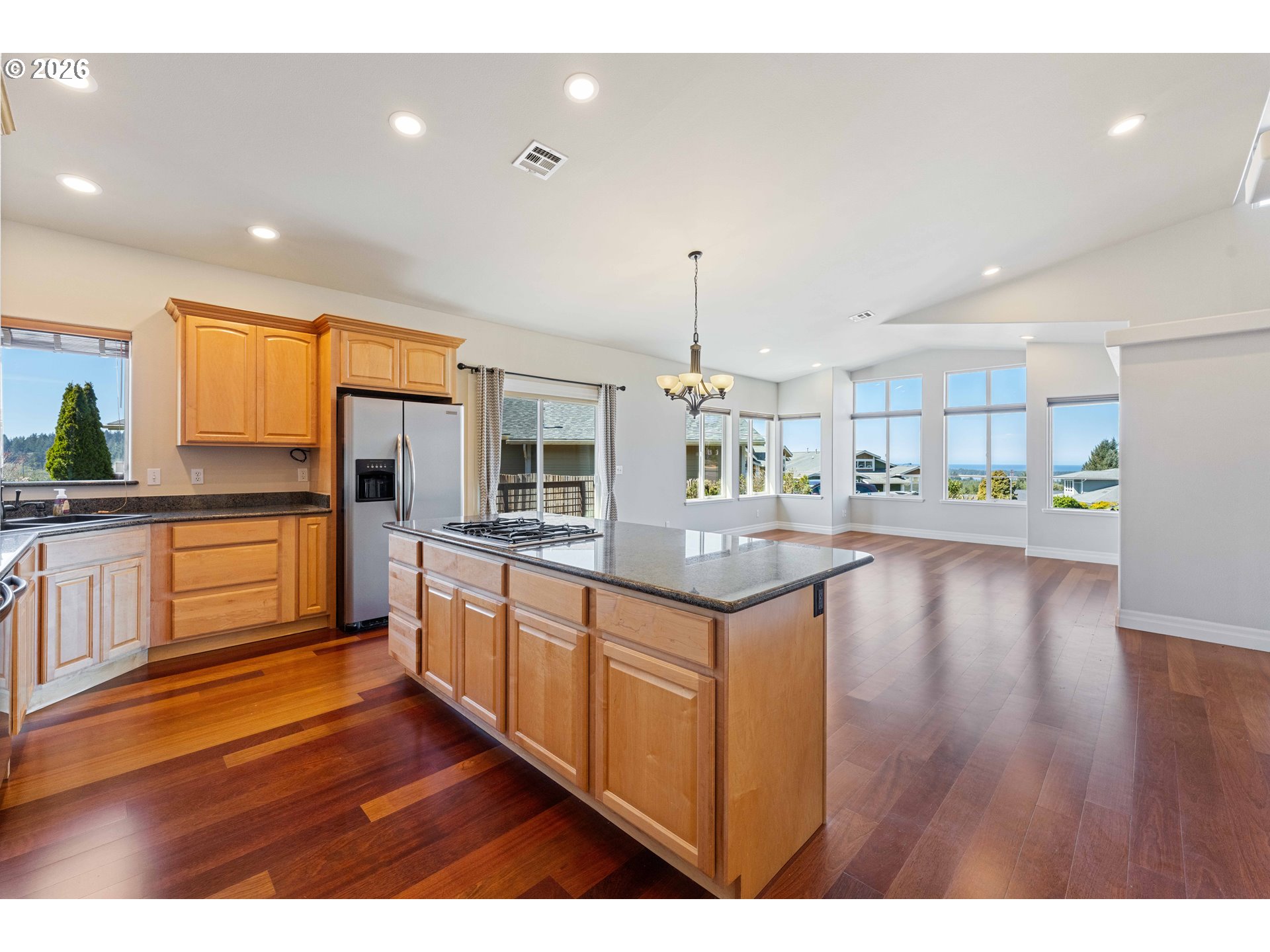 (503) 893-8874Pristine home in Pacific Crest neighborhood, of Coos Bay. Just moments to Ocean beaches, with Ocean Views from the living area and front. 3 Bedrooms/3 Baths (2 Full Suites). Huge Primary suite with walk-in closet, soak-tub and granite slab shower. Vaulted ceilings in the great room, living/dining/kitchen area. Slider off dining area leads out to deck, overlooking the peaceful landscape in back. Extremely clean and well cared for home. Brand new roof in 2025, new exterior & interior paint and new carpet in 2026. WATCH VIDEO/VIRTUAL TOUR!!