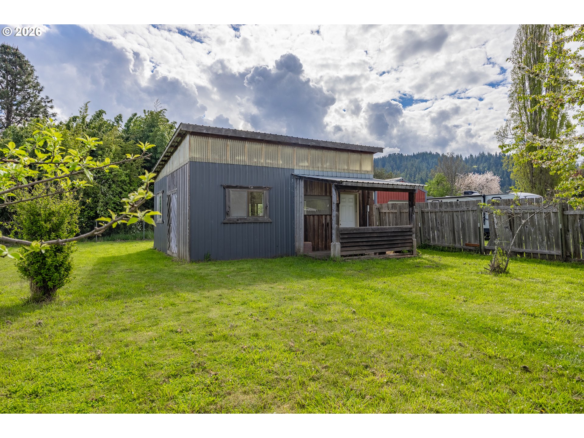 (503) 893-8874LOG CABIN in Powers Oregon! Move in ready, 1 bedroom, 1 bath, 800 sf cabin. Great views from the loft bedroom and deck. Nicely updated, laminate flooring, vinyl windows, walk in shower,updated functional kitchen, carport with circular drive. Large shop plus a seperate utility building which includes washer & dryer +storage. RV "farm gate" & parking. Fenced in great neighborhood.