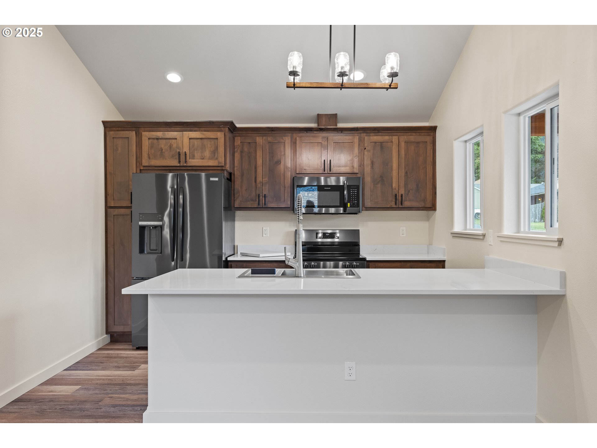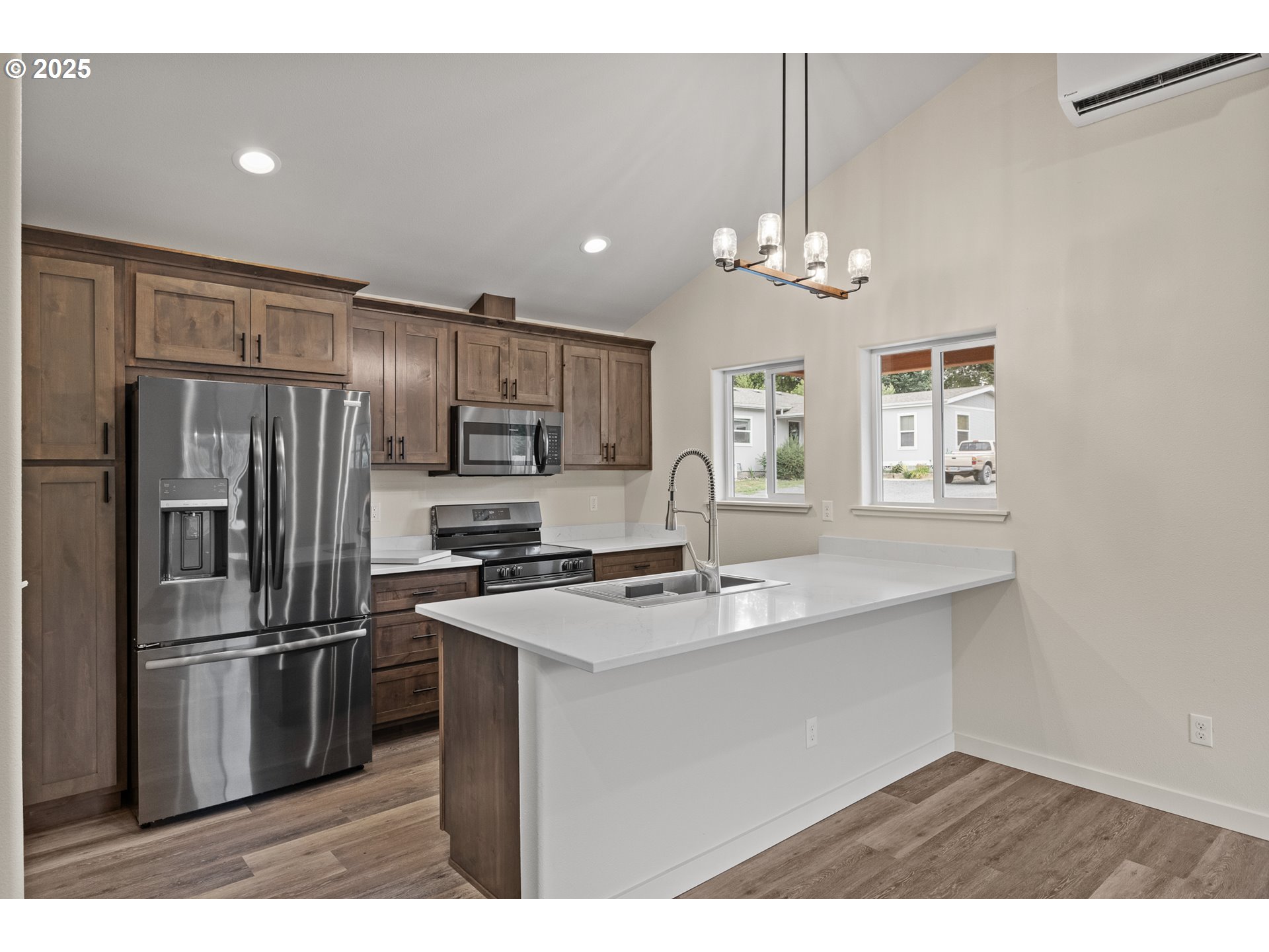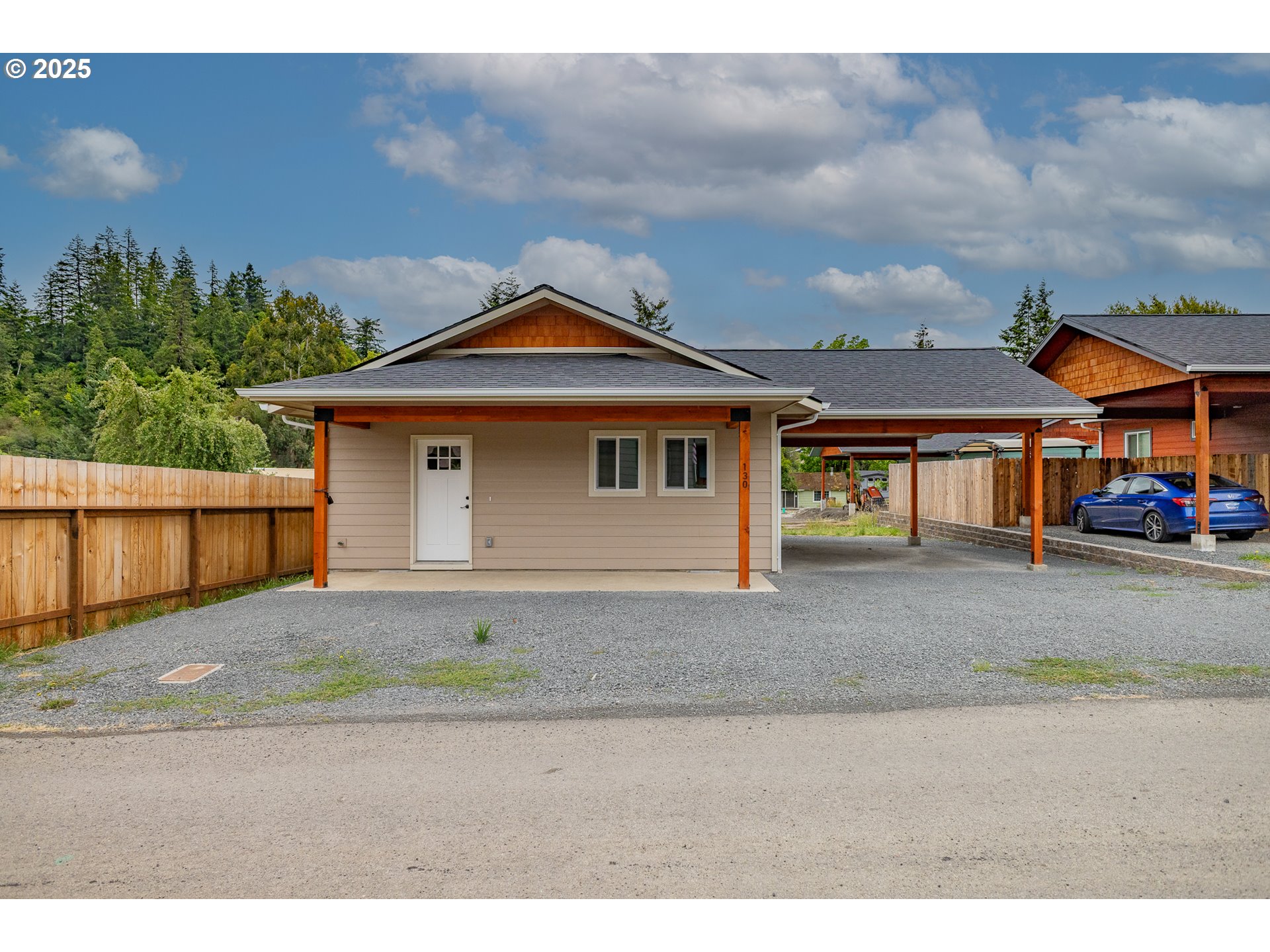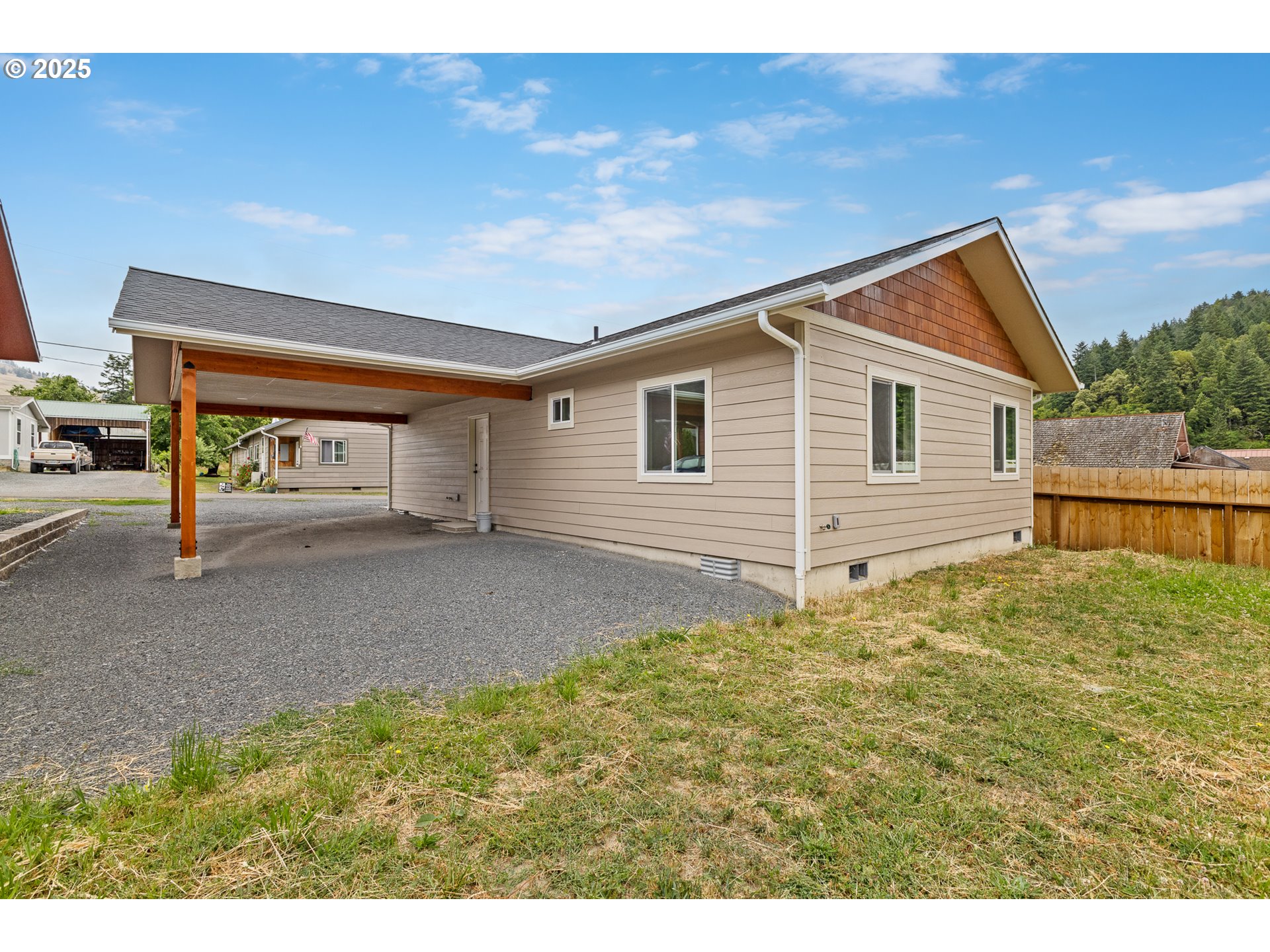 This beautifully crafted new construction in Powers, Oregon offers comfort, style, and modern convenience at an affordable price. Completed in 2024/2025, this custom-built one-level ranch-style home features approximately 1,056 square feet of thoughtfully designed living space. It includes three spacious bedrooms and two full bathrooms, along with a custom kitchen featuring quartz countertops and quality appliances. The open-concept living and kitchen area is enhanced by vaulted ceilings, creating a bright and welcoming atmosphere. For year-round comfort, the home is equipped with a ductless heat pump and additional electric heaters. A generous laundry room offers its own private access through the attached carport. This home is now fully finished and move-in ready—offering the perfect blend of quality craftsmanship and small-town charm.