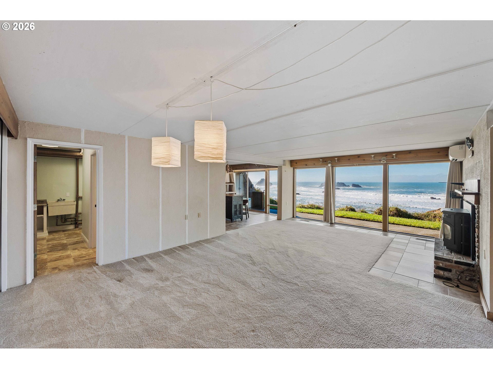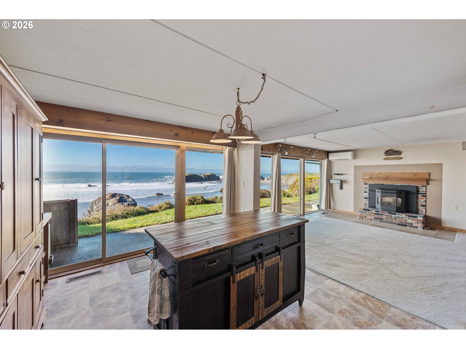 (503) 893-8874Oceanfront on Beach Loop in Bandon with commanding views of Coquille Point, Elephant Rock, and Face Rock—a front-row seat for sunsets and storm watching. Built in 1974, this coastal contemporary offers a daylight-basement / reverse-plan layout with a street-level garage and a separate laundry room (both with ocean-facing windows) and the main living spaces and bedrooms on the ocean-facing lower level. The living room features a fireplace with a pellet stove insert, and ocean-side windows and sliders keep the shoreline center stage year-round. Brand new roof (2024). Concrete lower-level construction provides a solid footprint. Convenient to Old Town Bandon shops and restaurants, the city park, library, and Bandon schools, plus an easy drive to Bandon Dunes Golf Resort and world-class golf. For buyers planning ahead, the street level offers potential to reimagine or expand—including the concept of building new above while retaining the existing concrete lower level, subject to buyer due diligence, engineering, and all required approvals/permits. A rare opportunity to own true oceanfront with iconic Bandon views.