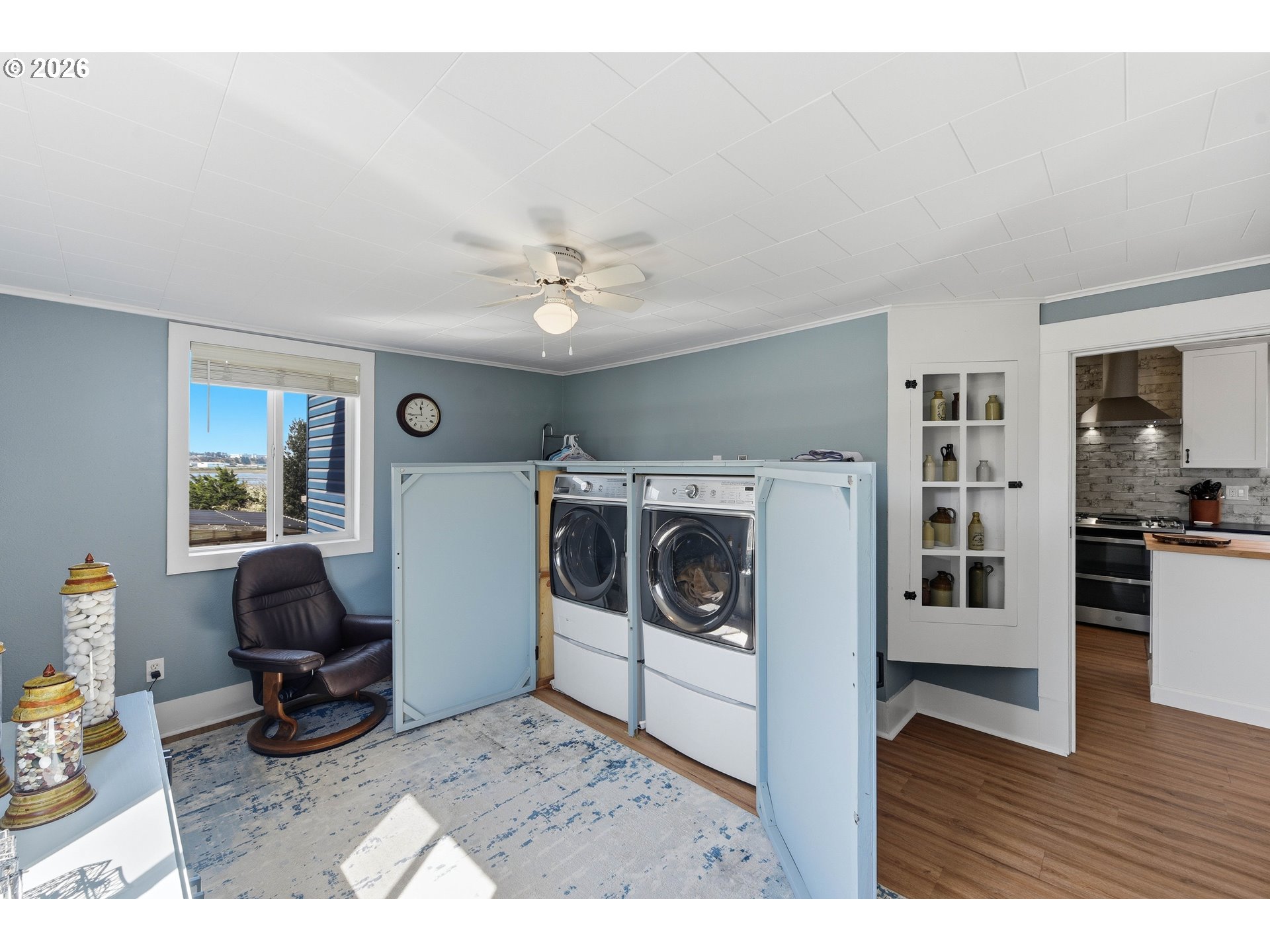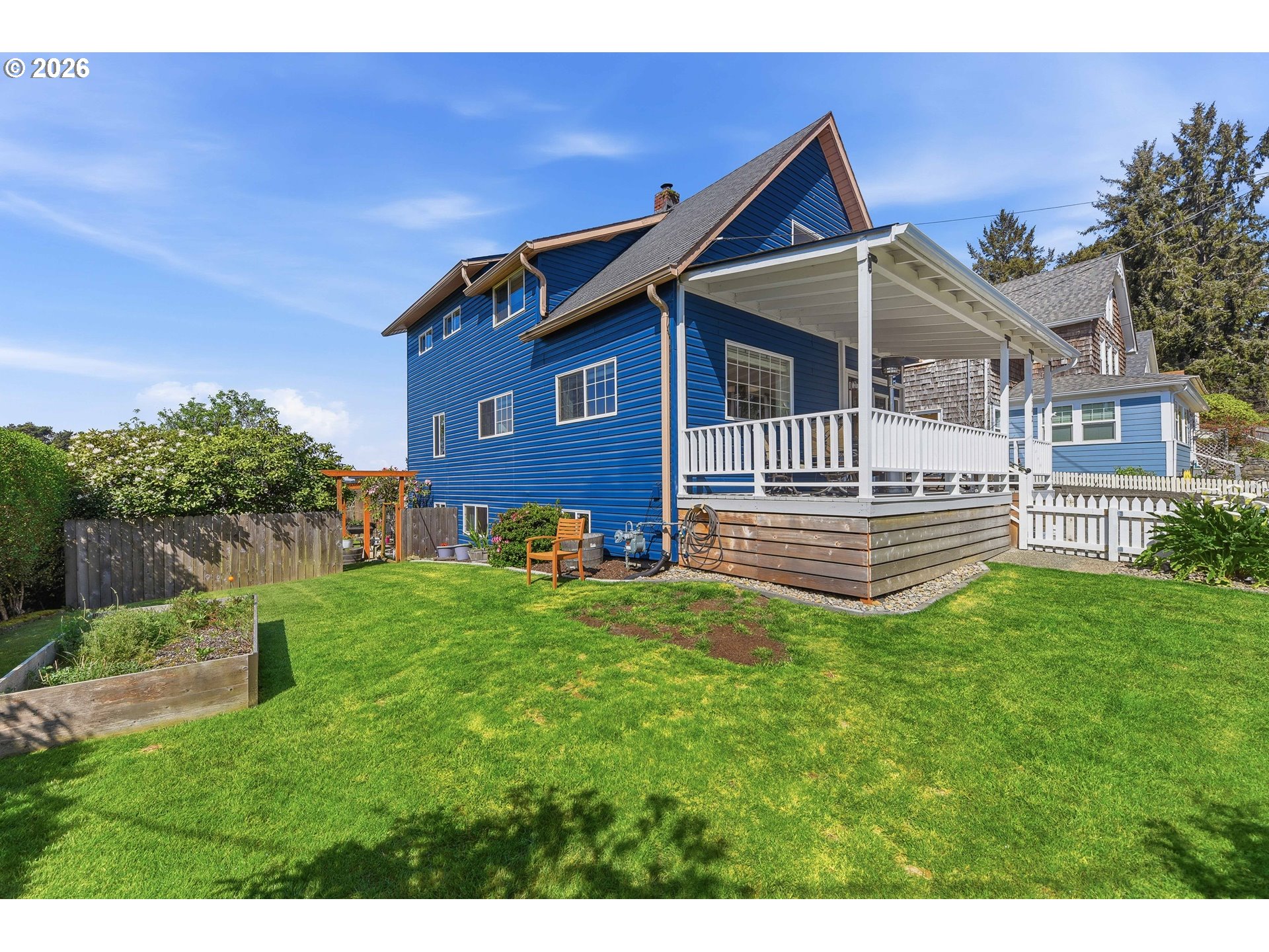 Stunning Bay View Craftsman in one of North Bend’s desirable neighborhoods. This beautifully updated 3,312 square foot home blends timeless character with modern comfort, offering 4 bedrooms, 2 fully remodeled bathrooms, plus an additional office space or potential 5th bedroom. Inside, this spacious home is filled with natural light and showcases grand living spaces, high ceilings and a layout designed for both everyday living and entertaining. The main level features updated LVP flooring, while upstairs is primarily carpeted. Underneath, the original hardwood floors have been fully refinished, preserving the home’s historic charm. The remodeled kitchen is a true showpiece with quartz countertops, stainless steel appliances, gas range, a large butcher block island and a dream walk-in pantry complete with appliance storage, coffee bar and an abundance of space for organization. Both bathrooms have been beautifully renovated, and the laundry room has been thoughtfully moved to the main living area for added ease and convenience. The primary suite is massive and offers the kind of space that is hard to come by, with tons of closet space and gorgeous views from a large picture window that frames the bay beautifully. Forced air heating, gas fireplace downstairs and extensive storage throughout complete the interior. Step outside and enjoy the new covered front porch, new fencing, a new gazebo patio area in the backyard, raised garden beds and a newly built greenhouse, a gardeners dream. With a detached garage, RV parking with electric hookup and a quiet location within half a block to Simpson Park, this home offers the perfect blend of character, charm, updates and lifestyle. A must see to appreciate! Call today to schedule a private tour!
