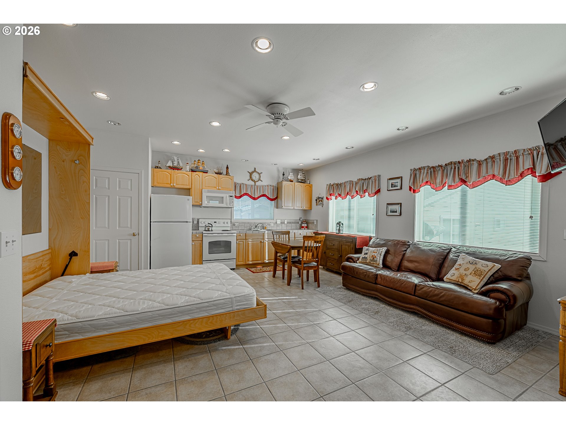 InteriorCeilingFan, Furnished, Laundry, MurphyBed, TileFloor, WasherDryer