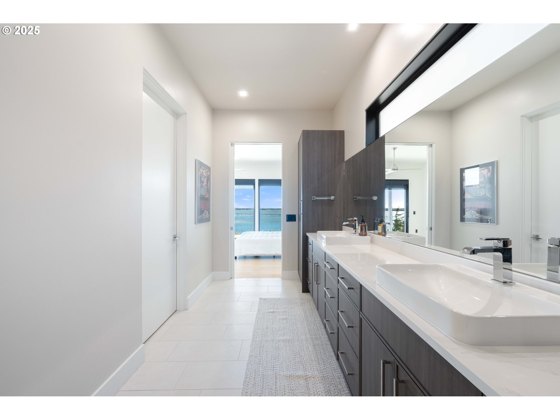 (503) 893-8874Waterfront Haven in Coos Bay | Unmatched Views, Dual Primary Suites & Effortless Coastal Living. This stunning 3-bedroom, 3-bathroom bayfront home offers timeless elegance, top-tier construction, and easy-care living in one of Coos Bay’s most desirable gated communities. Designed to maximize both comfort and style, the home offers panoramic water views, refined finishes, and a layout made for living well. Step into the light-filled great room where soaring ceilings, rich wood flooring, and a gas fireplace set the tone for both quiet evenings and lively gatherings. A wall of windows frames the glittering bay, blurring the line between indoors and out. The chef’s kitchen is equally impressive with custom cabinetry, Café Series appliances, elegant lighting, and an oversized walk-in pantry. Whether entertaining or preparing a quiet dinner, the space is as functional as it is gorgeous. Two luxurious primary suites — one on each level — offer spa-inspired ensuites with heated tile floors, custom tile showers, walk-in closets, and direct access to outdoor living spaces. Wake to water views, step out onto your private deck, and unwind in comfort. Enjoy seamless indoor-outdoor living with an upper viewing deck featuring a sleek railing system for unobstructed views, and a lower covered patio perfect for relaxing or entertaining. A spacious two-car garage with a 220 EV outlet and off-street parking provide everyday ease. And with ocean beaches, lakes, rivers, hiking, biking, and more just 15–20 minutes away, adventure is always within reach. Tucked in a quiet, gated community that offers peace, privacy, and security—this is luxury coastal living at its finest. Schedule your private tour today!