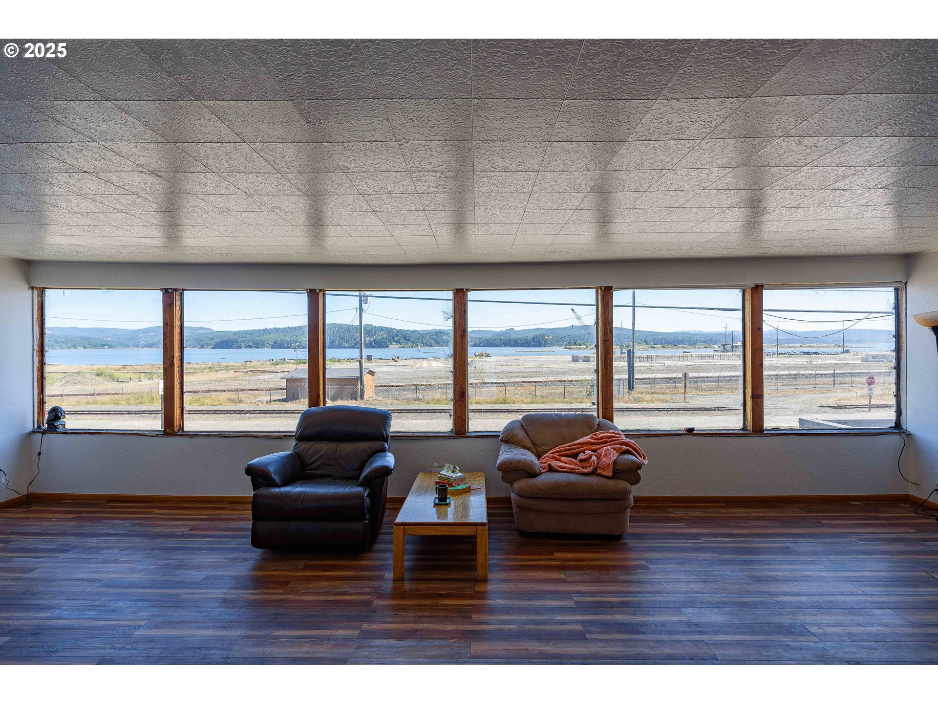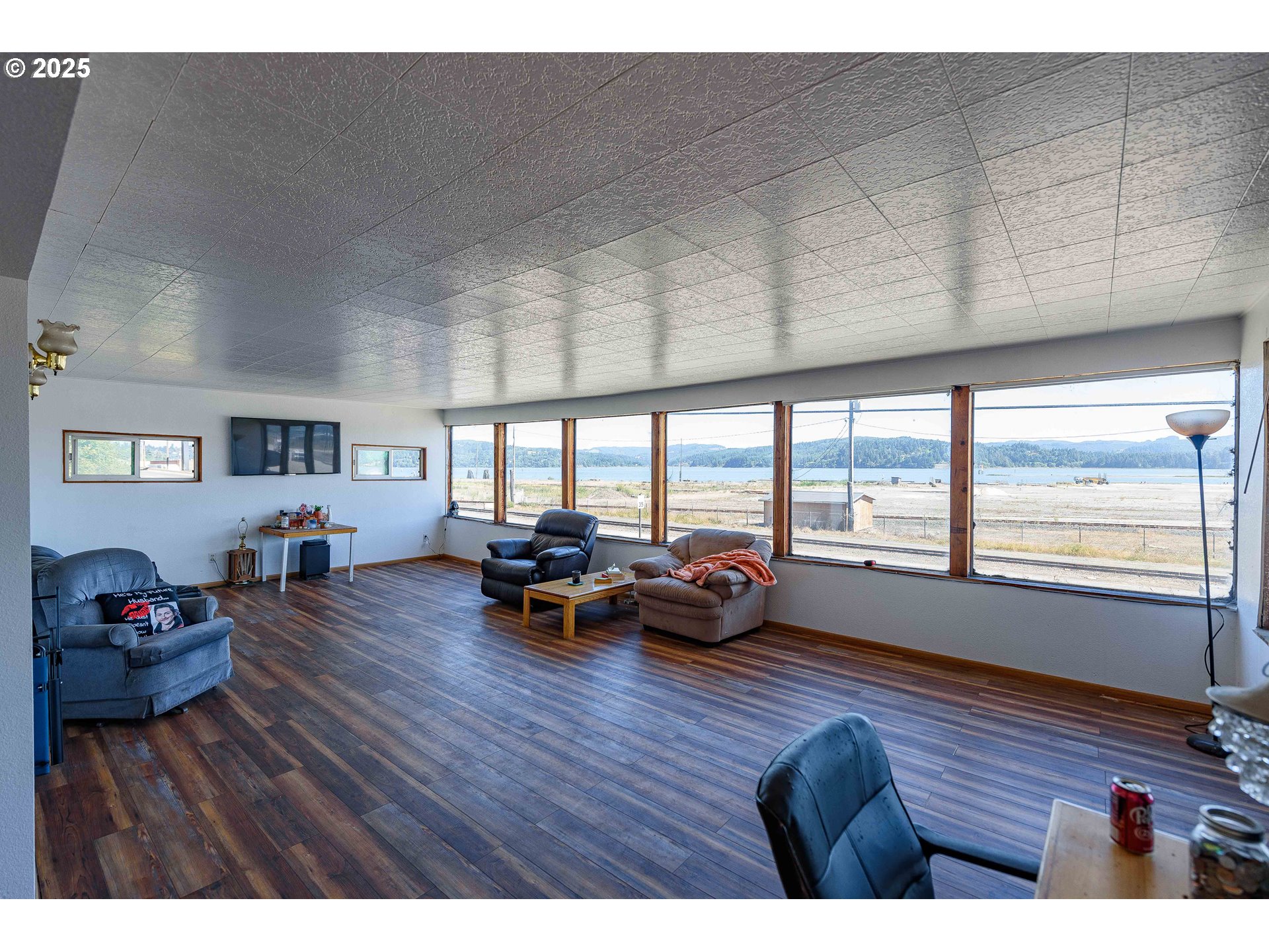 Don't miss this amazing opportunity to locate your business to this excellent property along Hwy 101 in North Bend. Building features main showroomarea with large display windows, service area, machine shop and large car port. Concrete floors and heavy power make it suitable for many uses.Upstairs is a large apartment with breathtaking views of the bay. The space is light and bright with huge windows and open floor plan. Recently updatedwith new drywall, fresh paint and flooring this large living area is perfect for the live/work situation or additional income. Fantastic location with goodingress and egress and unmatched Hwy 101 exposure. Motivated seller and great new price! Call today for your private showing.