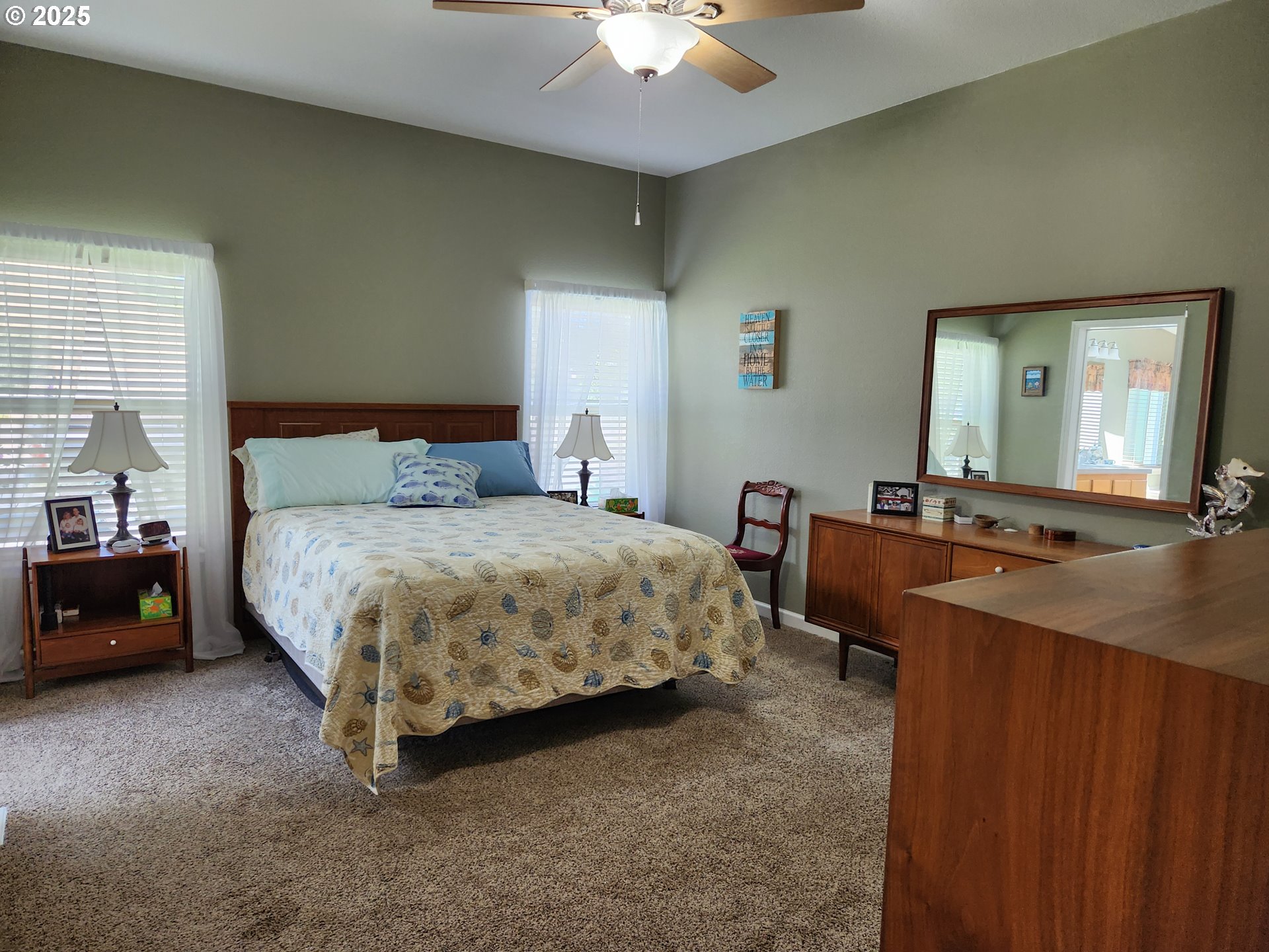 Rare opportunity to live on the Oregon coast, in a peaceful and secure 55+ community of beautiful properties and friendly neighbors. This meticulously maintained open concept single level home on a corner lot boasts 3 bedrooms all with walk in closets and 2 1/2 baths, large bright kitchen w/island, dining room, living & family rooms and more. New Interior paint in 2021 and New Exterior paint in 2024, Ample room to park boat, ATV's or small RV. Oversized/extra long 2 car garage with built in counters, cabinets and workshop. Attached bonus storage room, lovely landscaping with in ground programmable sprinkler system. Minutes to Tenmile Lake, Eel Lake, the Oregon Dunes National Recreation area and ATV trails, Winchester Bay fishing, golfing and medical facilities. Your dream lifestyle awaits you in this remarkable community. Must see this beautiful home to truly appreciate all the extras.