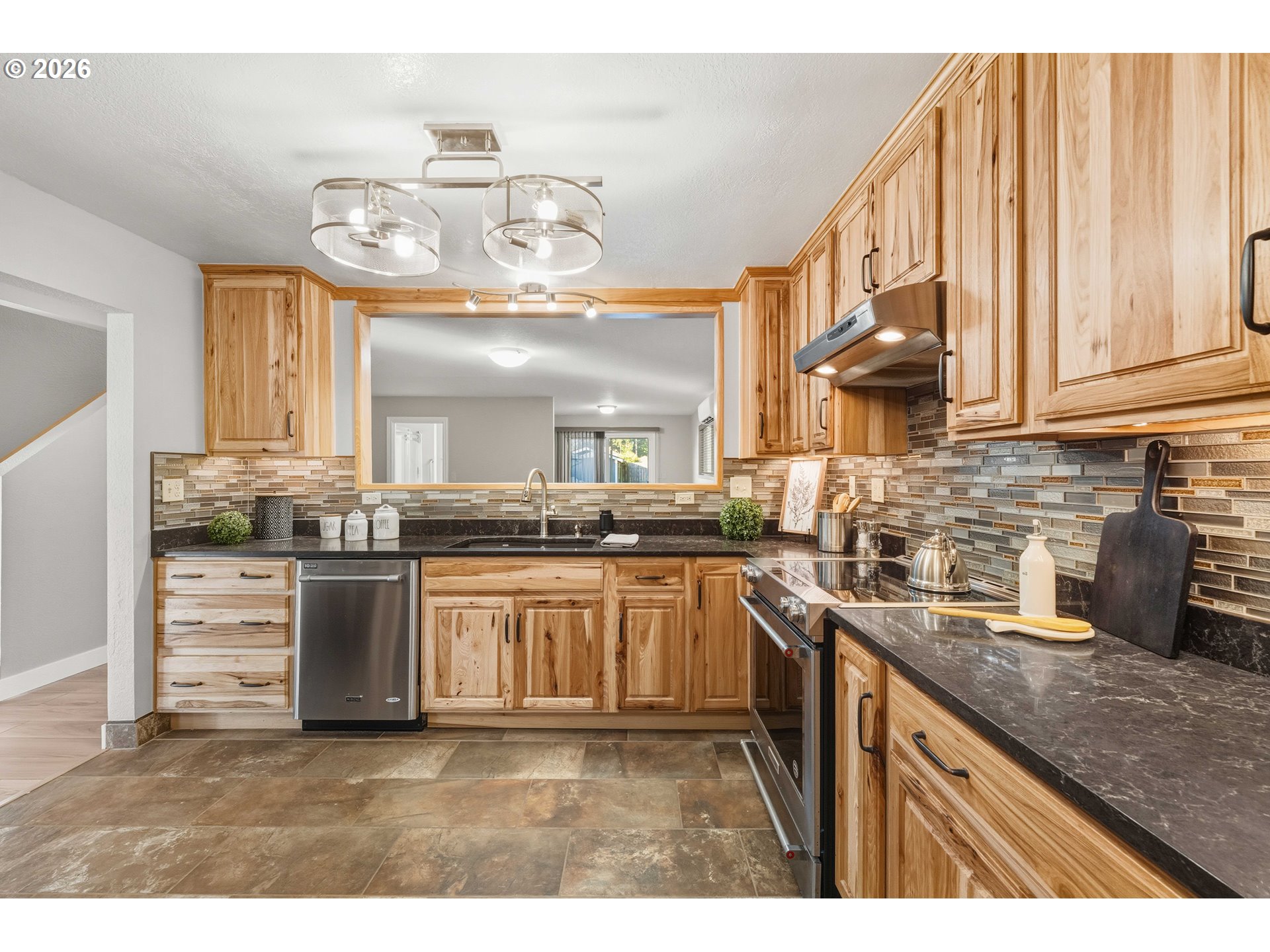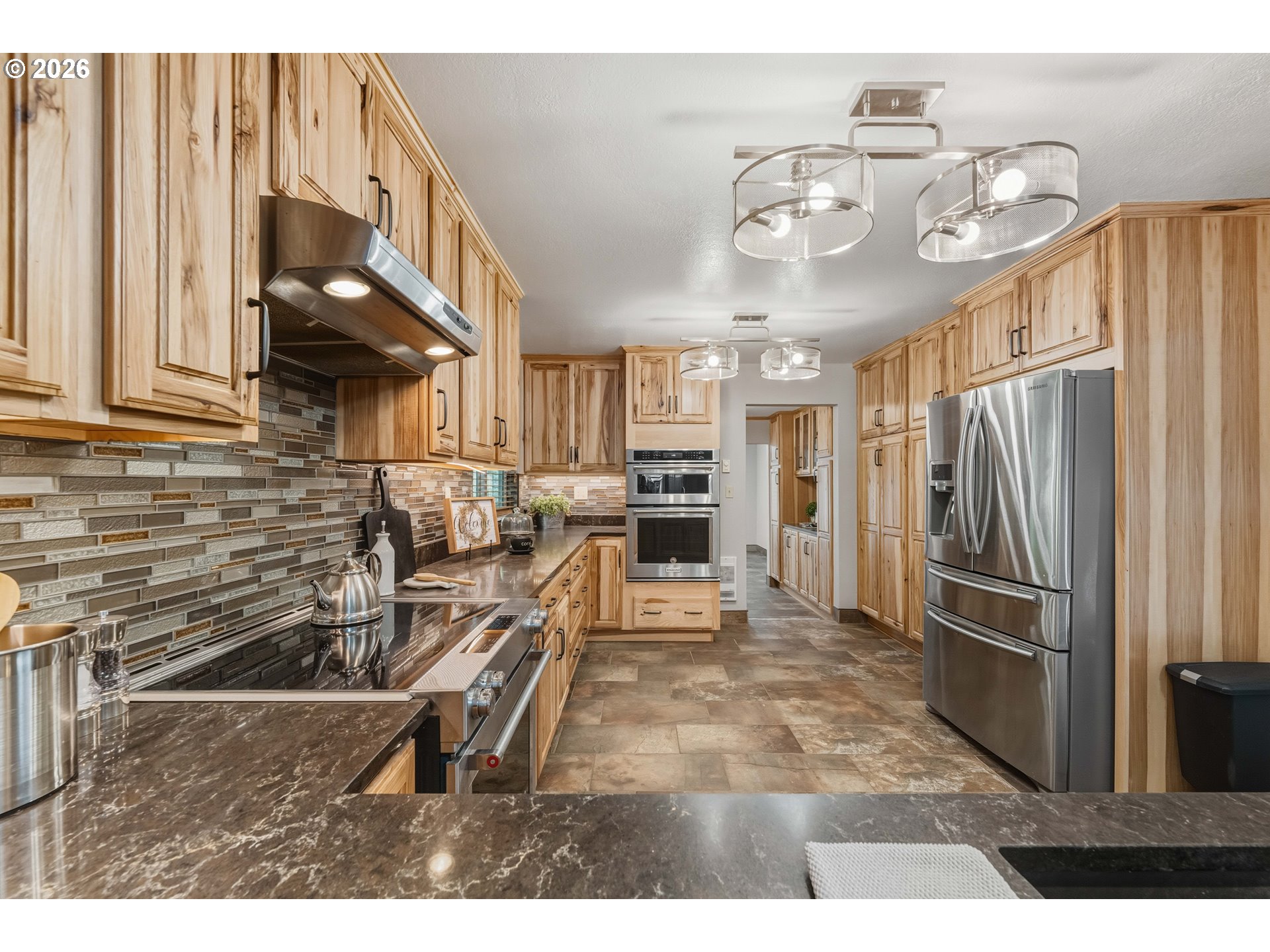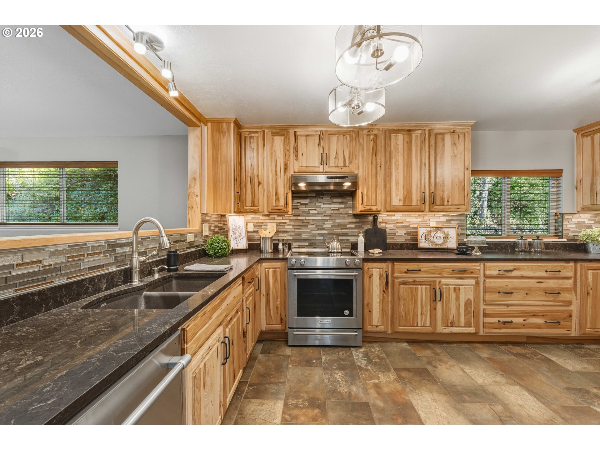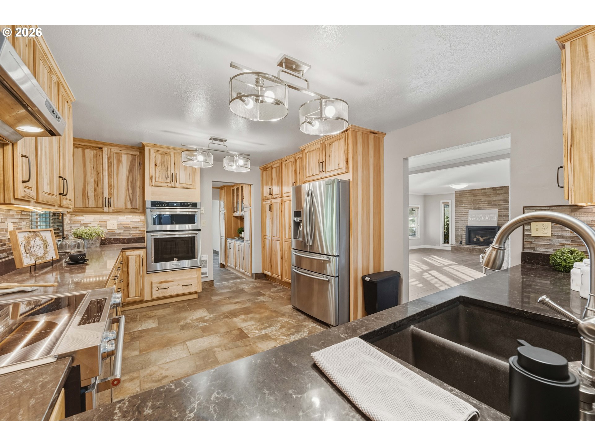 Beautifully updated home offering space, comfort, and privacy—all within the city limits. This charming property features a gorgeous, updated kitchen with hickory cabinets, stainless steel appliances, and a convenient step-down butler’s pantry leading to the dining room. Remodeled bathrooms, new flooring, fresh paint, and an approximately two-year-old roof make this home truly move-in ready. Situated on a generous .55-acre lot with an additional adjoining .13-acre lot (approximately 50’ x 117’), the setting provides plenty of room to enjoy outdoor living. The home boasts a covered front deck, fenced yard, circular driveway, RV parking, an oversized detached double garage, and a tool shed. Relax and entertain with an above-ground lap pool and hot tub. Inside, the spacious living room features a cozy propane fireplace, while the family room offers direct access to the backyard through a sliding door. The main level includes two bedrooms, a full bathroom, and a laundry room with washer and dryer. Upstairs, you’ll find two additional bedrooms and another full bath—ideal for family or guests. Tucked away at the end of the street, this home offers a peaceful, private setting while remaining close to city amenities. A rare opportunity to enjoy space, updates, and convenience all in one exceptional property.