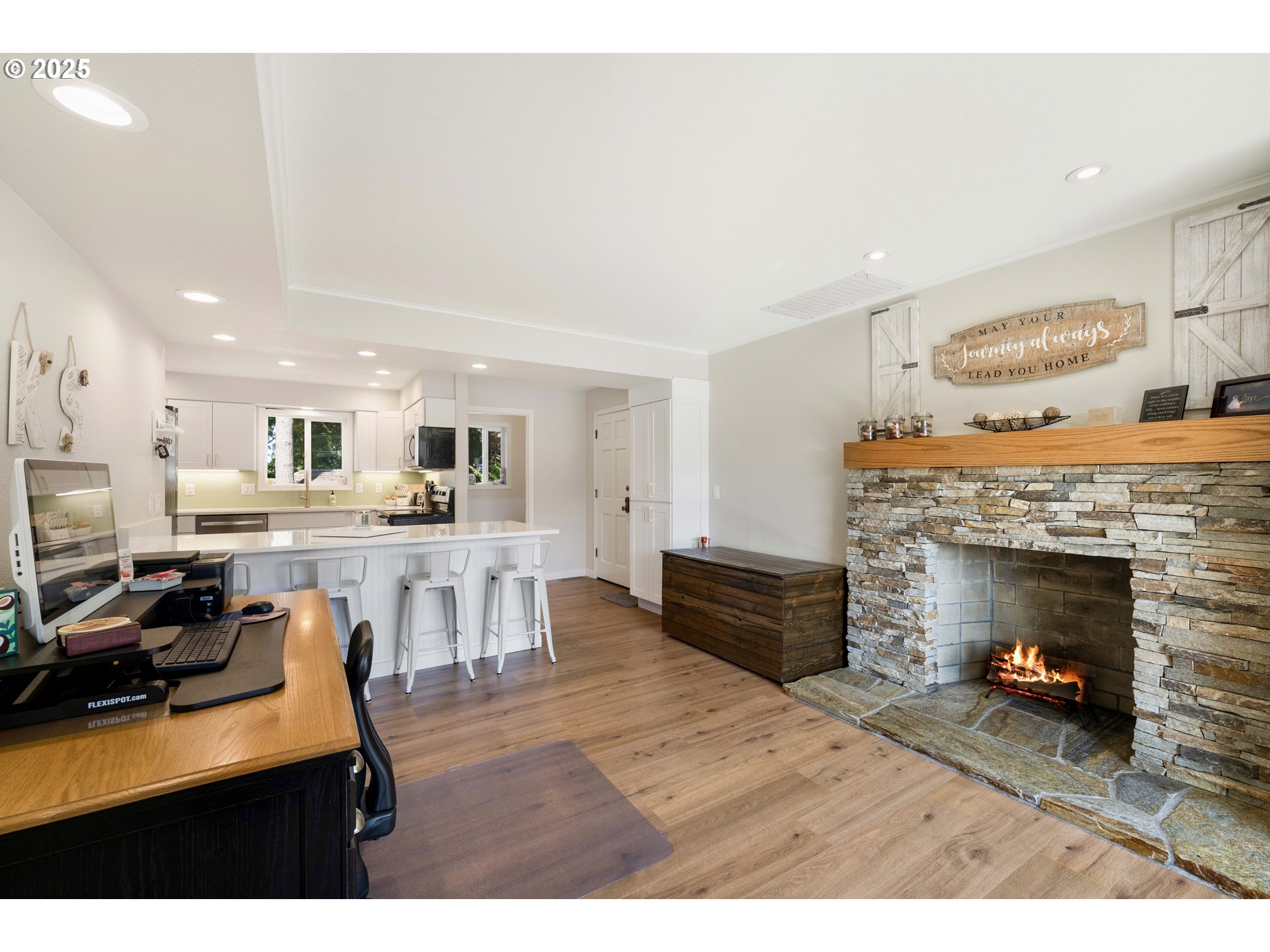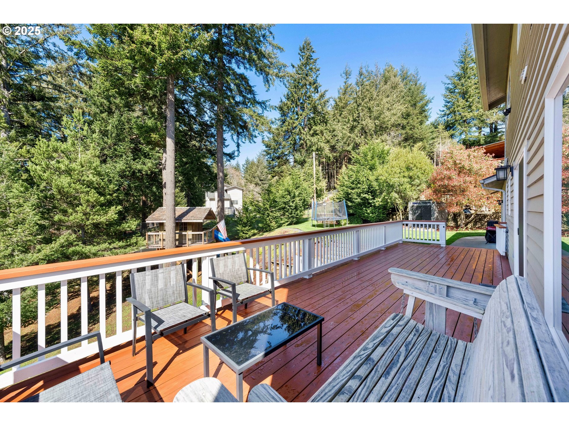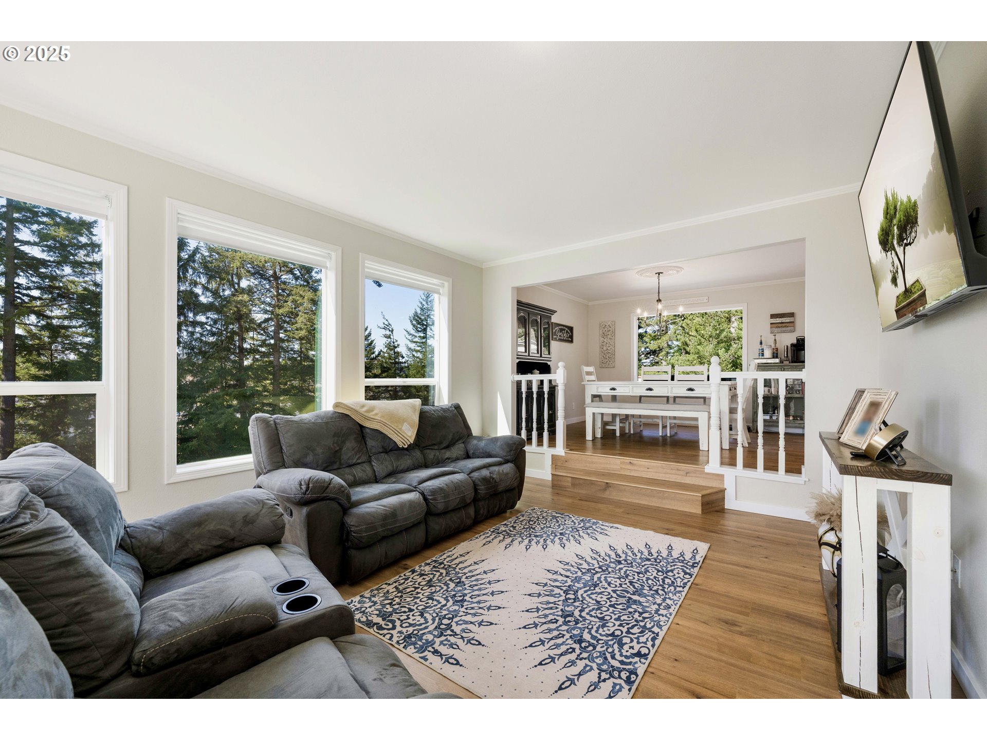Welcome to this beautifully updated North Bend home on a .27-acre cul-de-sac. The main level features a semi open-concept kitchen with new cabinets, flooring, and appliances that flow into a bright dining room, a cozy family room with a stone fireplace, and a spacious living room filled with natural light from large windows. An attached garage and an expansive deck off the dining room complete the level.Upstairs, discover three generous bedrooms, including a luxurious primary suite with dual closets, double sinks, and a tile shower with a built-in seat and pebble stone floor.The finished basement offers two additional bedrooms, a full bathroom, and a well-appointed kitchen with its own locking entrance and patio—ideal for in-law or rental use—and an independent mini-split system for added comfort.Outside, enjoy a spacious front yard with ample off-street parking, new retaining walls outlining the terraces, and a backyard oasis featuring lush grass, an expansive deck with views, and a clubhouse for extra fun. All this, conveniently located near North Bend High School, shopping, dining, and entertainment.